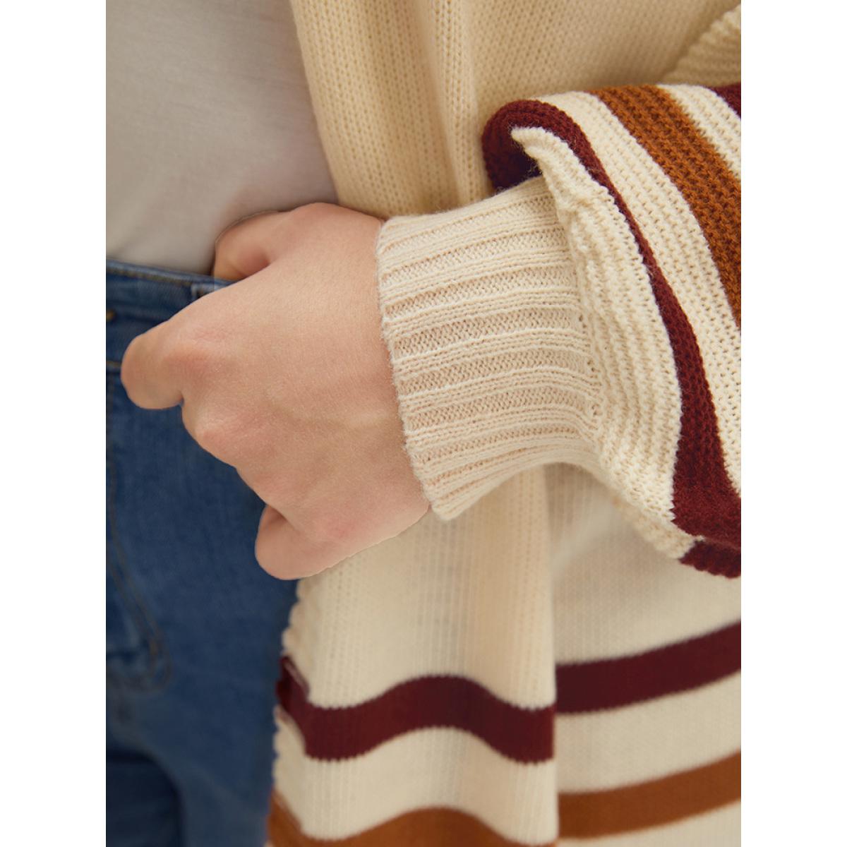 Plus Size Striped Contrast Open Front Cardigan Apricot Women Casual Loose Long Sleeve Dailywear Cardigans BloomChic 18-20/2X Product Image