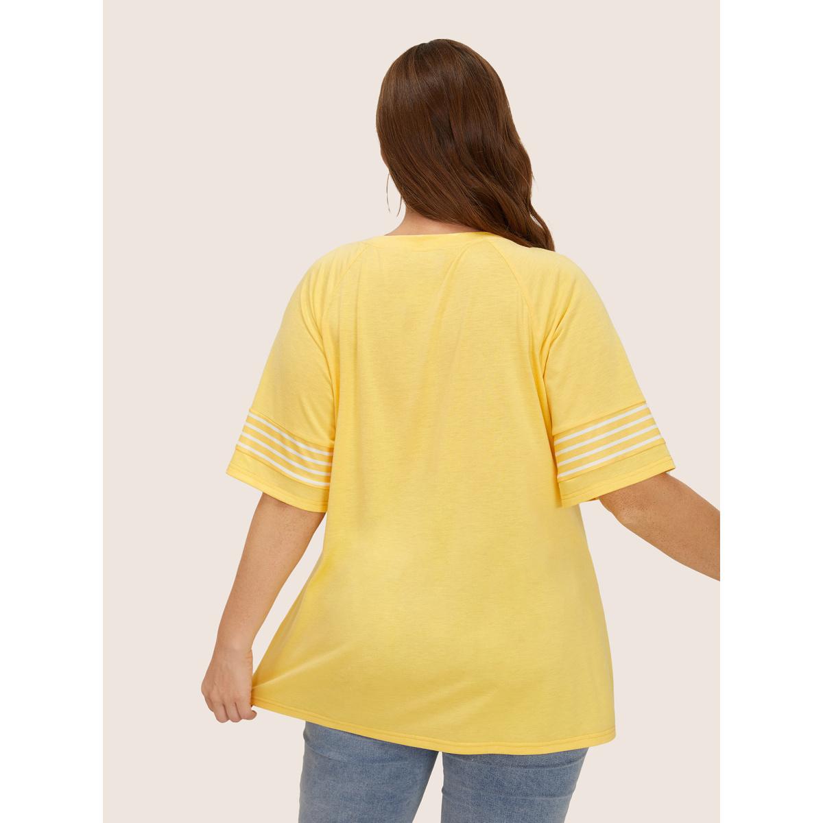 Plus Size Striped Contrast Raglan Sleeve Crew Neck T-shirt Yellow Women Casual Plain Everyday T-shirts BloomChic 18-20/2X Product Image