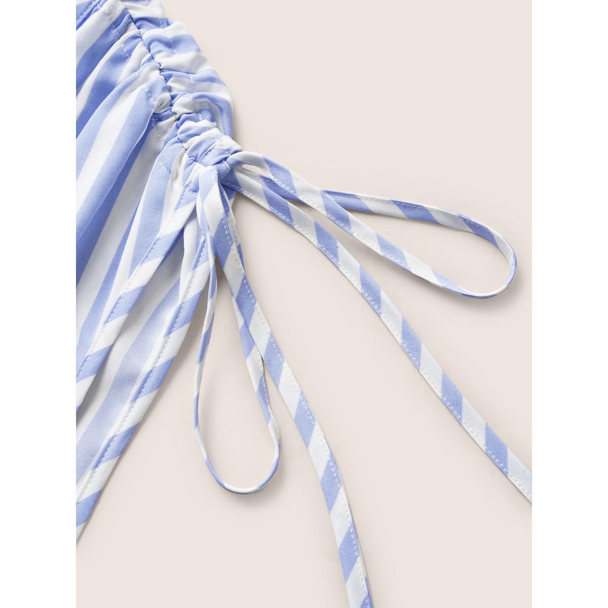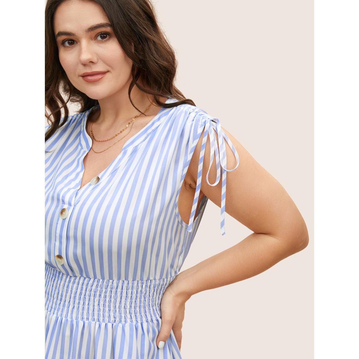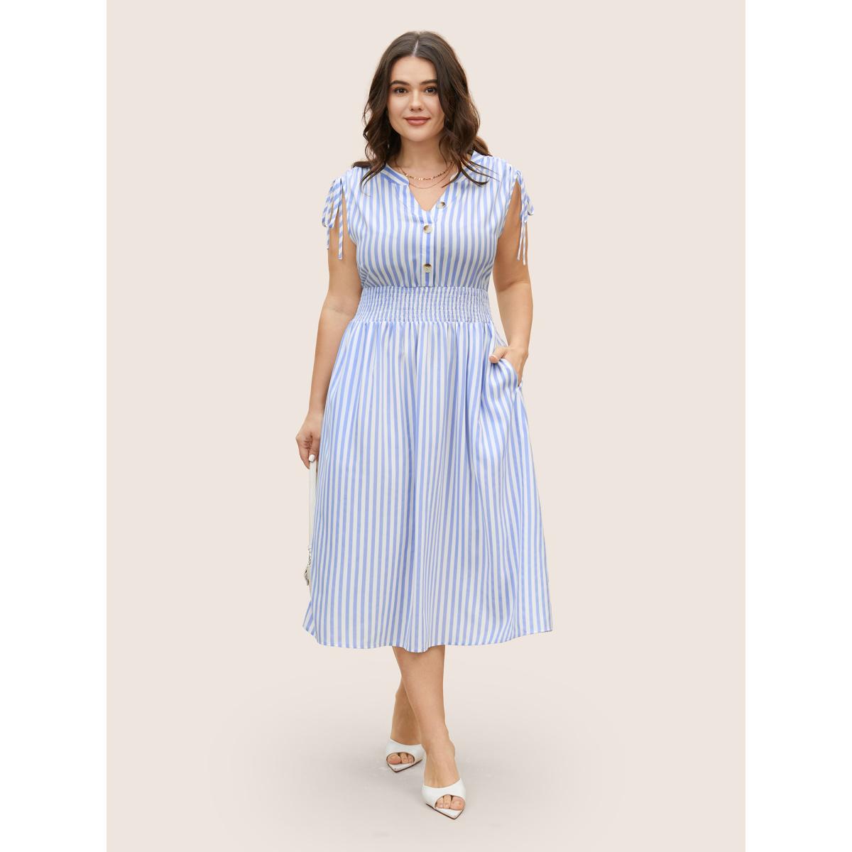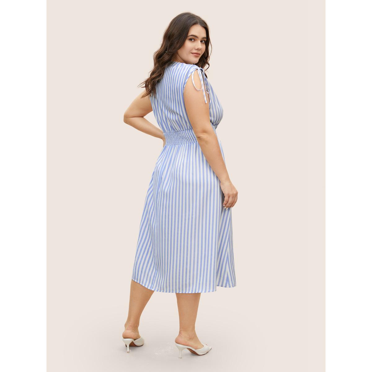 Plus Size Striped Drawstring Shirred Dolman Sleeve Dress Skyblue Women Work From Home Drawstring Flat collar with V-notch Sleeveless Curvy BloomChic 18-20/2X