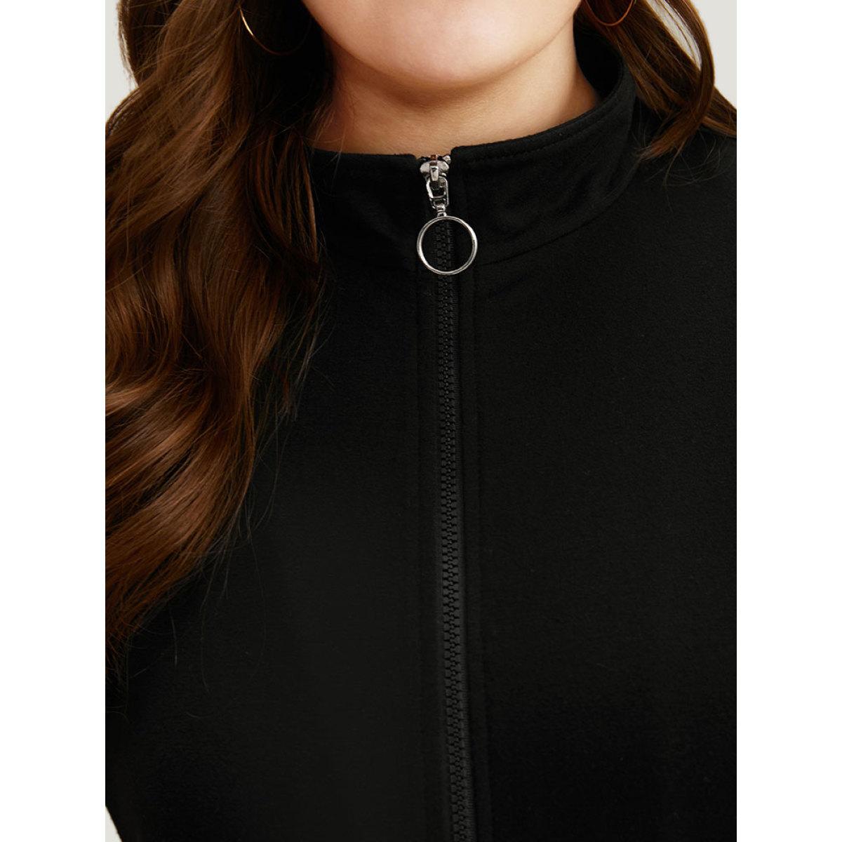 Plus Size Striped Geometric Mock Neck Zipper Jacket Women Black Contrast Everyday Jackets BloomChic 10/M Product Image