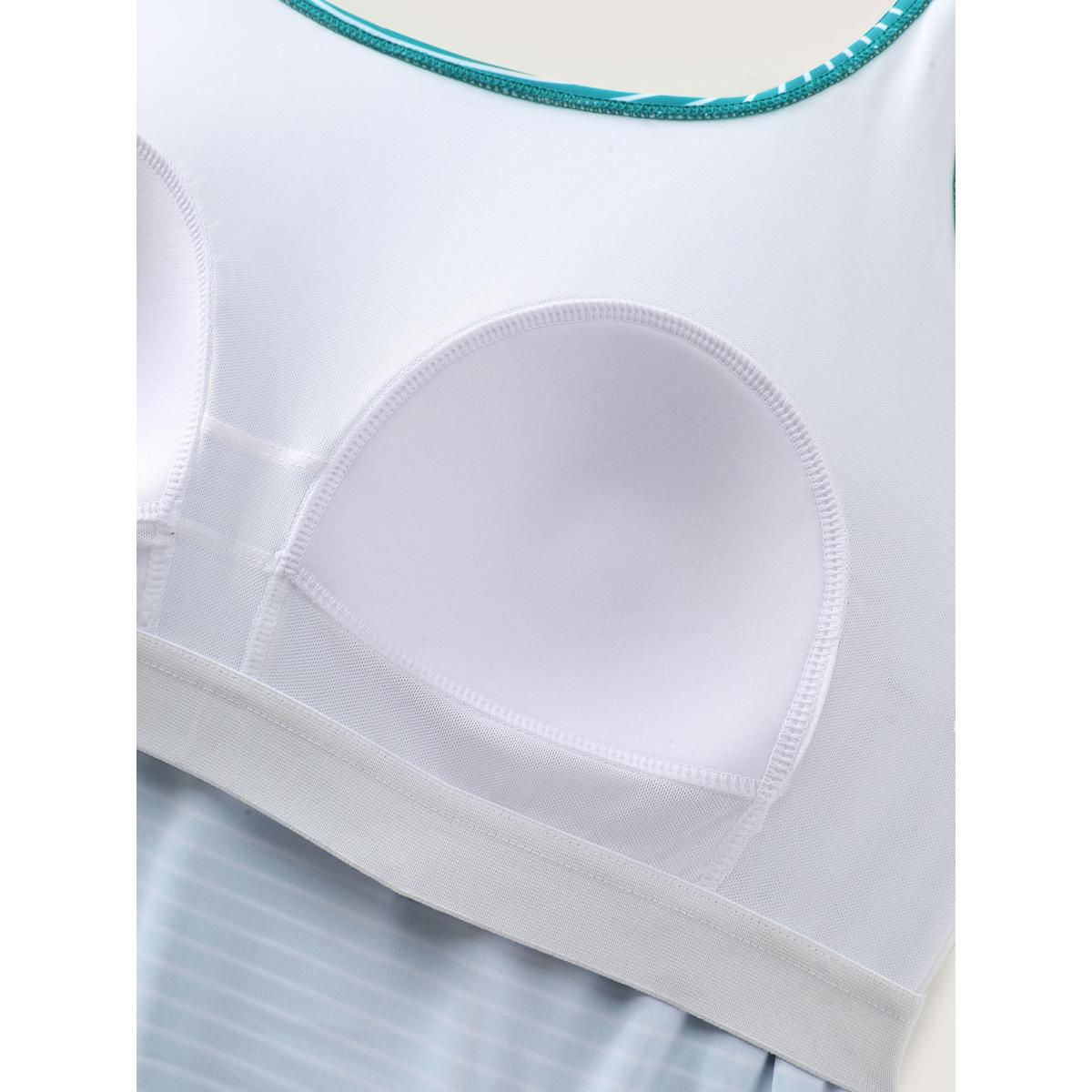 Plus Size Striped Non-Removable Cups Swim Top Women's Swimwear Teal Resort Drawstring High stretch Bodycon U-neck Curve Swim Tops BloomChic 18-20/2X