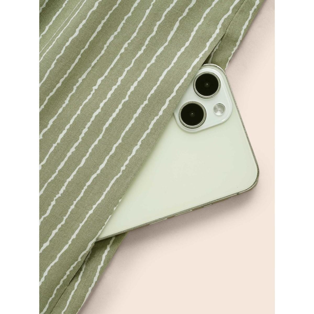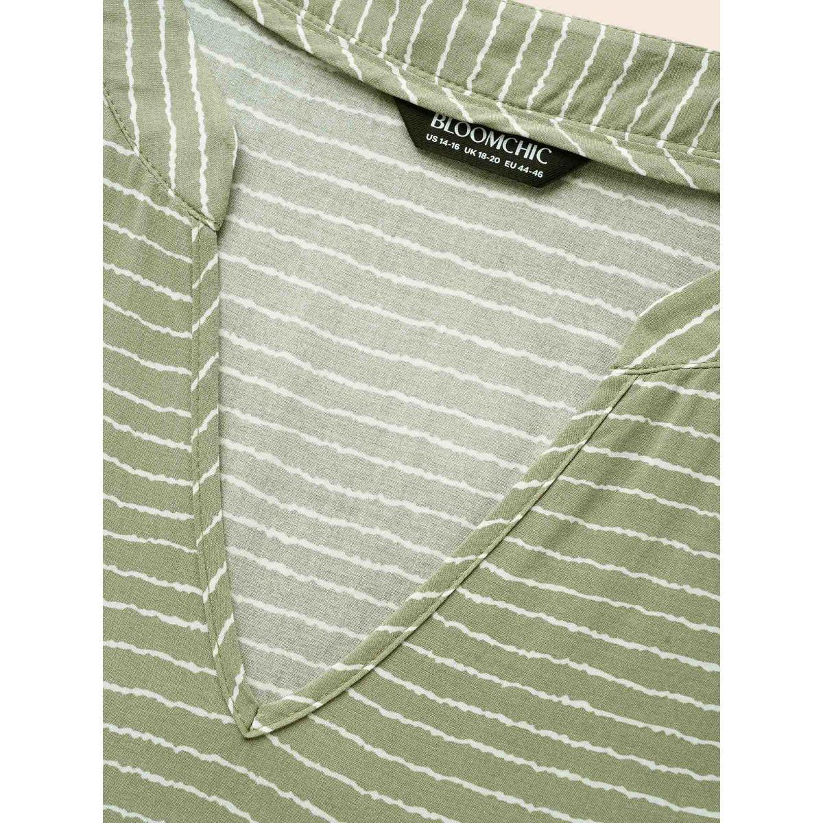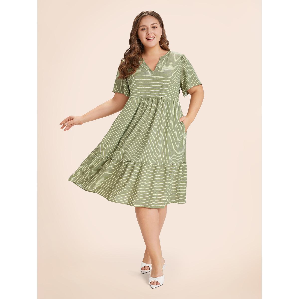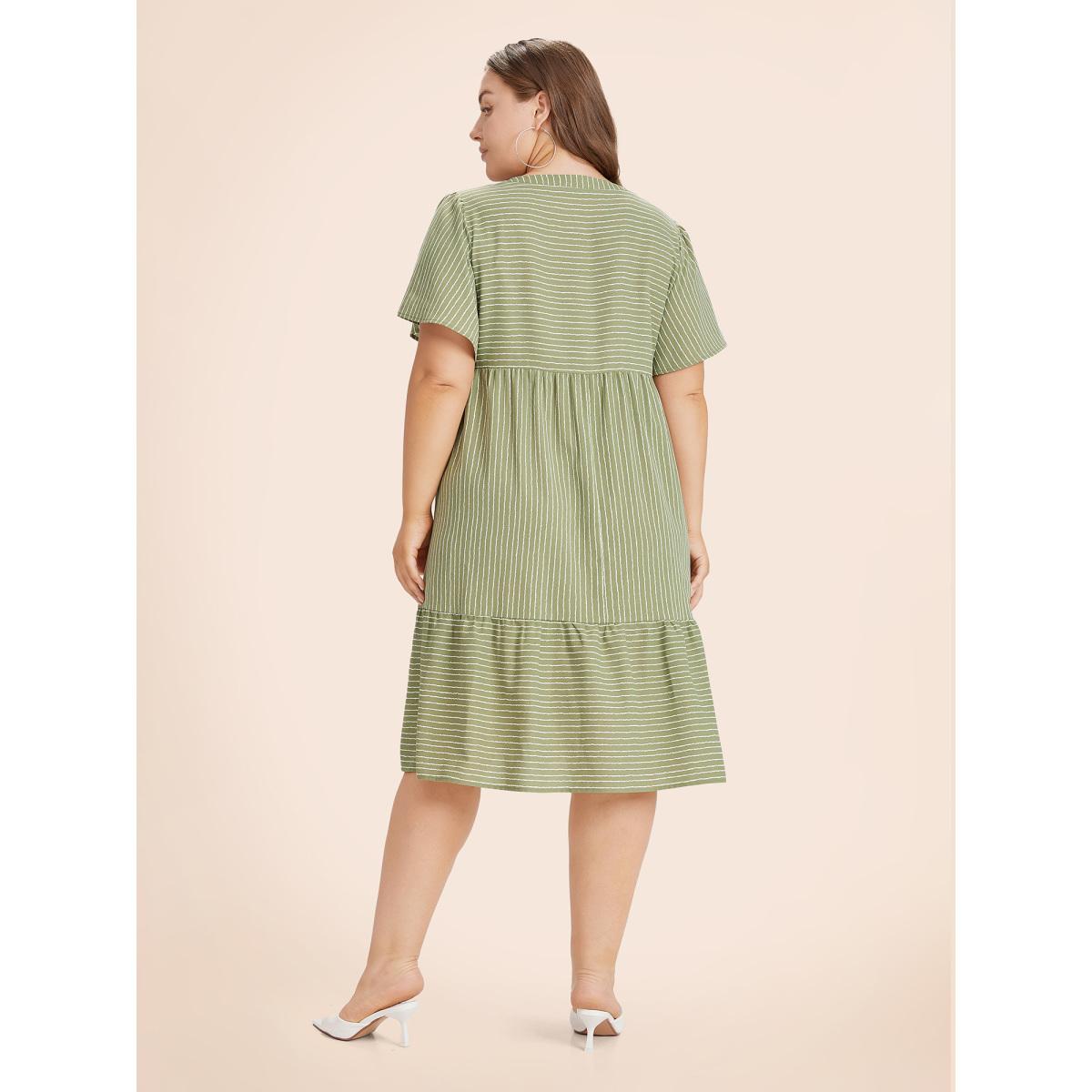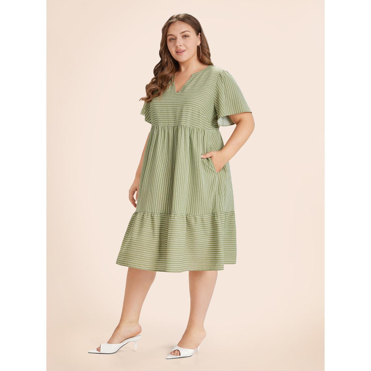Plus Size Striped Patchwork Notched Flutter Layered Babydoll Dress Moss Women Leisure Gathered Notched collar Curvy Midi Dress BloomChic 18-20/2X