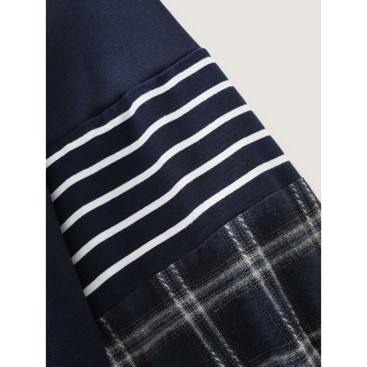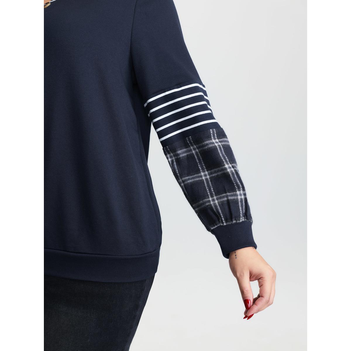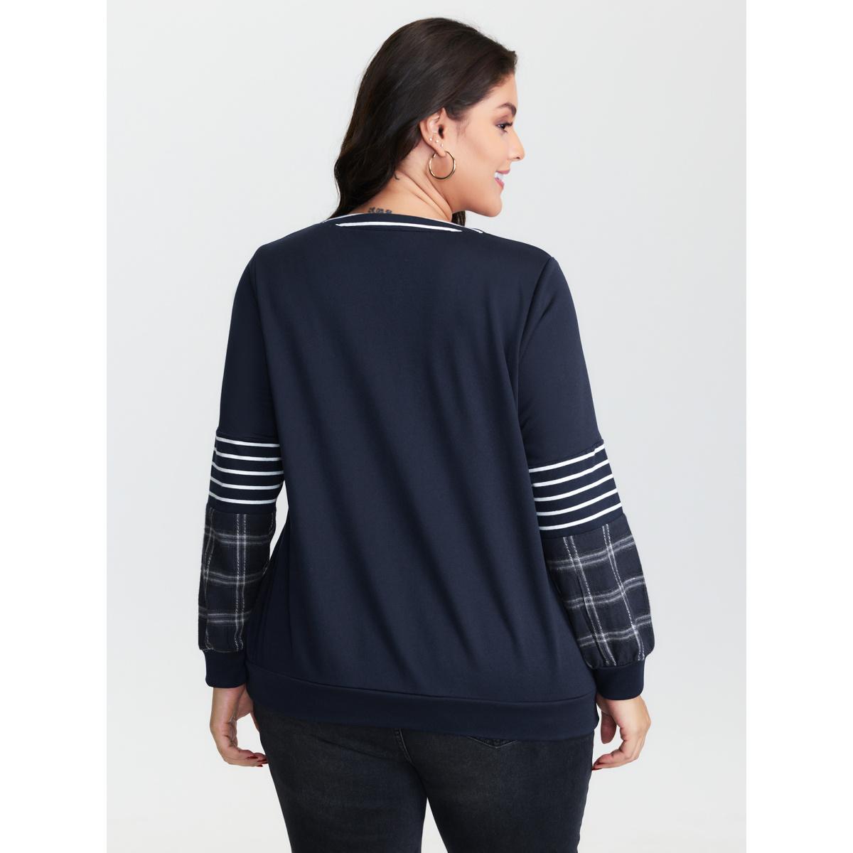 Plus Size Striped Plaid Split Neckline Sweatshirt Women Midnight Leisure Contrast Flat collar with V-notch Casual Sweatshirts BloomChic 26/4X Product Image