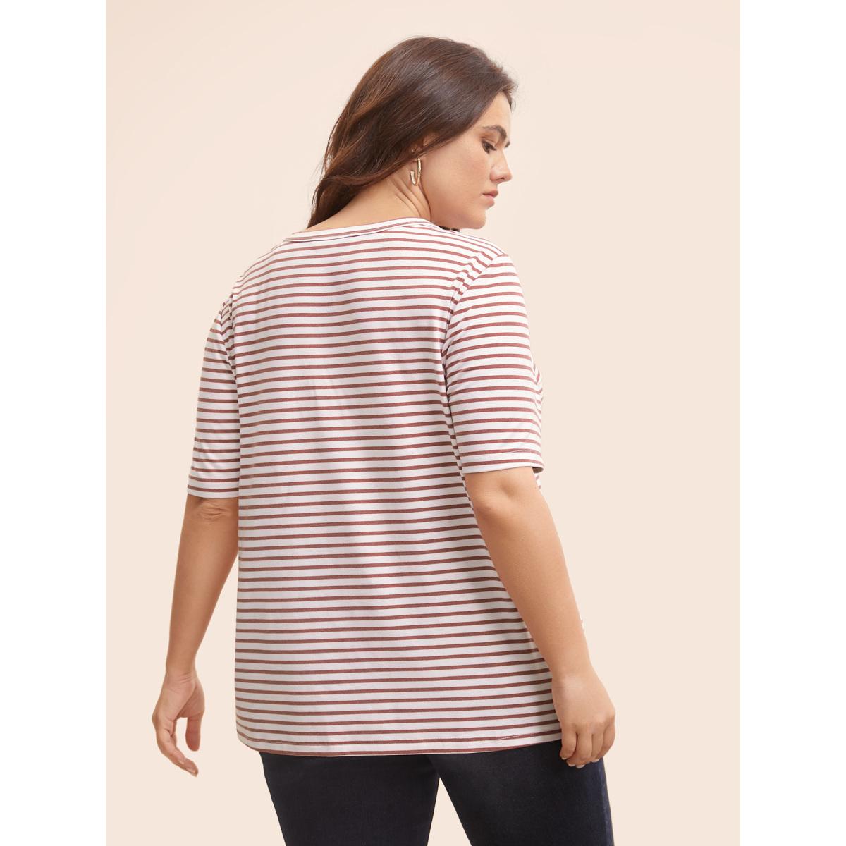 Plus Size Round Neck Contrast Striped T-shirt Multicolor Women Casual Contrast Round Neck Everyday T-shirts BloomChic 18-20/2X