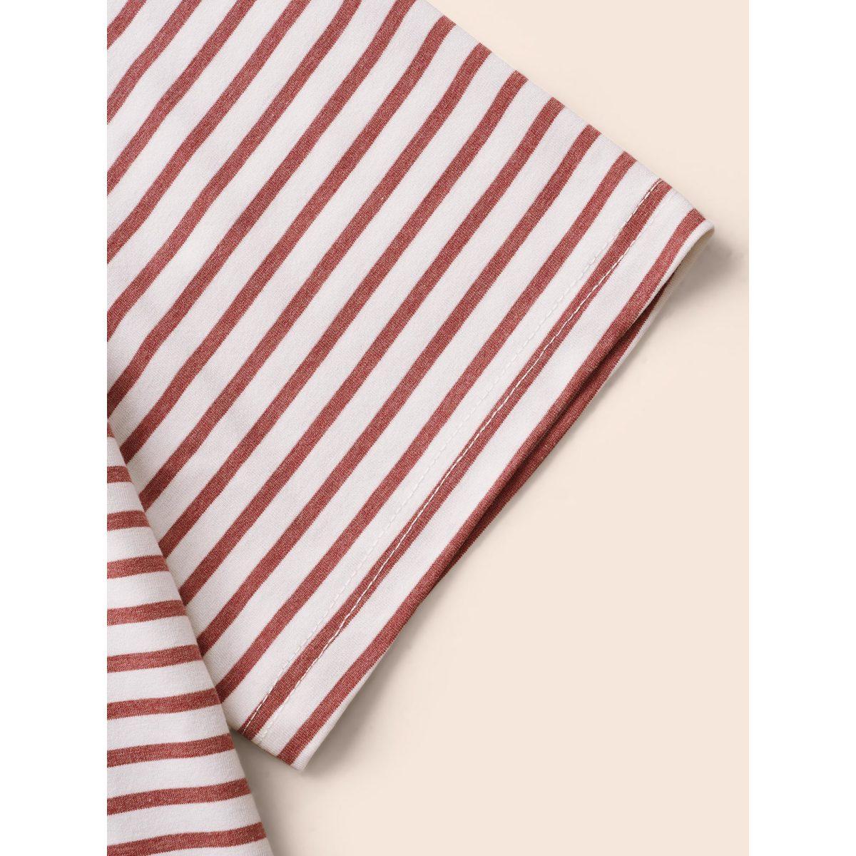 Plus Size Pure Cotton Colorful Stripes T-Shirt Multicolor Women Contrast Round Neck Everyday-Casual T-shirts BloomChic 12/L