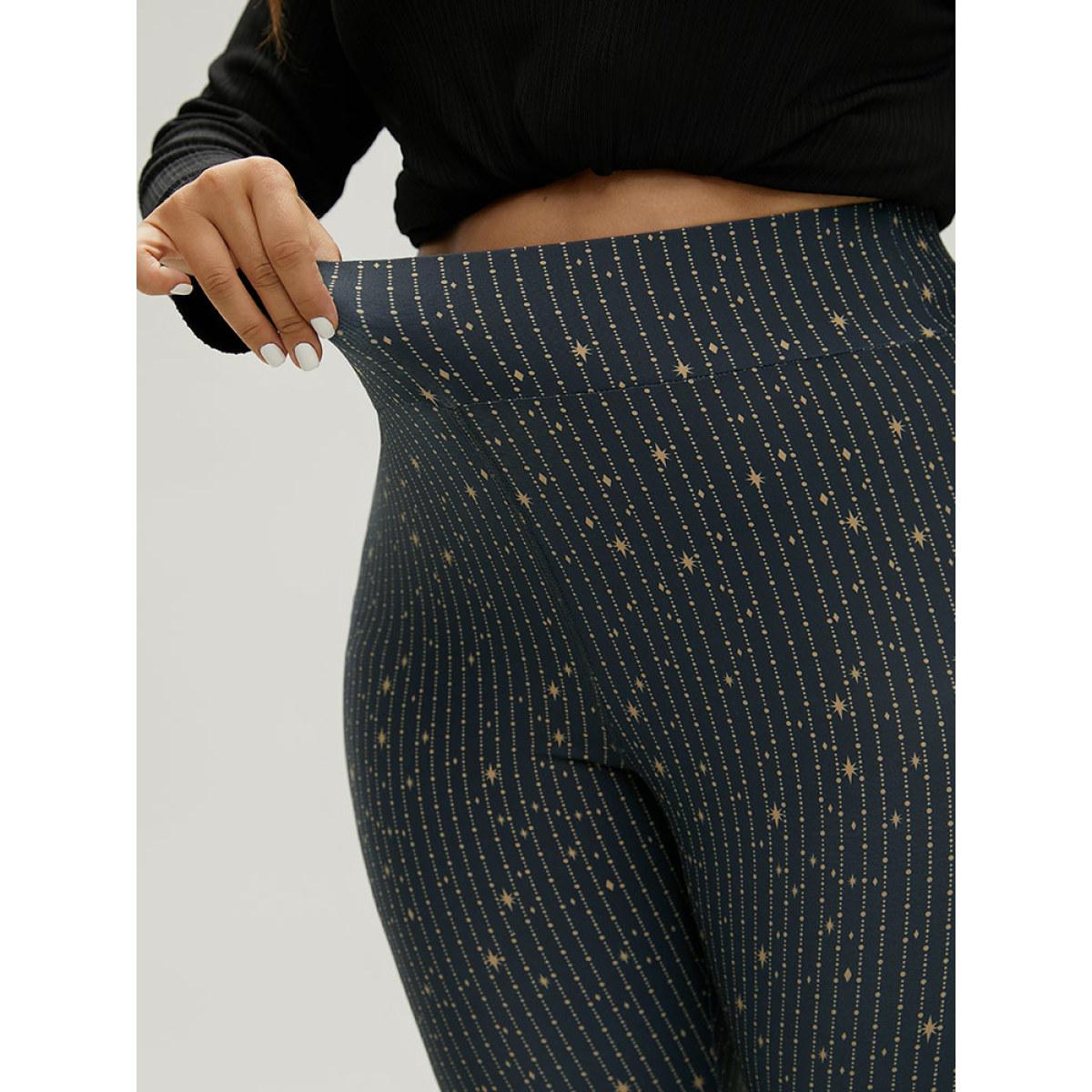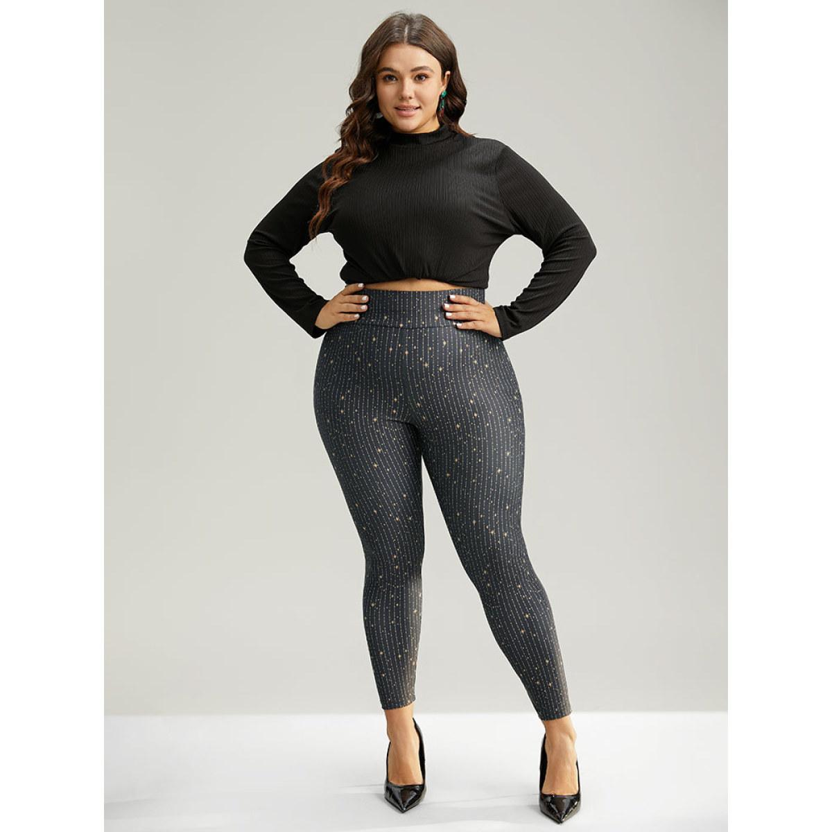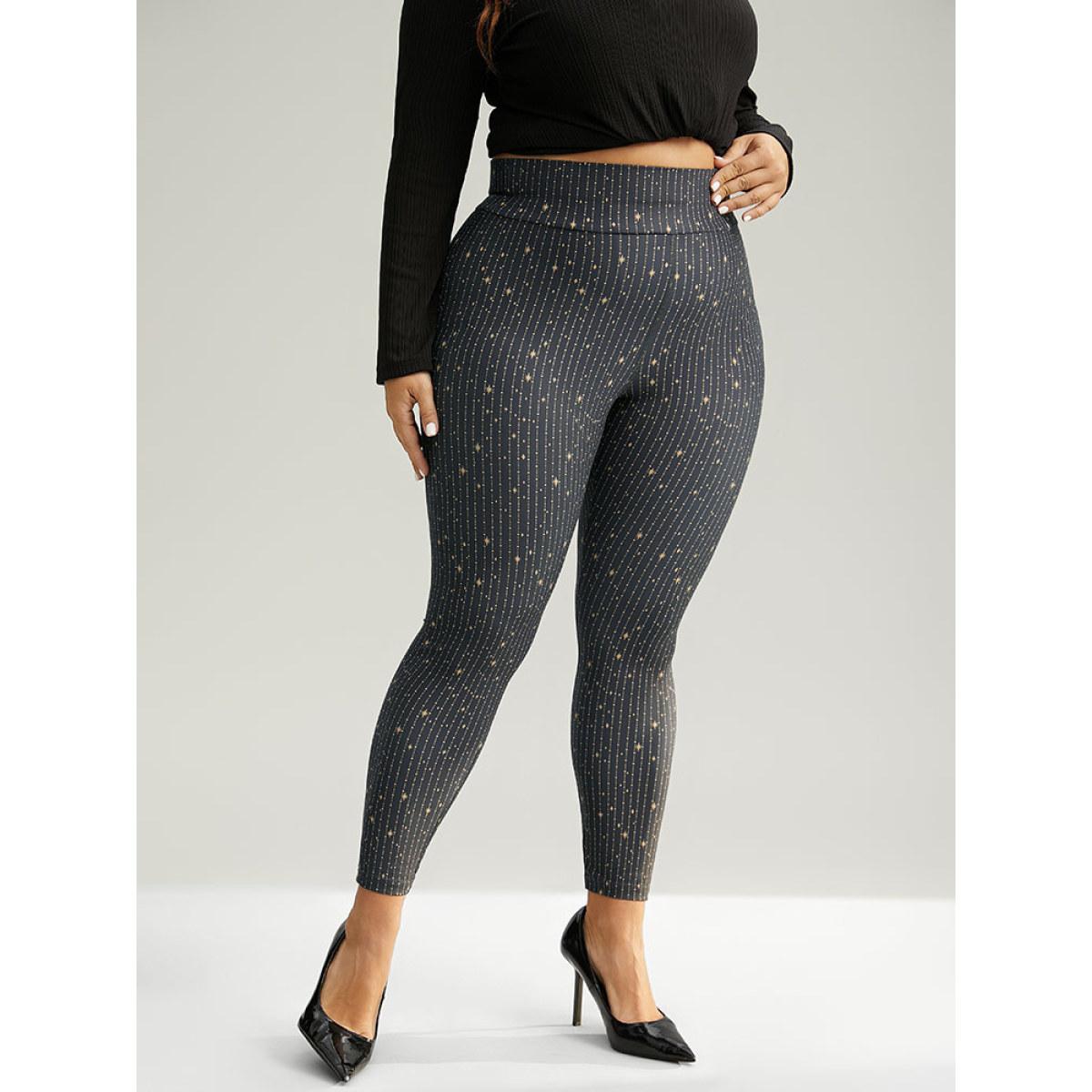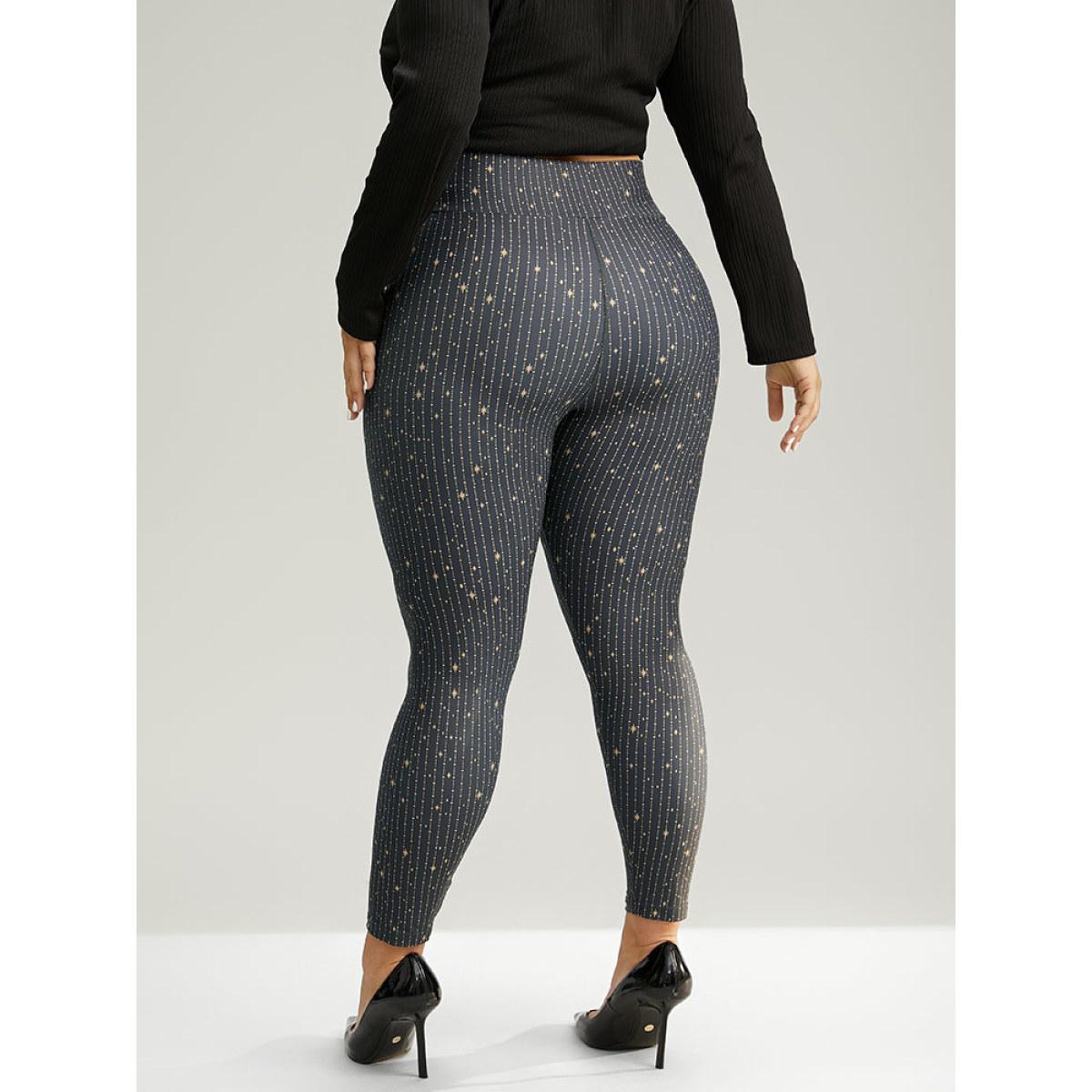 Plus Size Striped & Star Print Elastic Waist Leggings Women Black Elegant High stretch Skinny High Rise Festival-Christmas Leggings BloomChic 26/4X