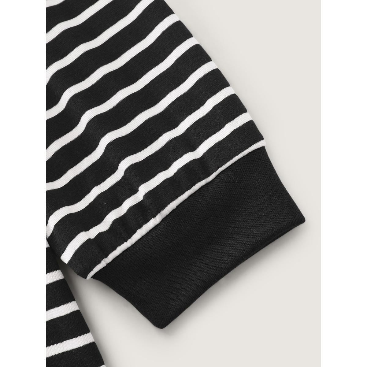 Plus Size Contrast Striped Basic Crew Neck Sweatshirt Women Black Casual Contrast Round Neck Dailywear Sweatshirts BloomChic 10/M