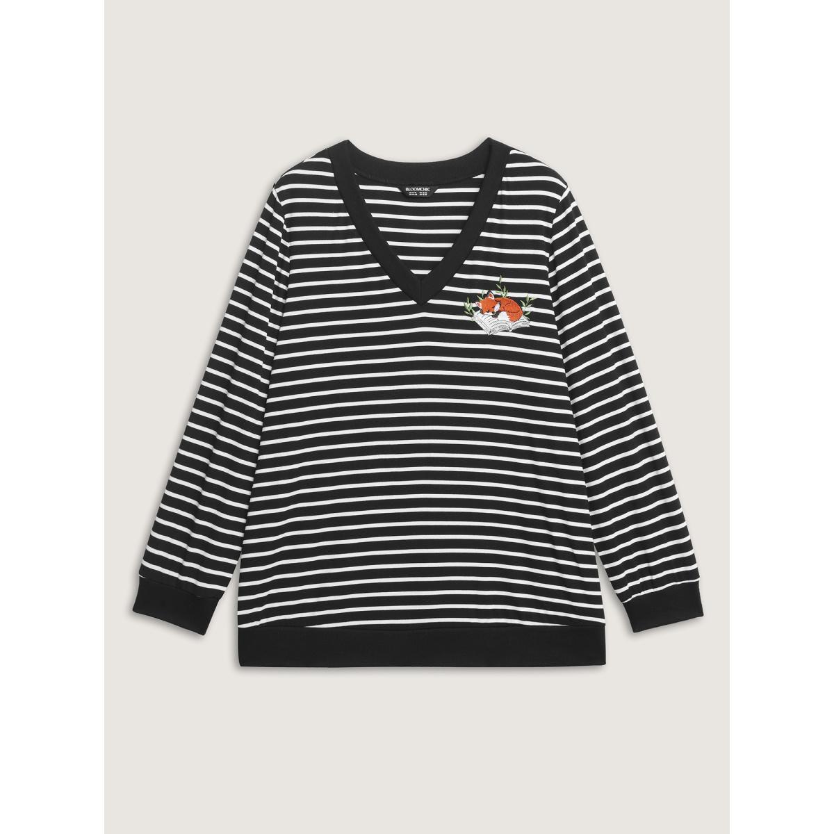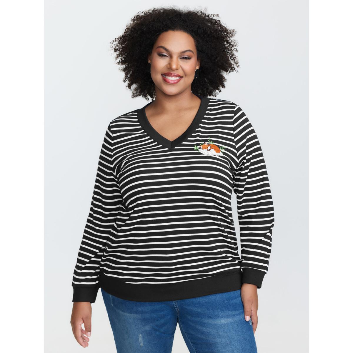 Plus Size Striped Stretchy V-Neck Sweatshirt Women Black Leisure Contrast V-neck Casual Sweatshirts BloomChic 22-24/3X