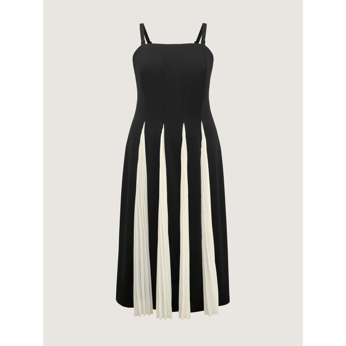 Plus Size Contrast Trim Adjustable Straps Dress Black Women At the Office Contrast V-neck Sleeveless Curvy Knee Dress BloomChic 28/5X