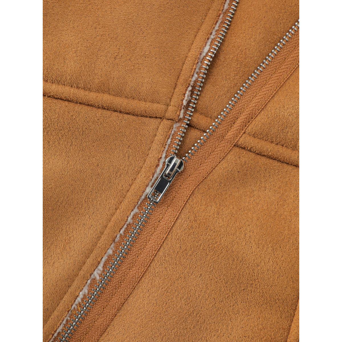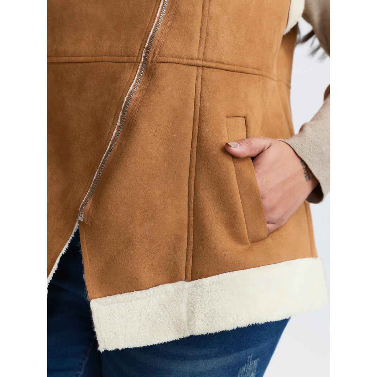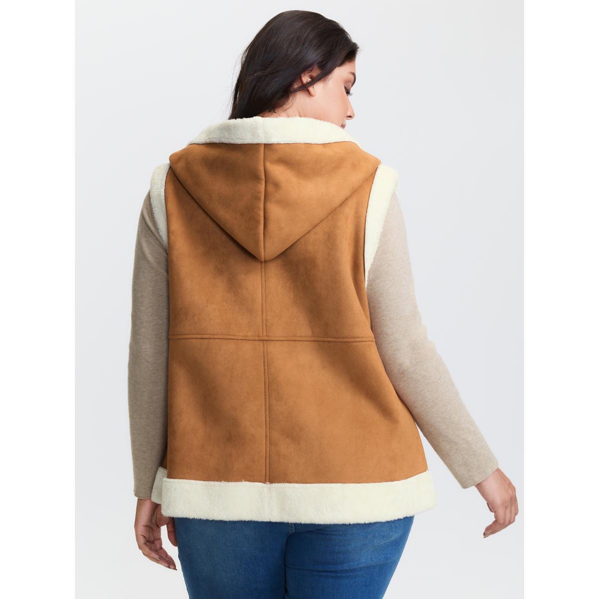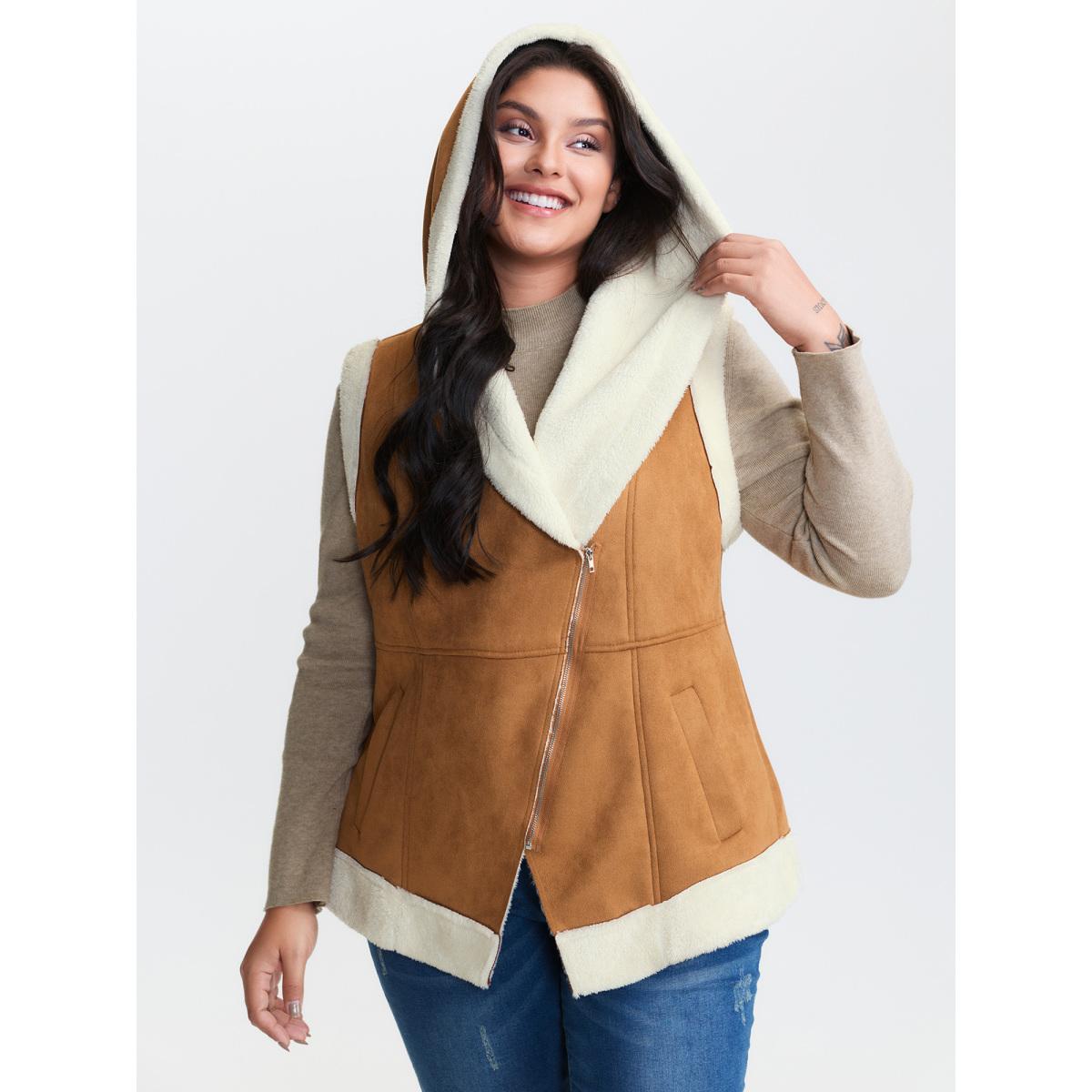 Plus Size Suede Fluffy Zipper Hooded Vest Coat Women Yellowishbrown Leisure Contrast Ladies Casual Winter Coats BloomChic 28/5X