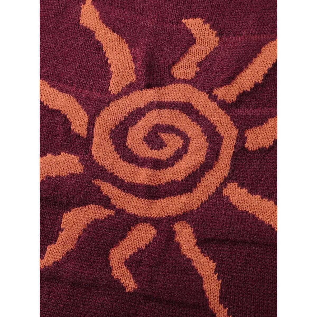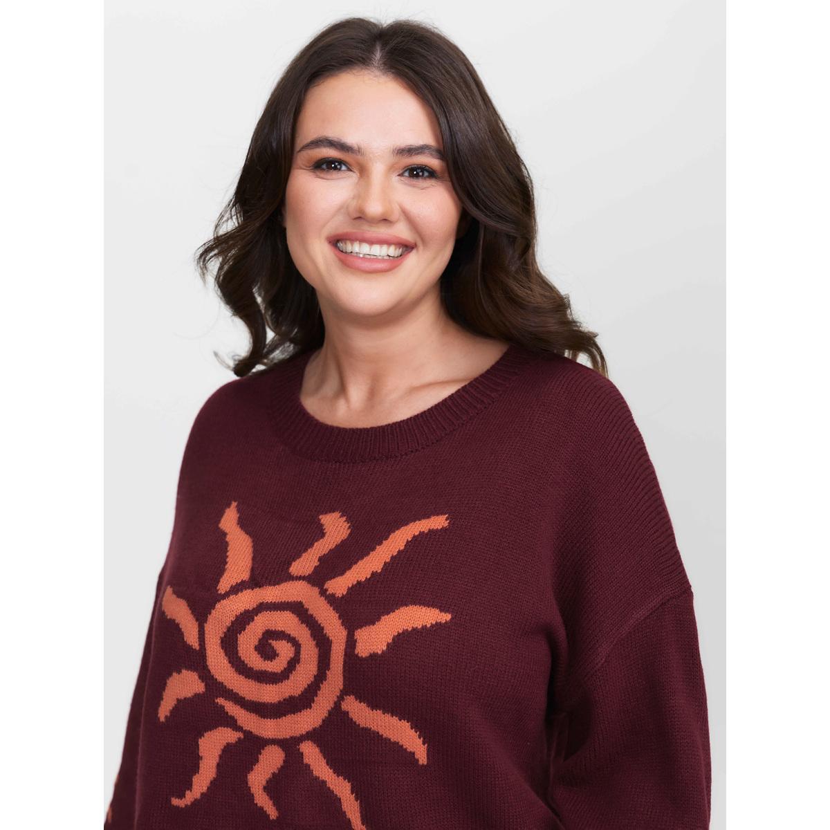Plus Size Sun Motif Round Neck Pullover Burgundy Women Loose Long Sleeve Round Neck Casual Pullovers BloomChic 30/6X Product Image