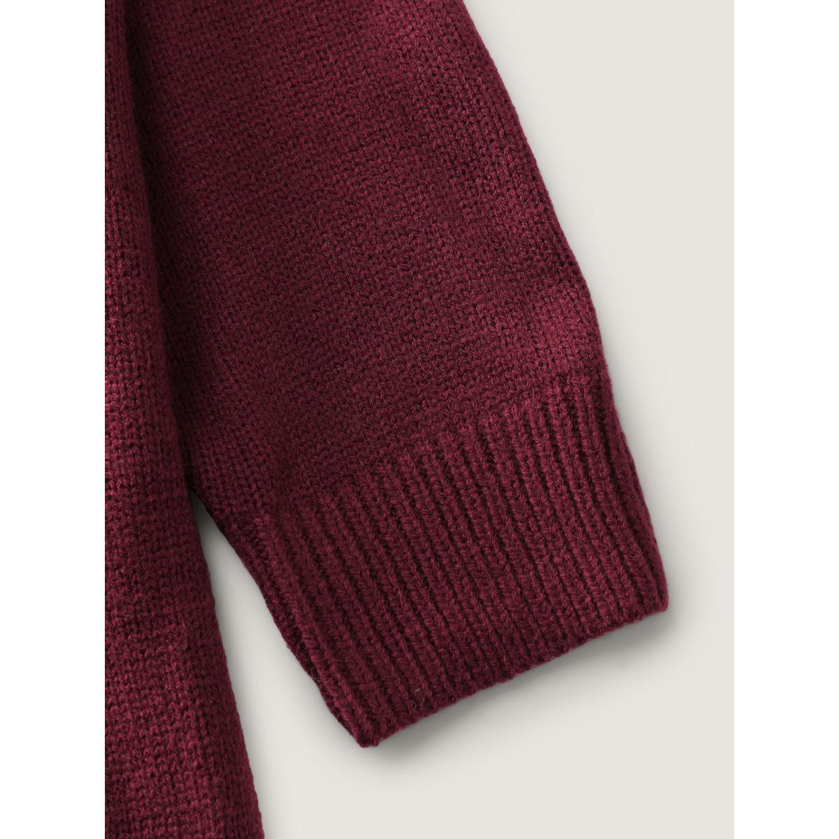 Plus Size Plain Texture Knit Raglan Sleeve Pullover Burgundy Women Casual Loose Long Sleeve Round Neck Dailywear Pullovers BloomChic 26/4X
