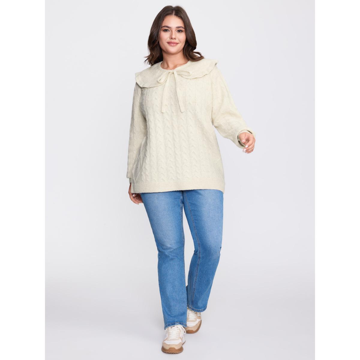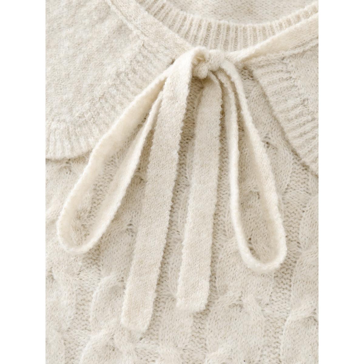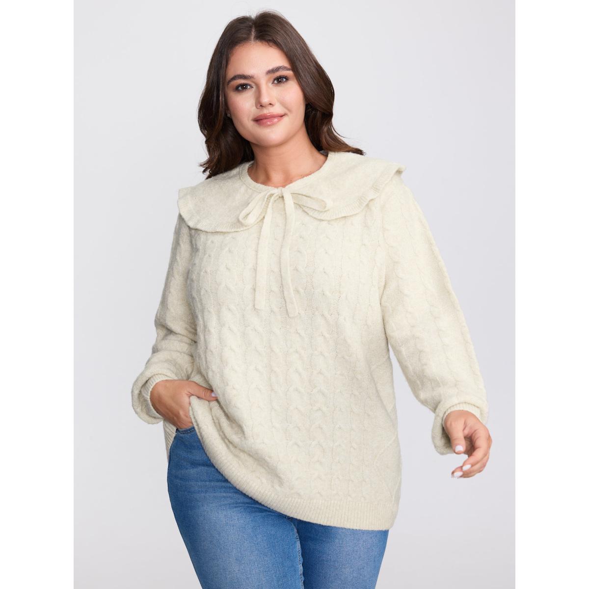 Plus Size Supersoft 2-in-1 Cable Knit Shawl-Tie Pullover Beige Women Timeless Loose Long Sleeve Round Neck Casual Pullovers BloomChic 12/L