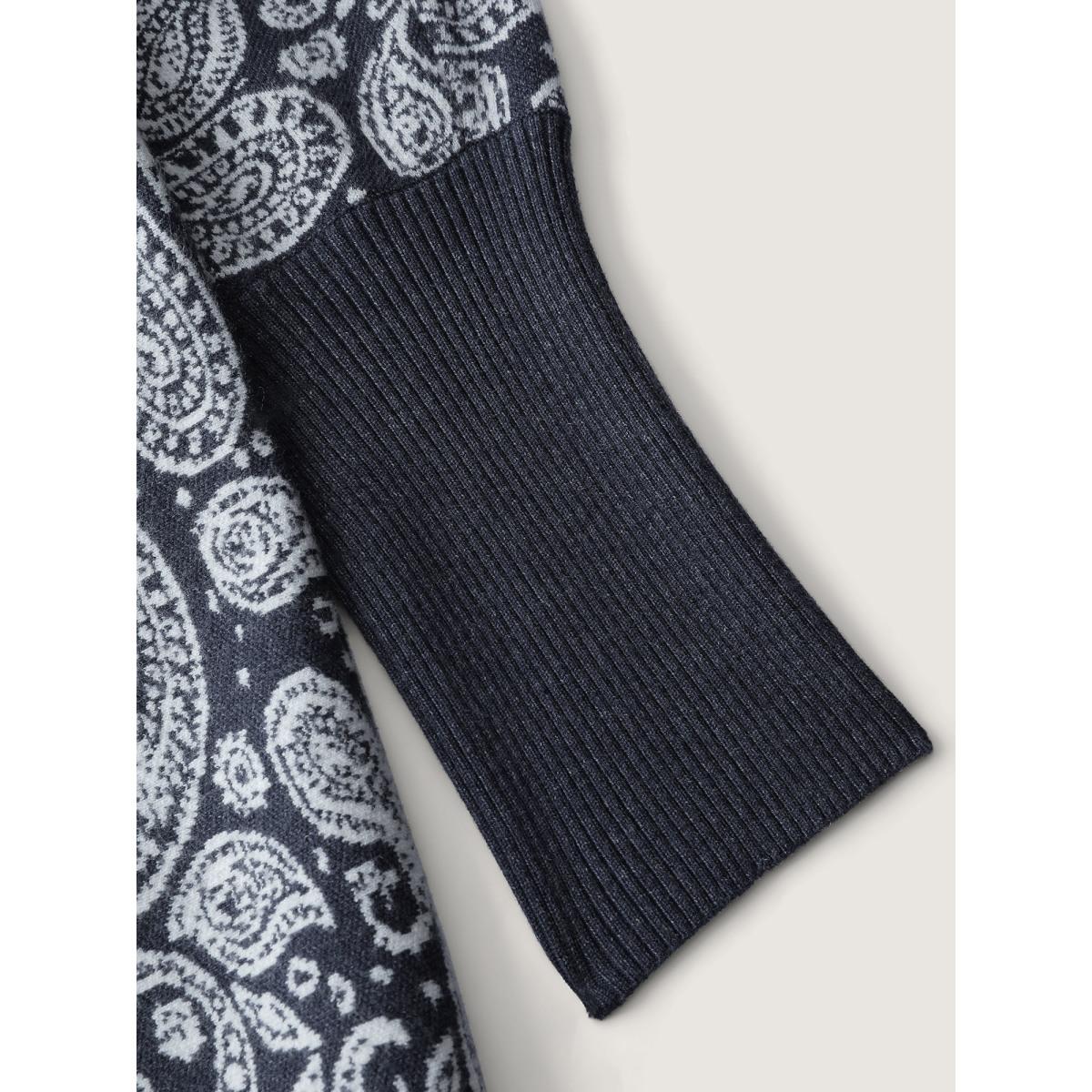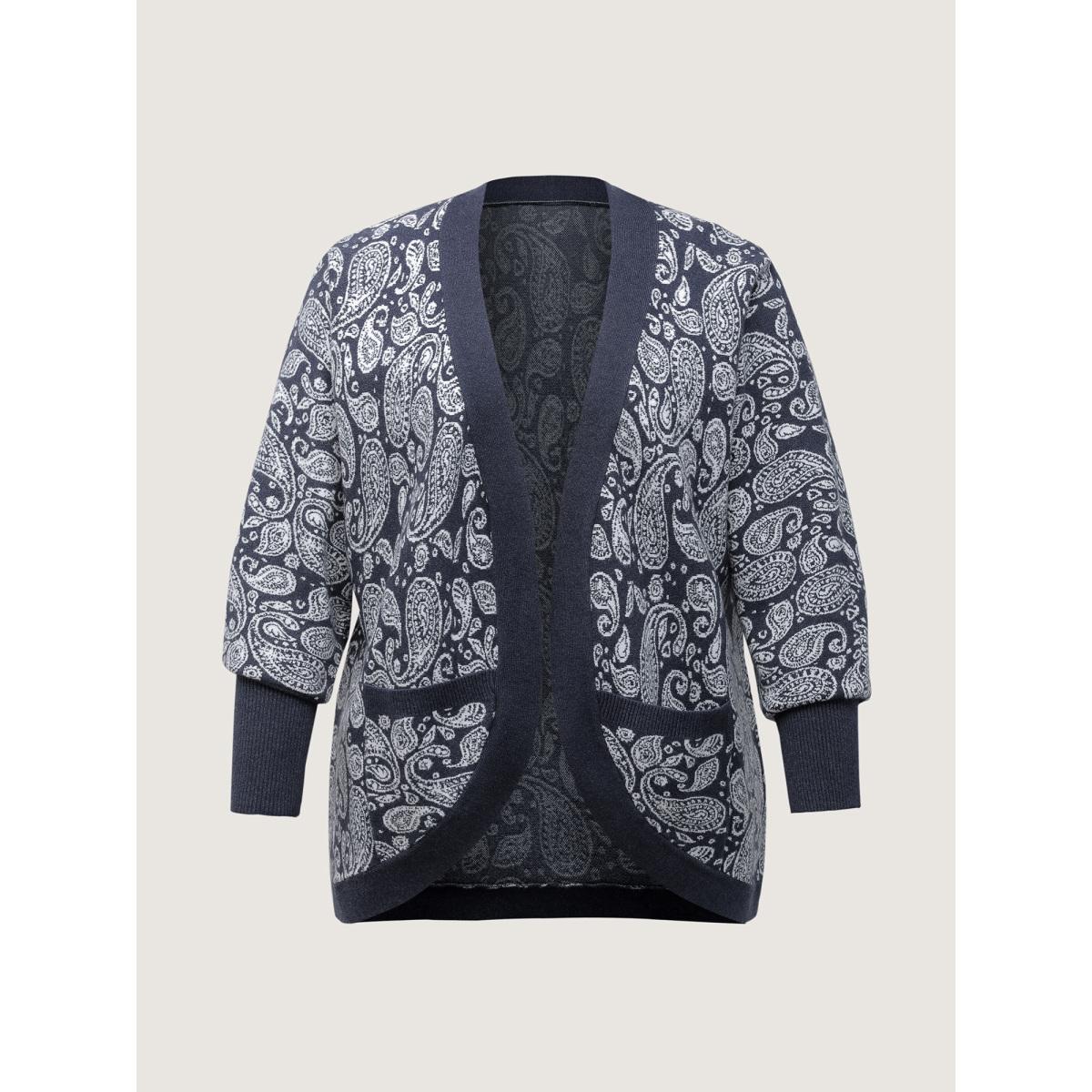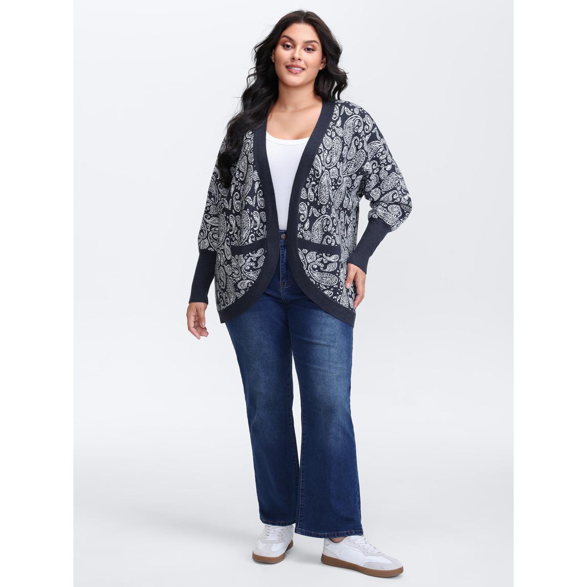 Plus Size Supersoft Arc Hem Paisley Print Pocket Knit Cardigan Midnight Women Leisure Loose Long Sleeve Casual Cardigans BloomChic 12/L