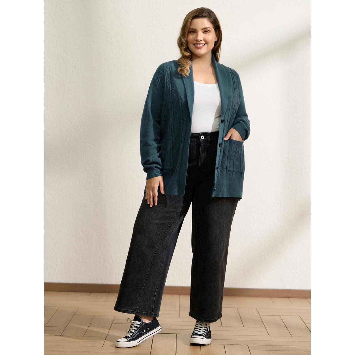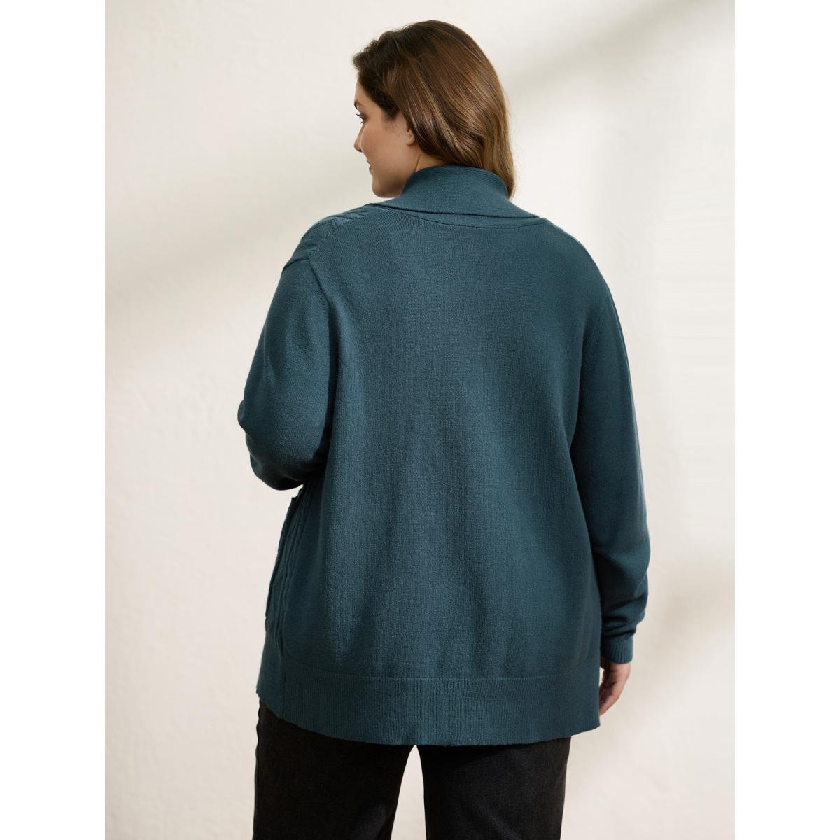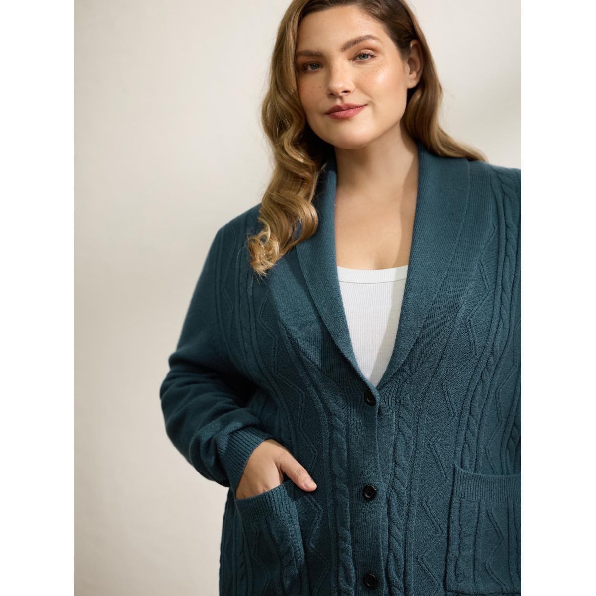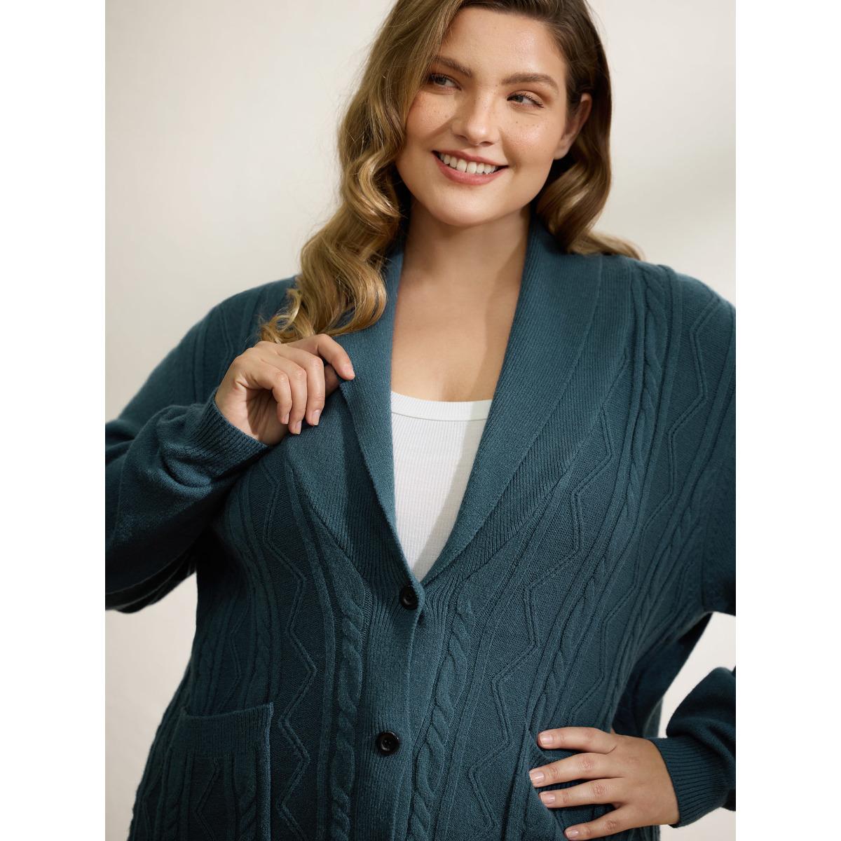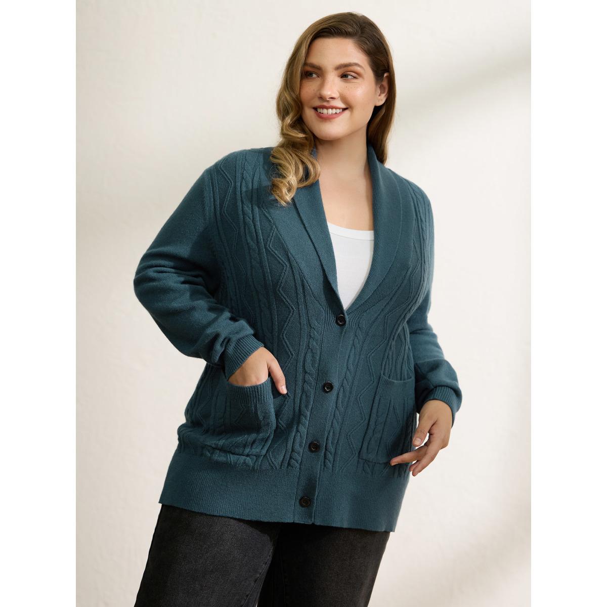 Plus Size Supersoft Cable Knit Pockets Shawl Collar Knit Cardigan Aegean Women Leisure Loose Long Sleeve Casual Cardigans BloomChic 10/M
