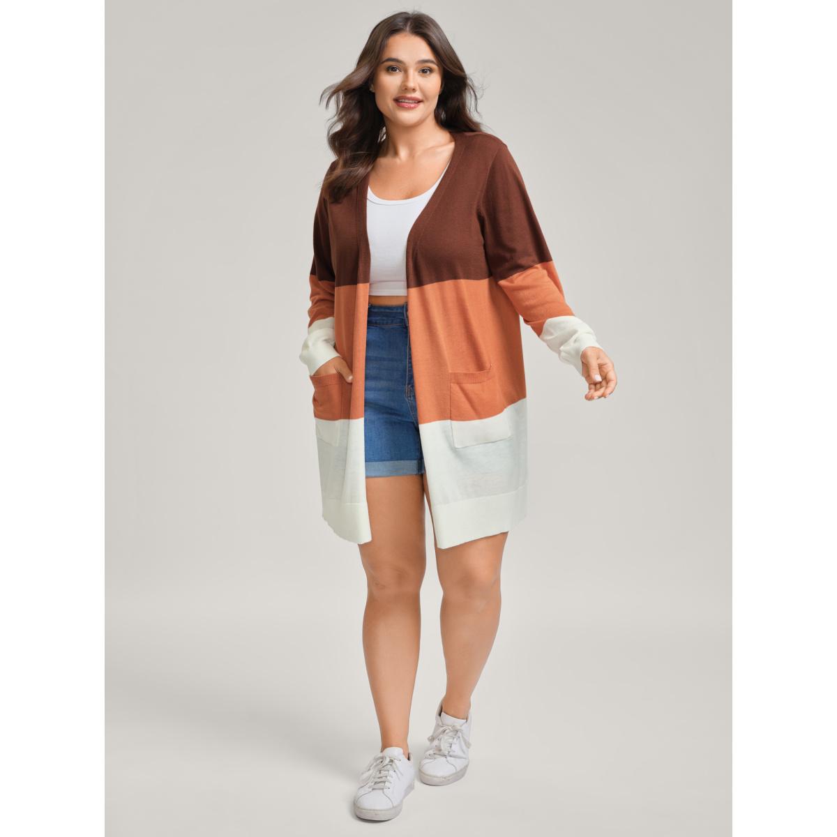 Plus Size Supersoft Color Block Front-Open Lightweight Cardigan Browncoffeecolor Women Leisure Loose Long Sleeve Casual Cardigans BloomChic 28/5X