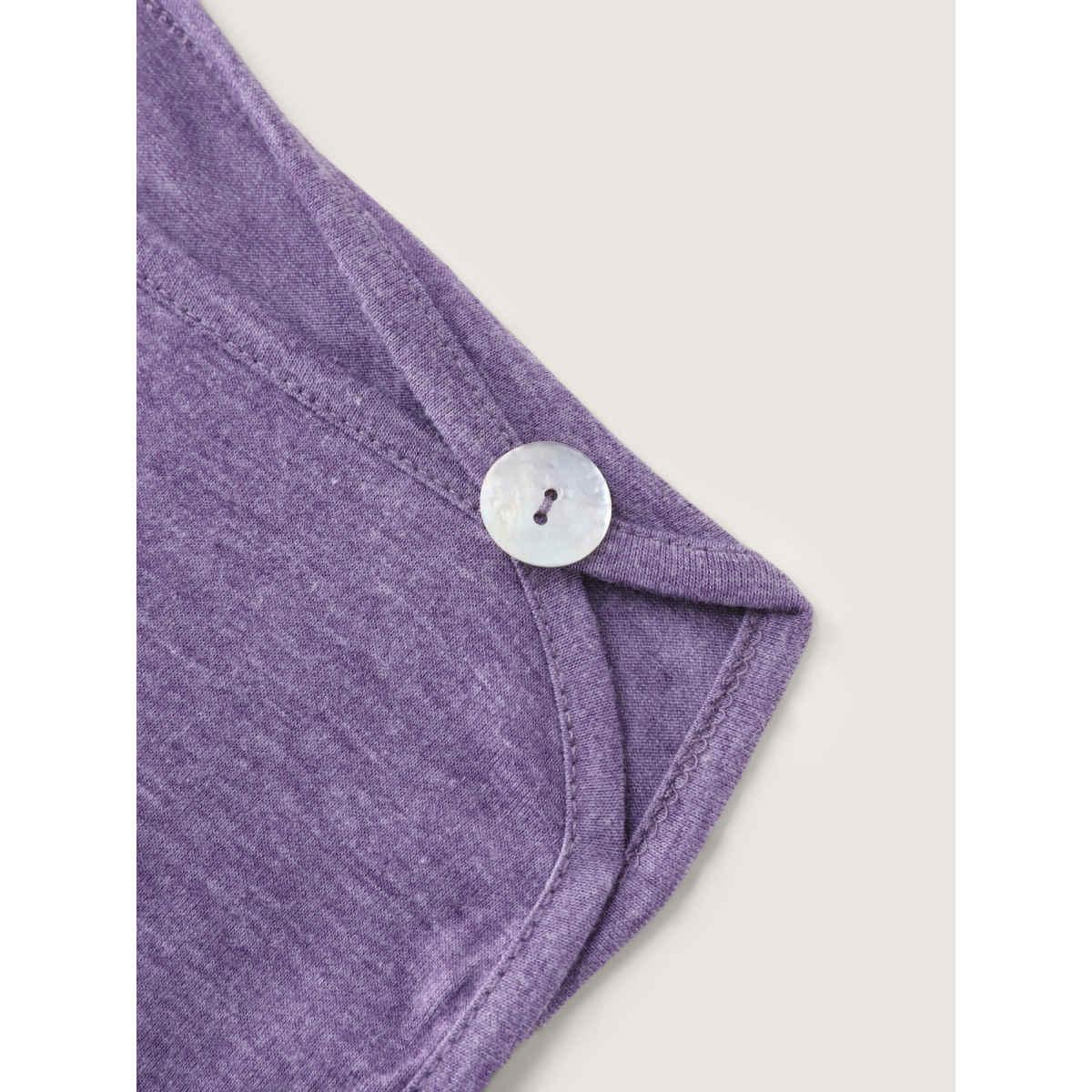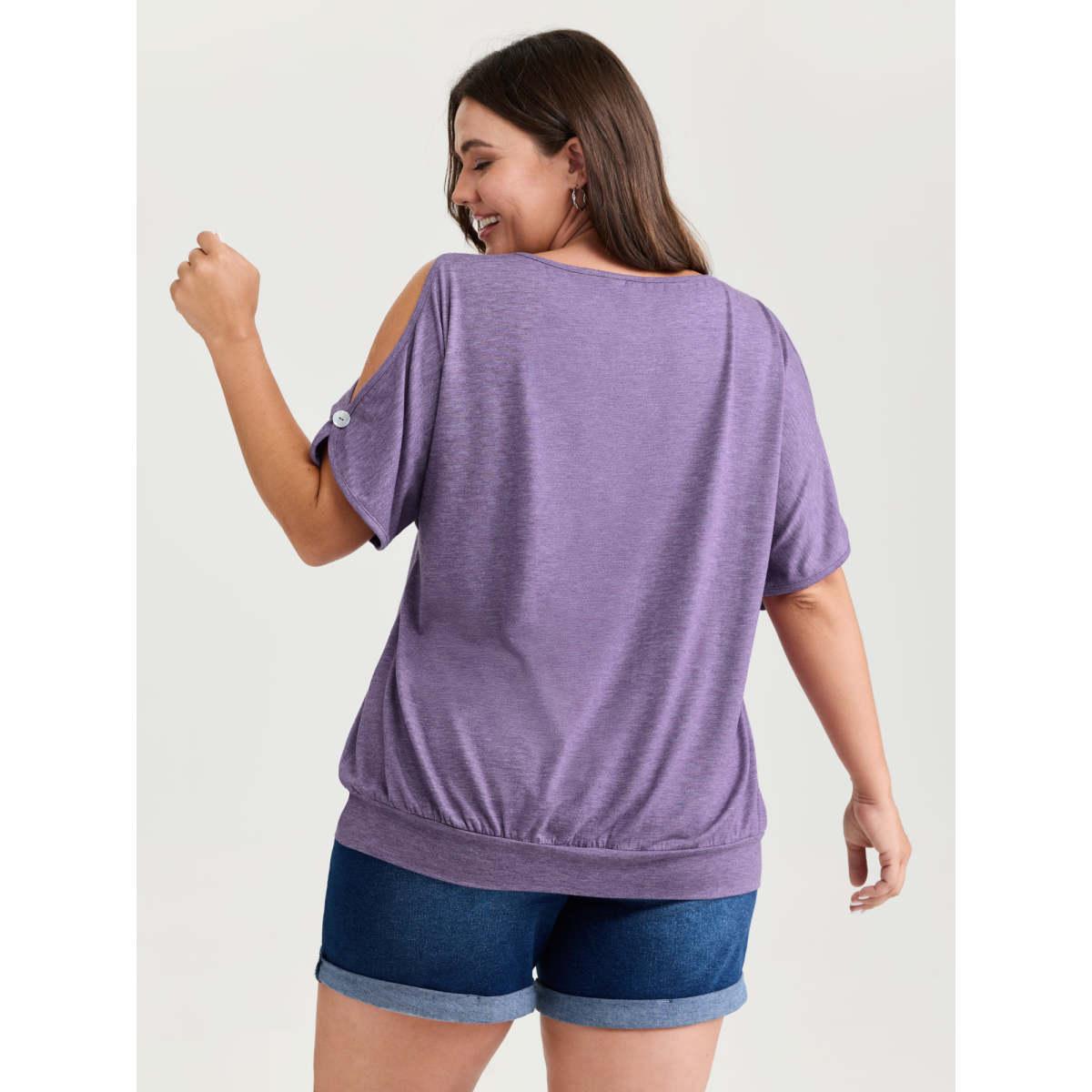 Plus Size Plain Button Detail Curved Hem T-shirt Purple Women Casual Plain Plain Round Neck Dailywear T-shirts BloomChic 26/4X
