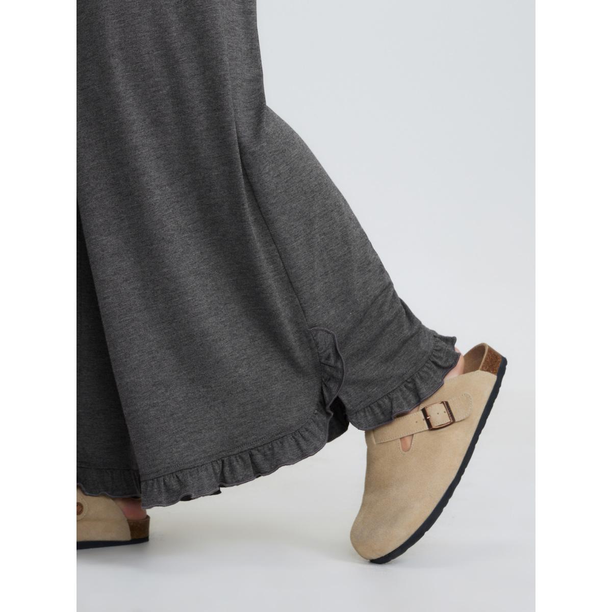 Plus Size Supersoft Drawstring Waist Ruffled Hem Pants Women DimGray Leisure Wide Leg Mid Rise Casual Pants BloomChic 28/5X Product Image