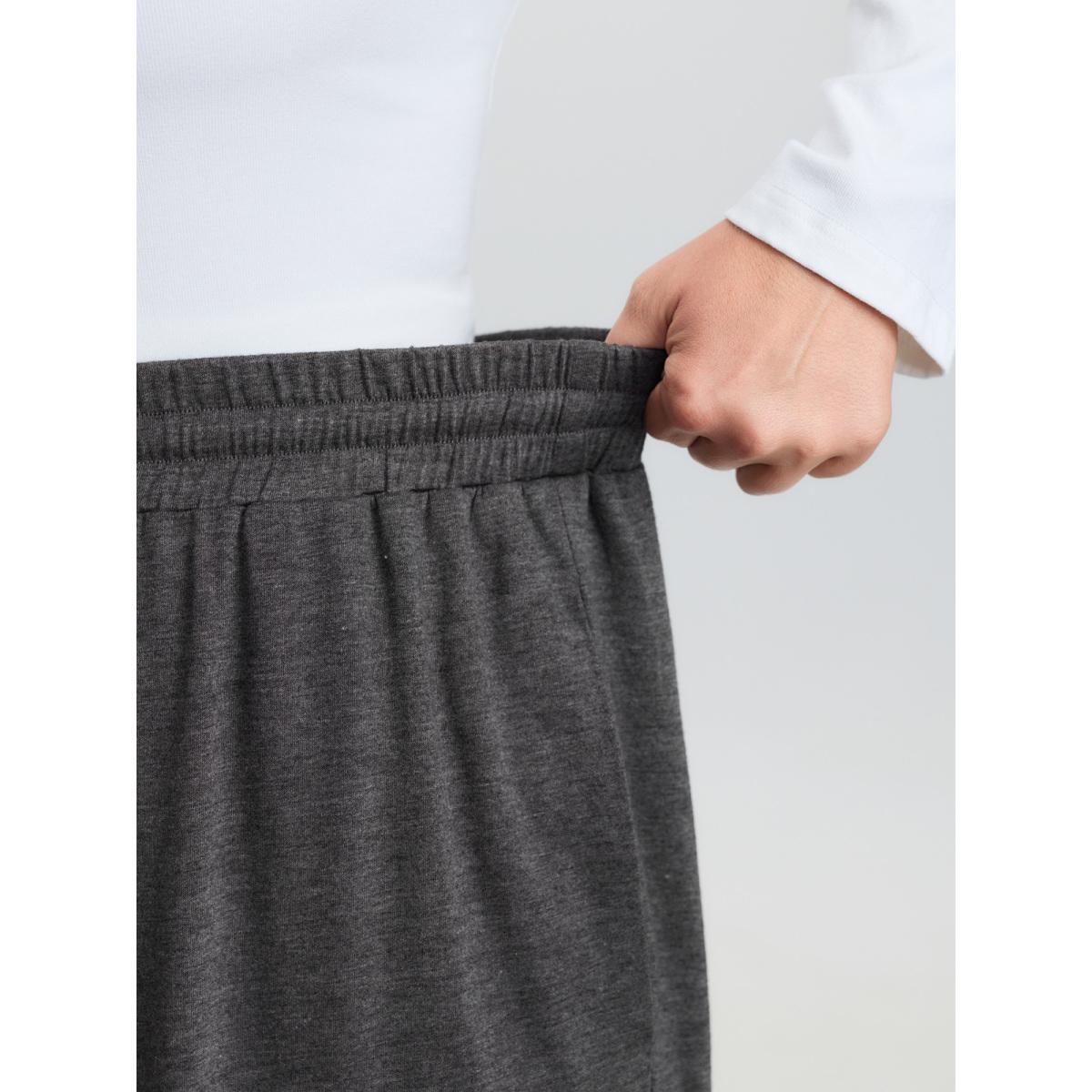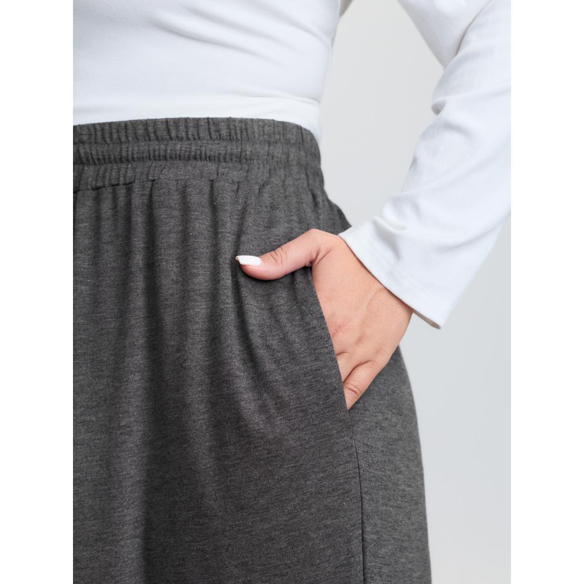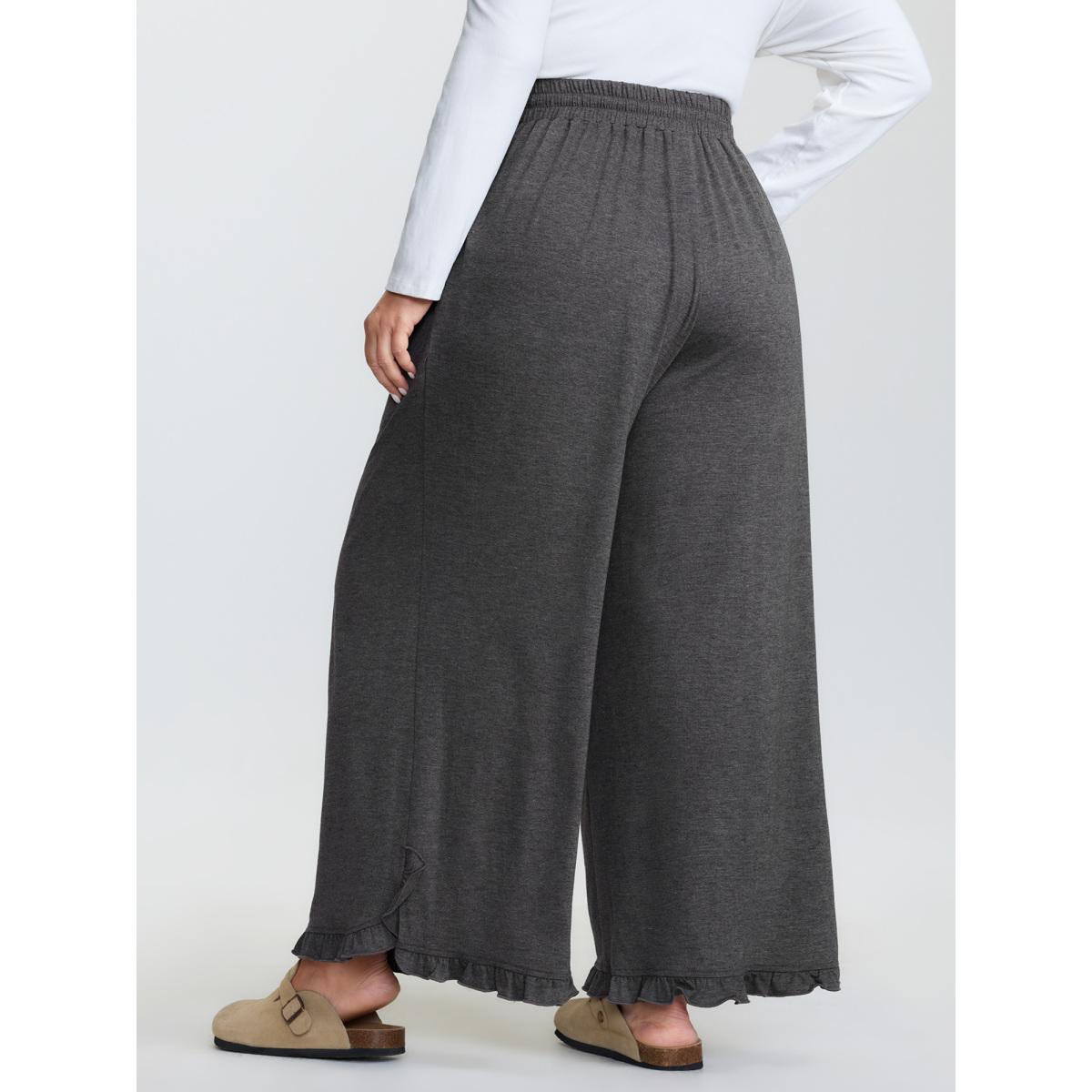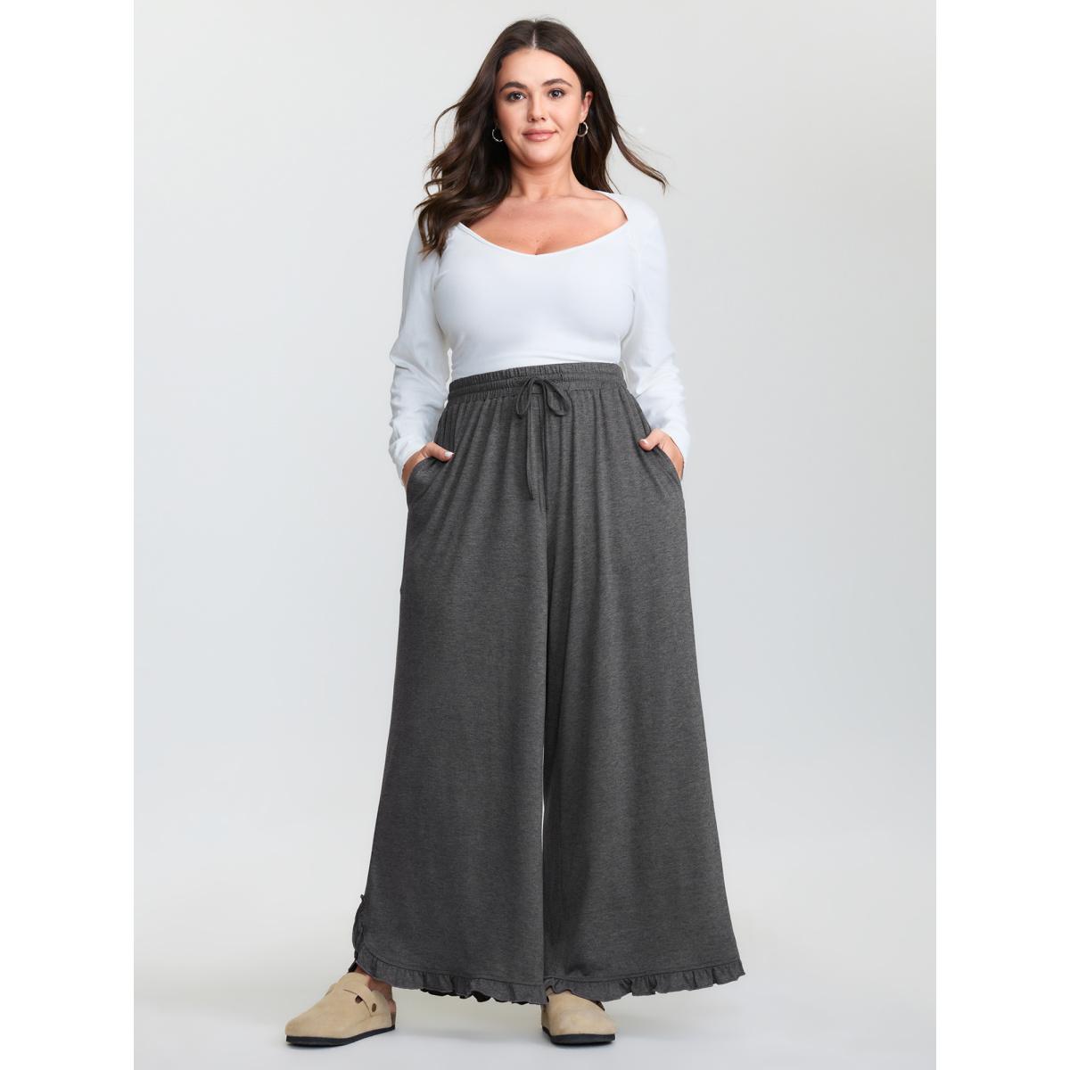 Plus Size Supersoft Drawstring Waist Ruffled Hem Pants Women DimGray Leisure Wide Leg Mid Rise Casual Pants BloomChic 28/5X