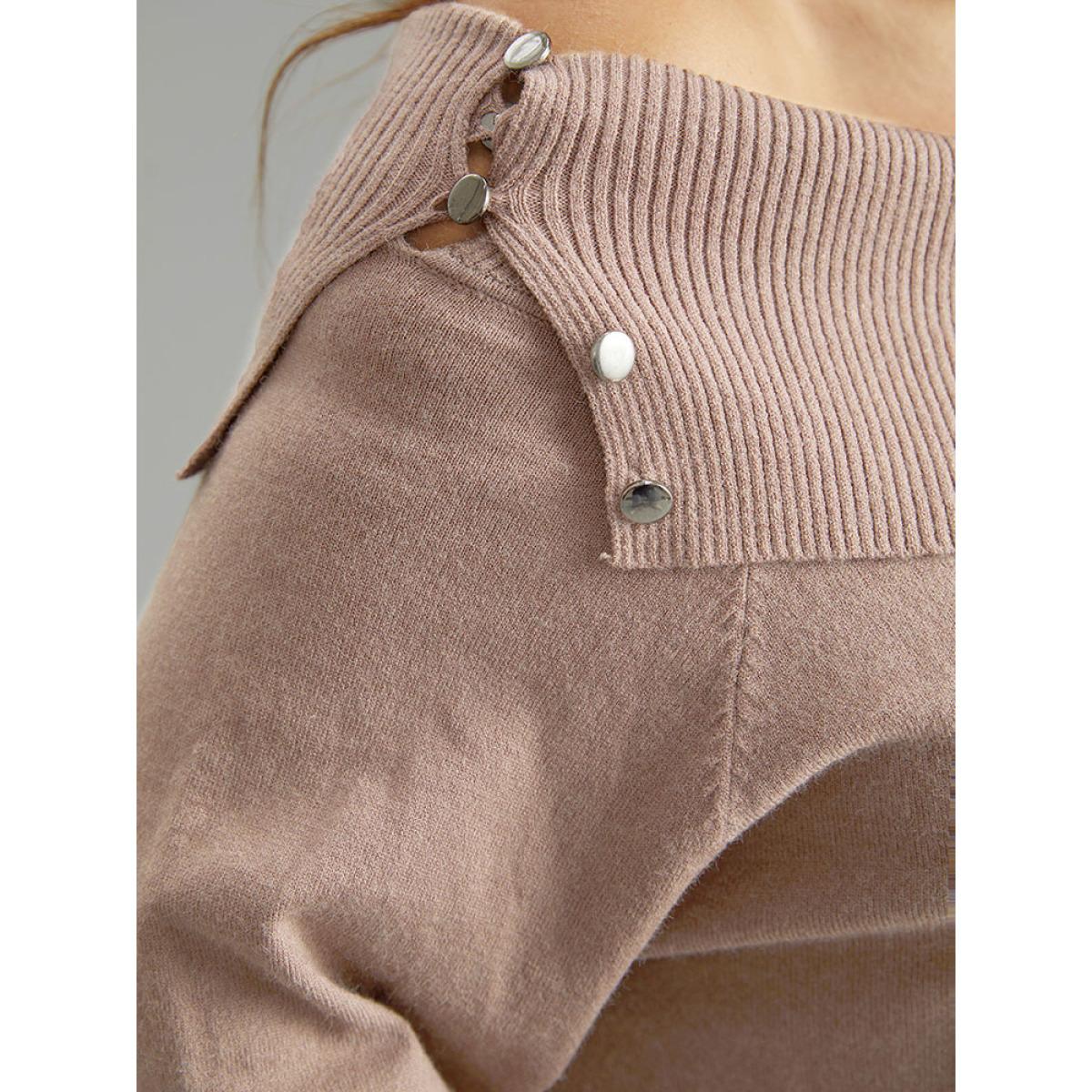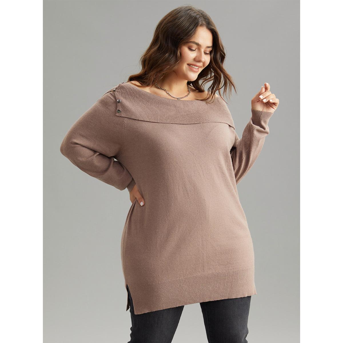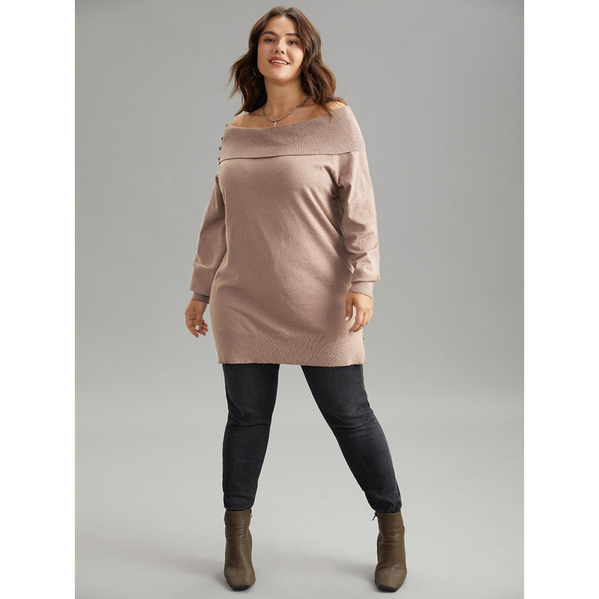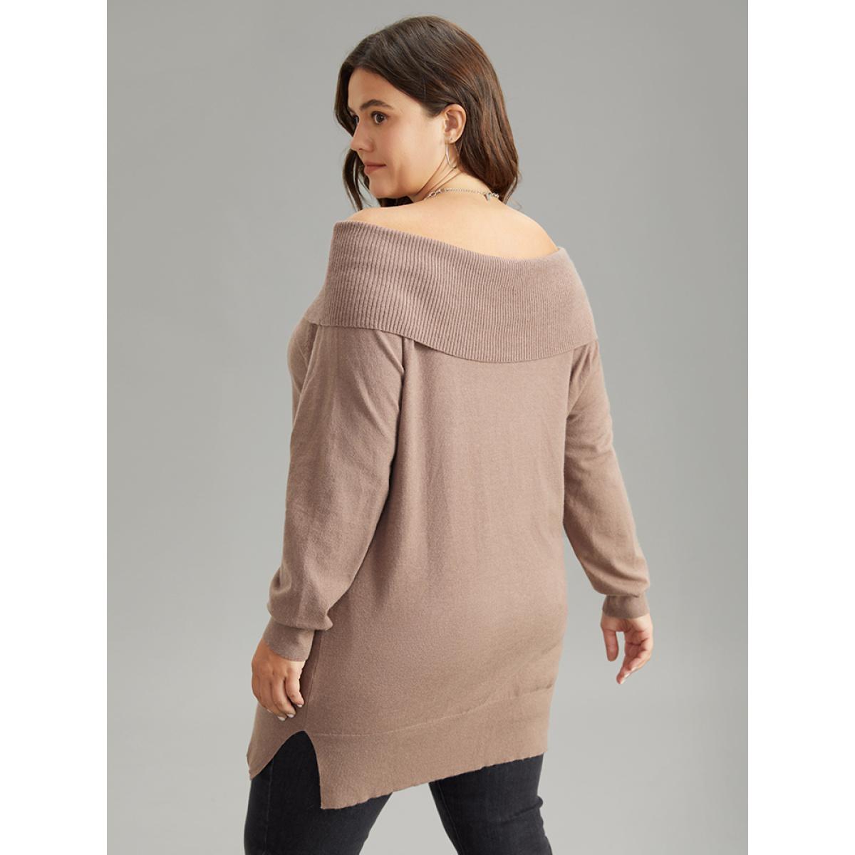 Plus Size Supersoft Essentials Anti-Pilling Off Shoulder Pullover Tan Women Casual Bodycon Long Sleeve One-shoulder neck Dailywear Pullovers BloomChic 30/6X