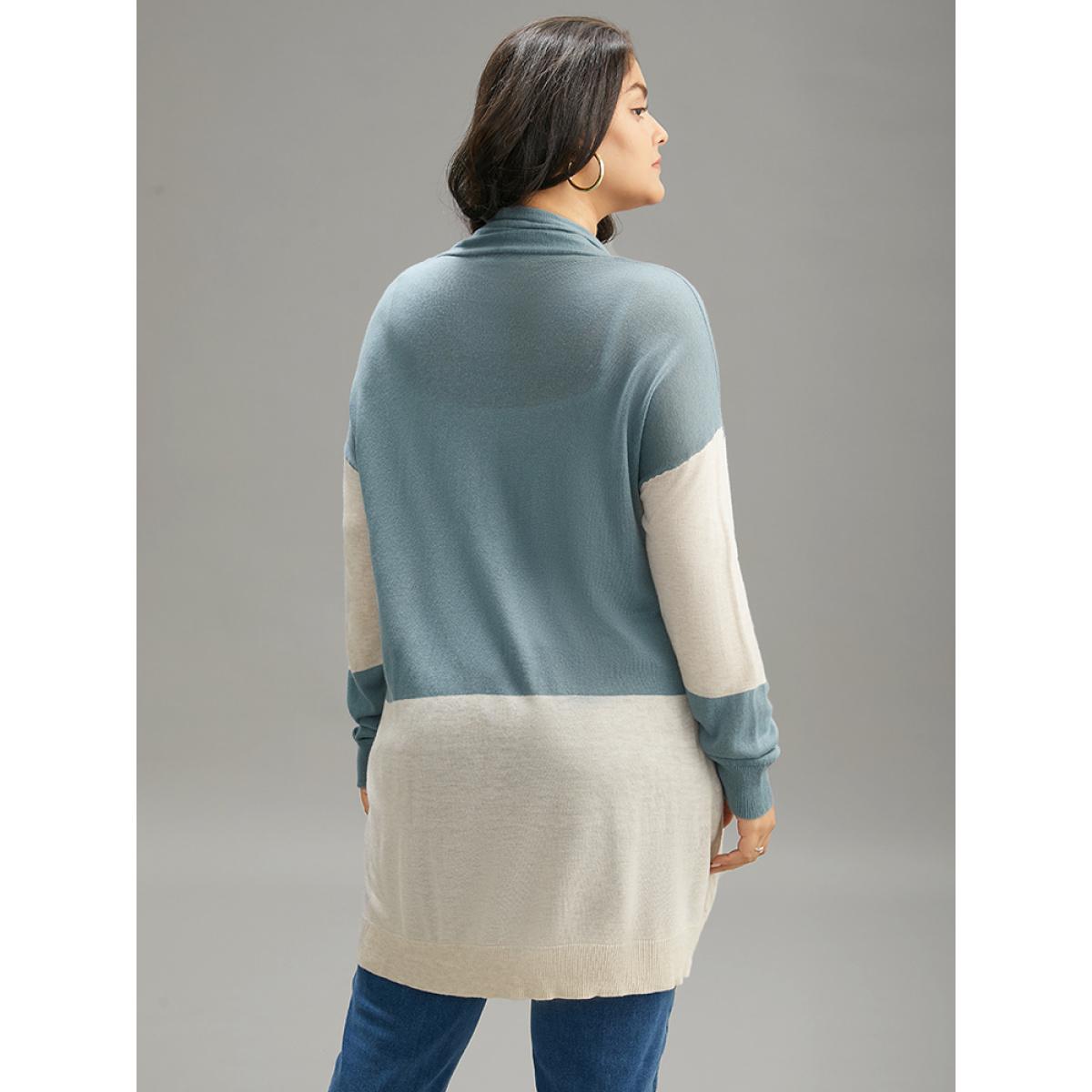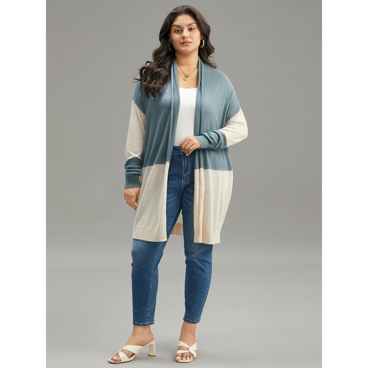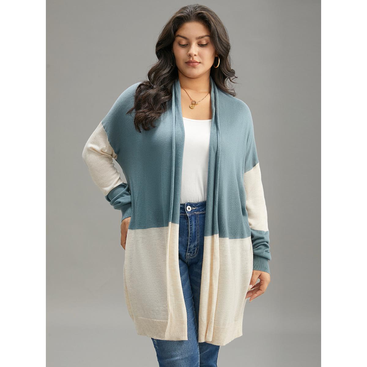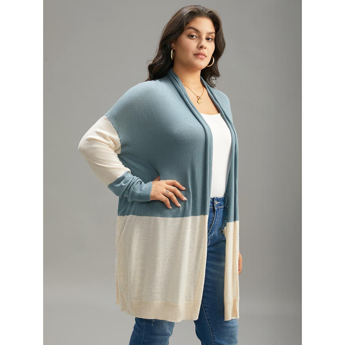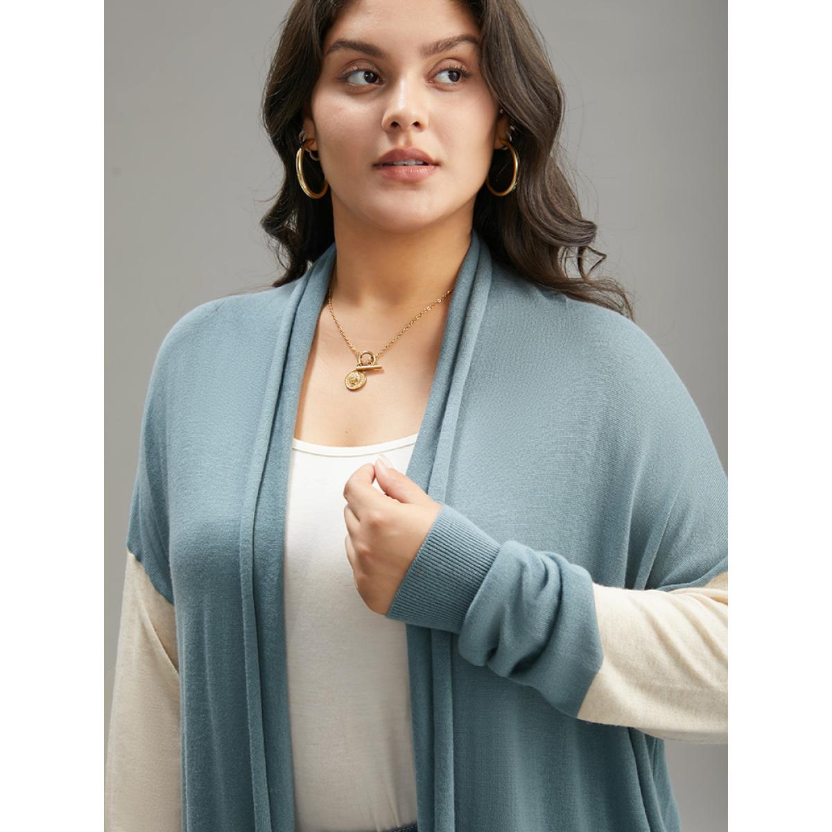 Plus Size Supersoft Essentials Colorblock Patchwork Drape Cardigan Teal Women Casual Loose Long Sleeve Dailywear Cardigans BloomChic 26/4X