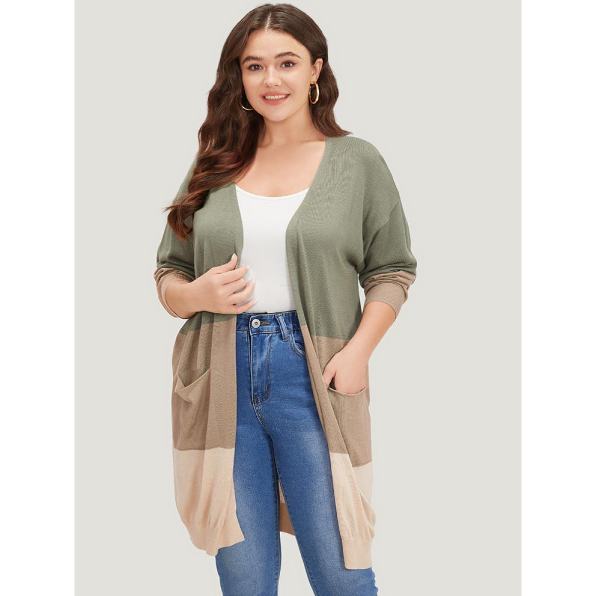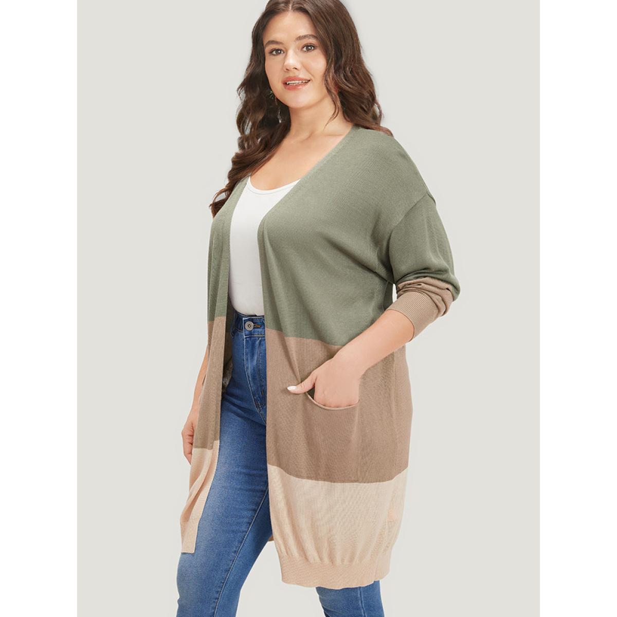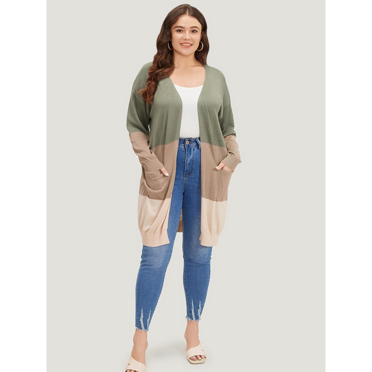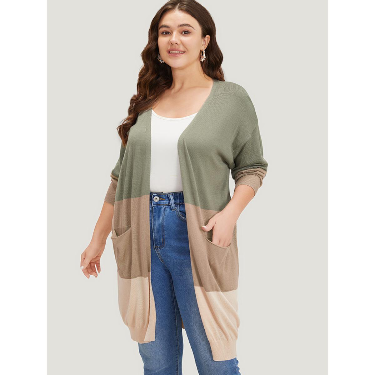 Plus Size Supersoft Essentials Colorblock Pocket Tunic Cardigan Sage Women Casual Loose Long Sleeve Everyday Cardigans BloomChic 14-16/1X