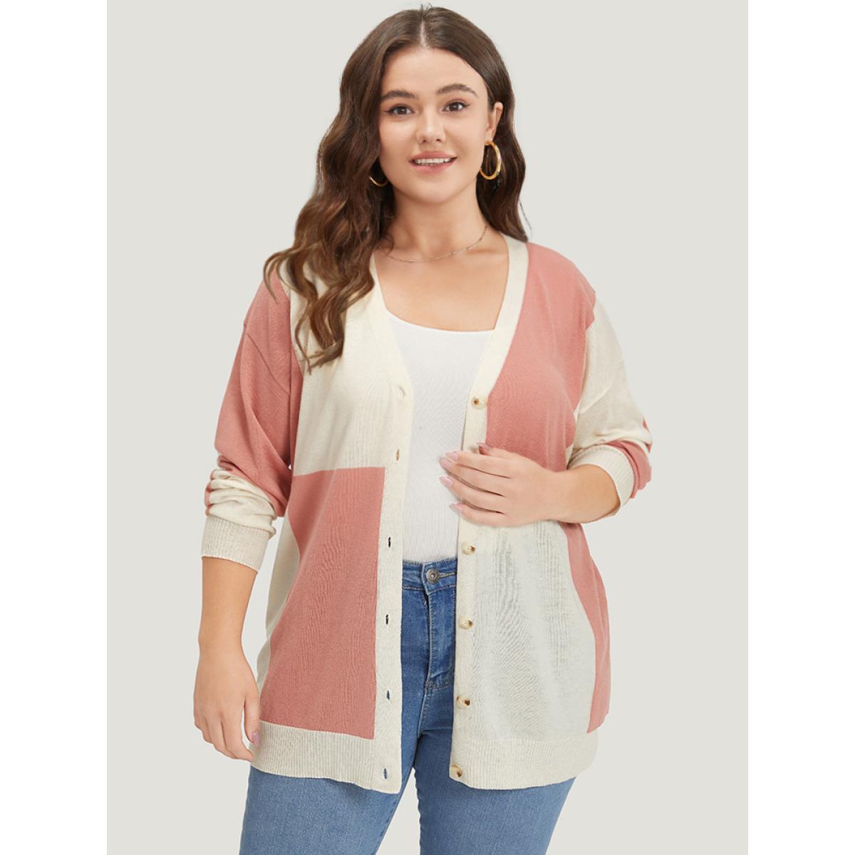 Plus Size Supersoft Essentials Colorblock Two Tone Button Up Cardigan Salmon Women Casual Loose Long Sleeve Everyday Cardigans BloomChic 22-24/3X