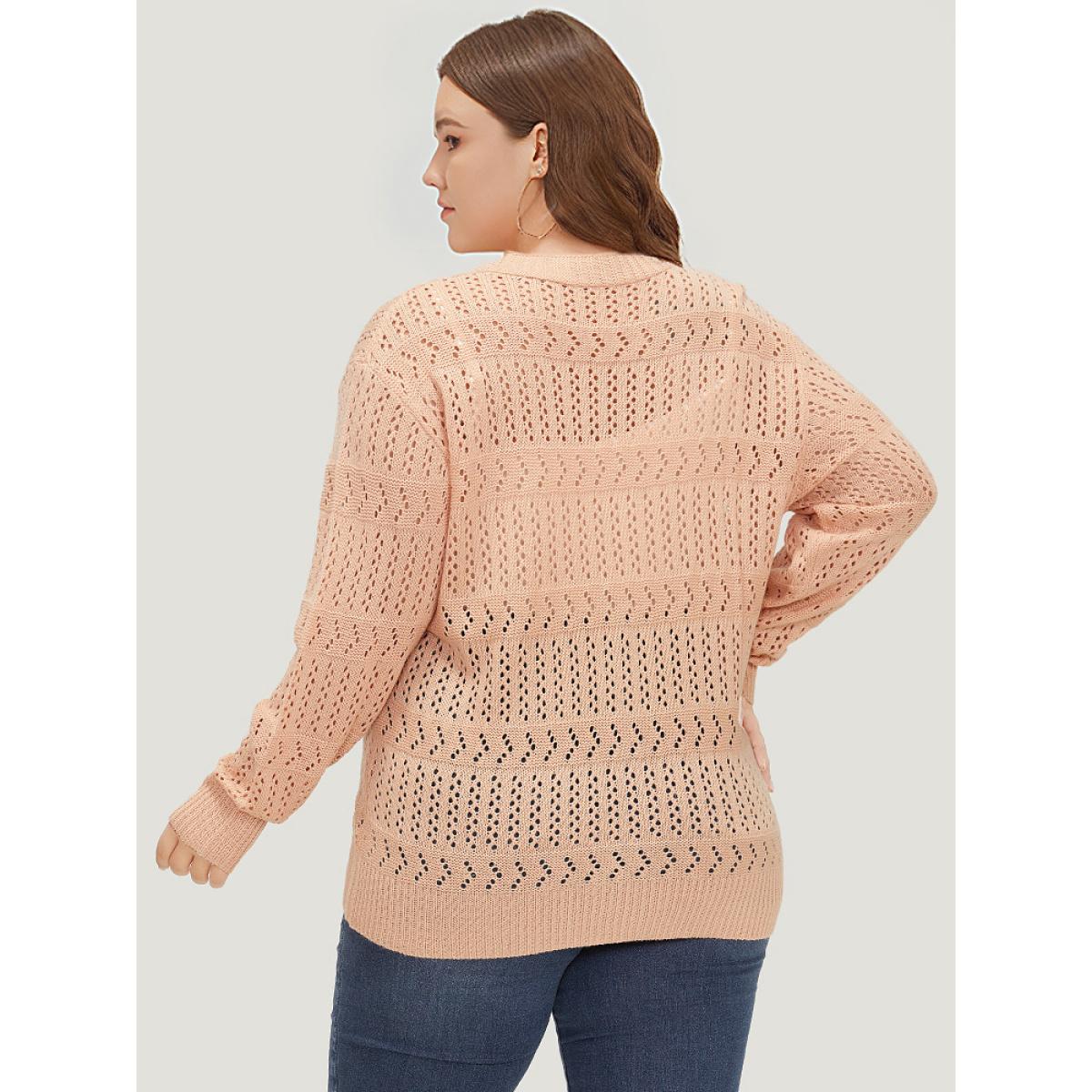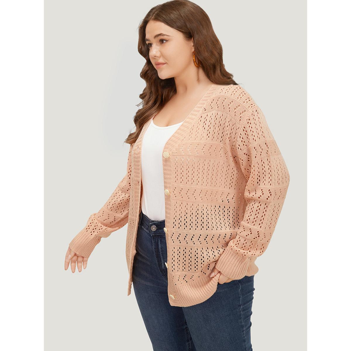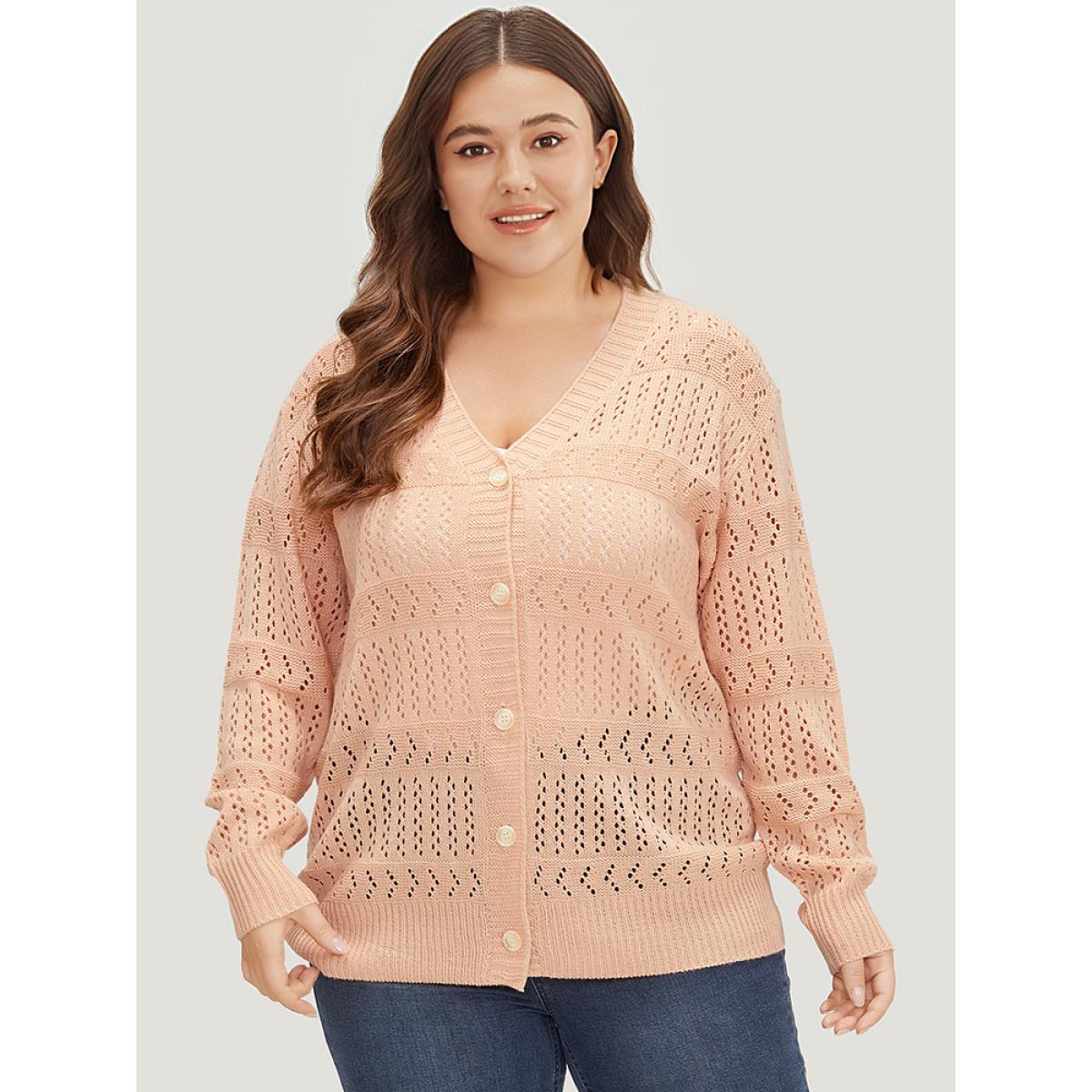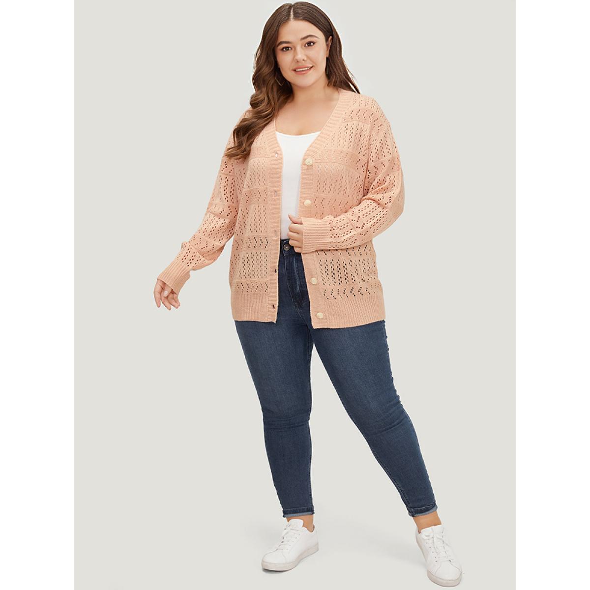 Plus Size Supersoft Essentials Geometric Eyelet Button Through Drop Shoulder Cardigan MistyRose Women Casual Bodycon Long Sleeve Everyday Cardigans BloomChic 18-20/2X