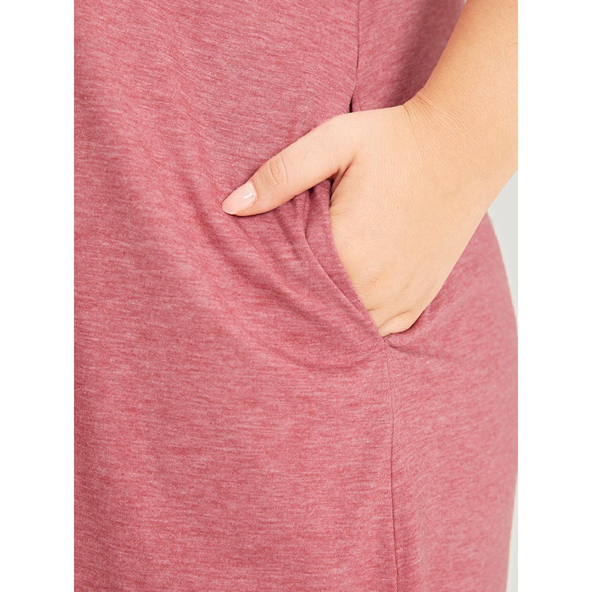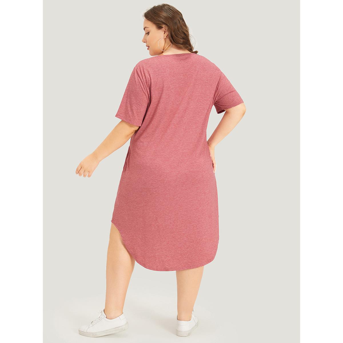 Plus Size Supersoft Essentials Letter & Floral Print V Neck Curved Hem Dress DustyPink Women Casual Plain Curvy Midi Dress BloomChic 28/5X Product Image