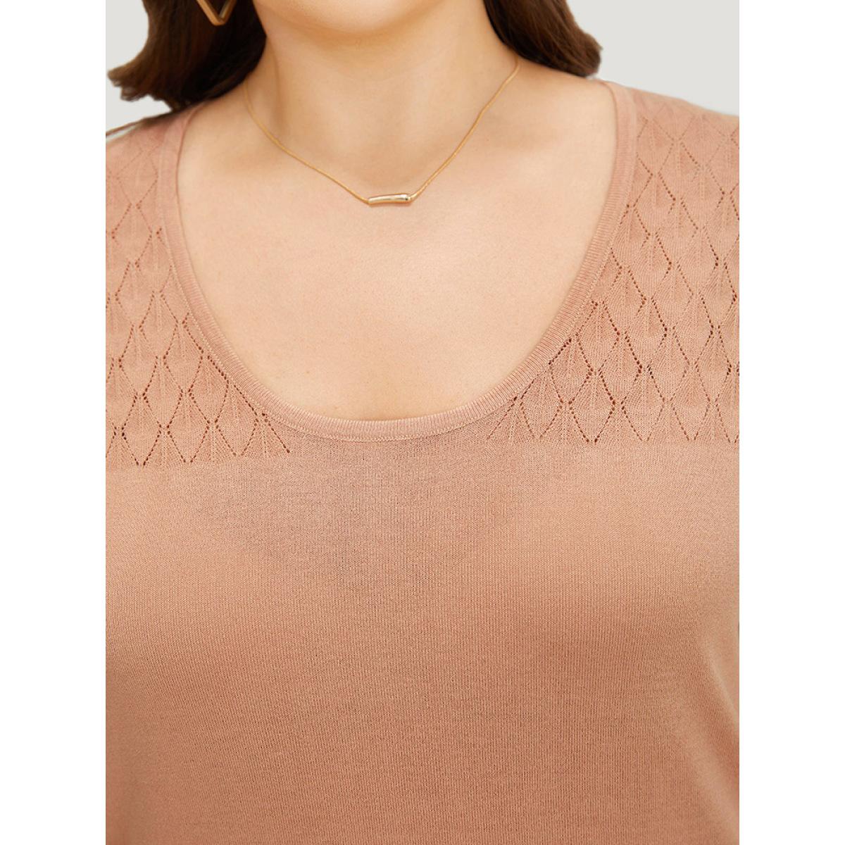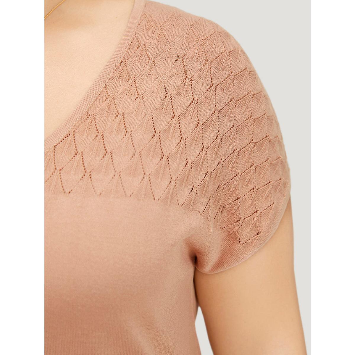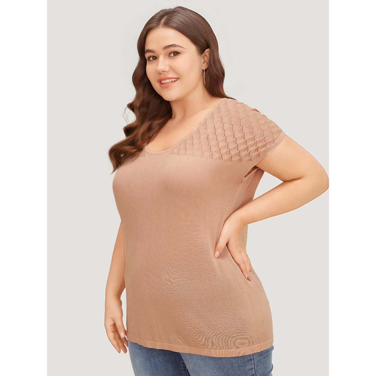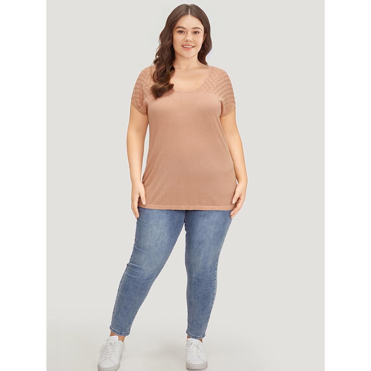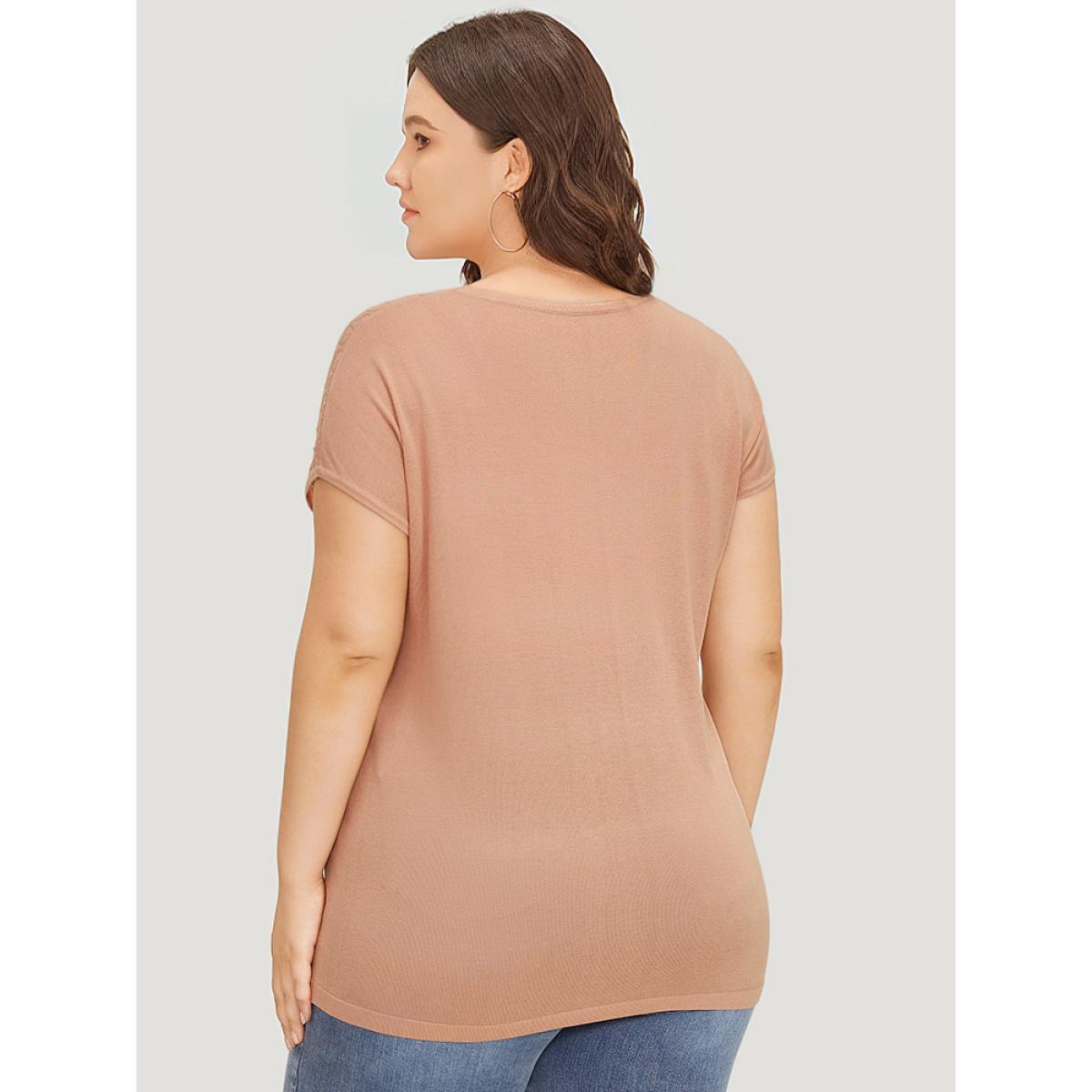 Plus Size Supersoft Essentials Plain Patchwork Batwing Sleeve Scoop Neck Pullover Salmon Women Casual Loose Short sleeve Scoop Neck Dailywear Pullovers BloomChic 12/L