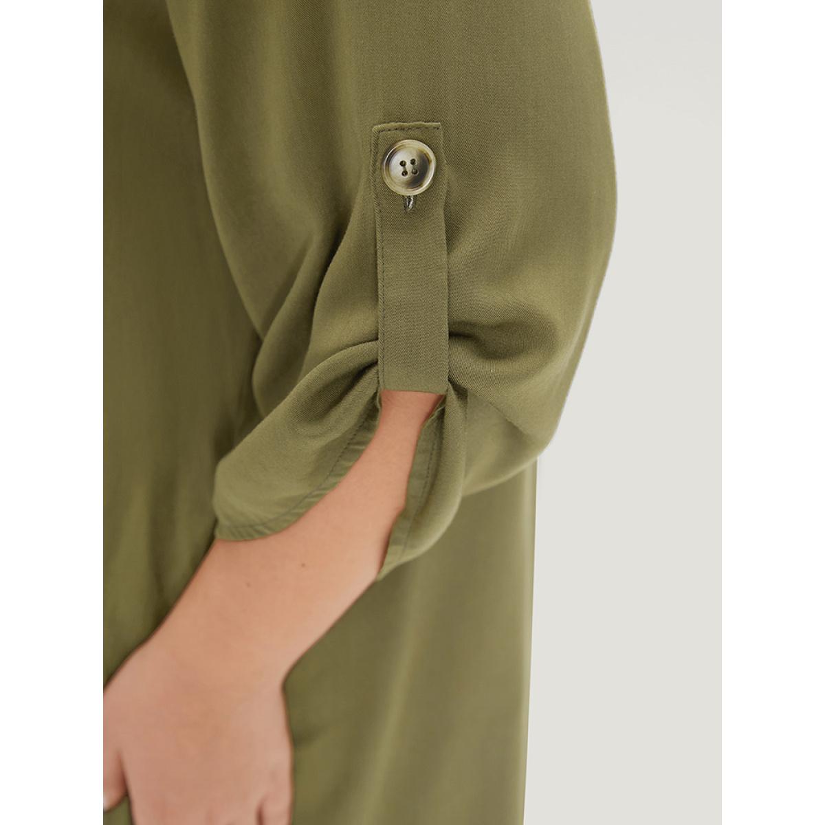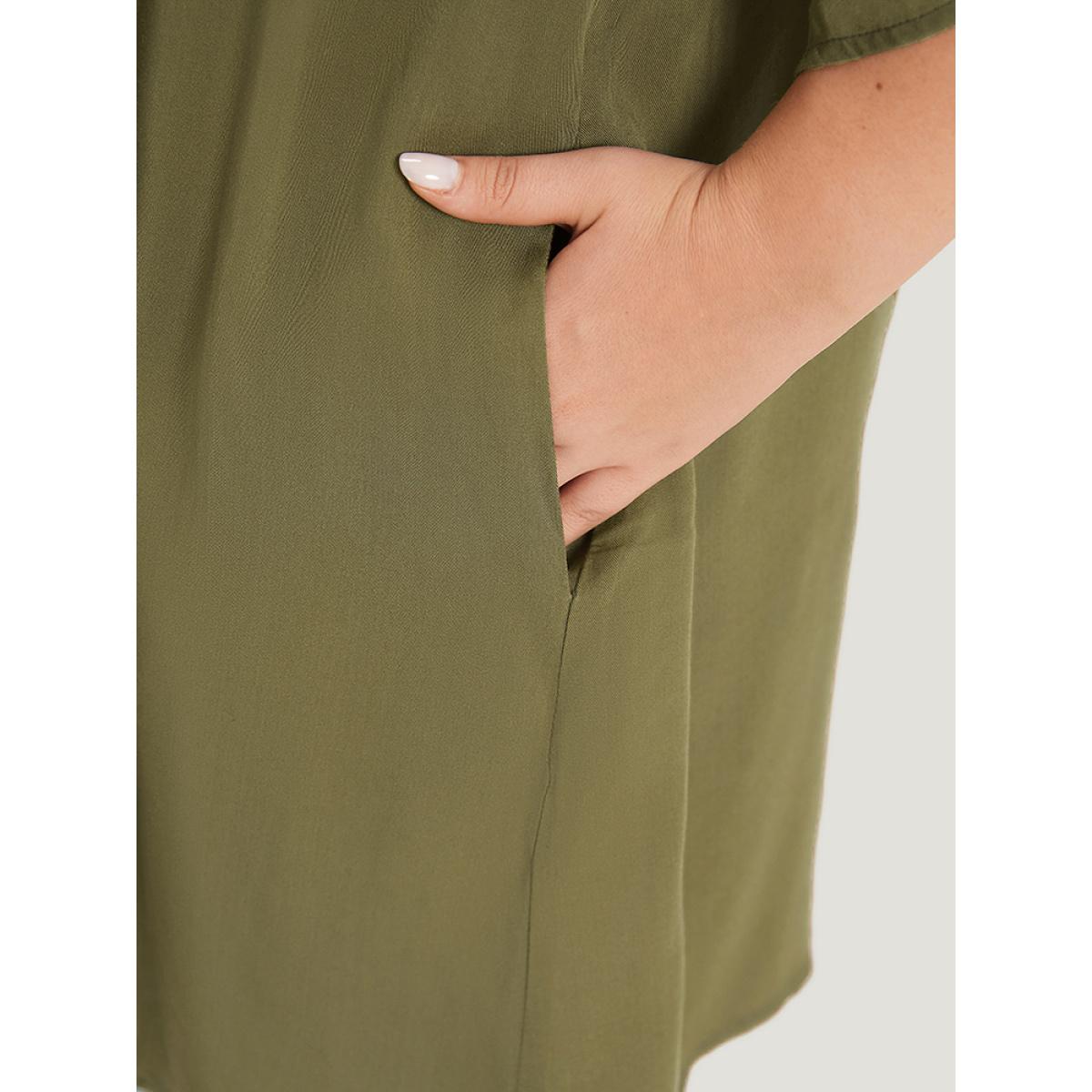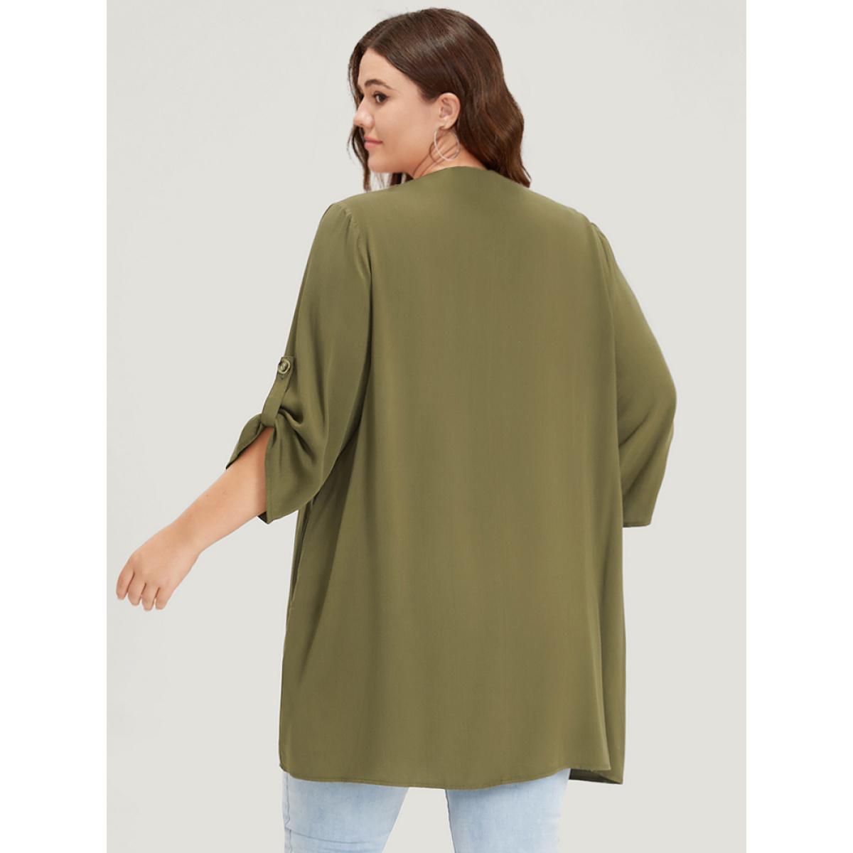 Plus Size Supersoft Essentials Plain Pocket Button Ruffle Open Front Kimono Women ArmyGreen Casual Plain Loose Pocket Dailywear Kimonos BloomChic 22-24/3X