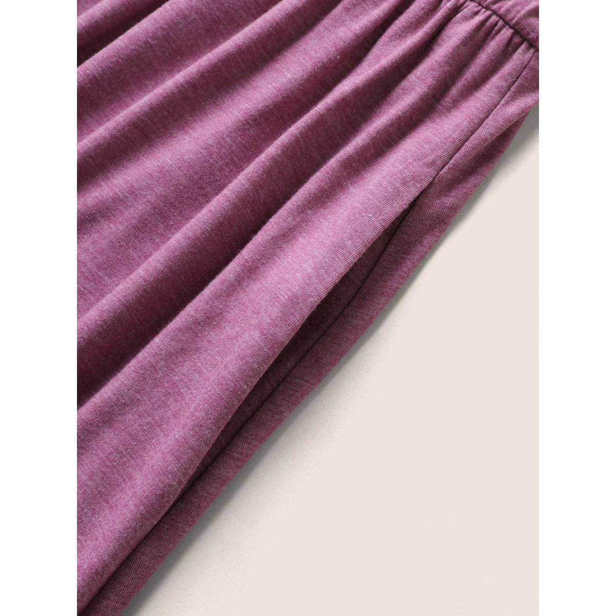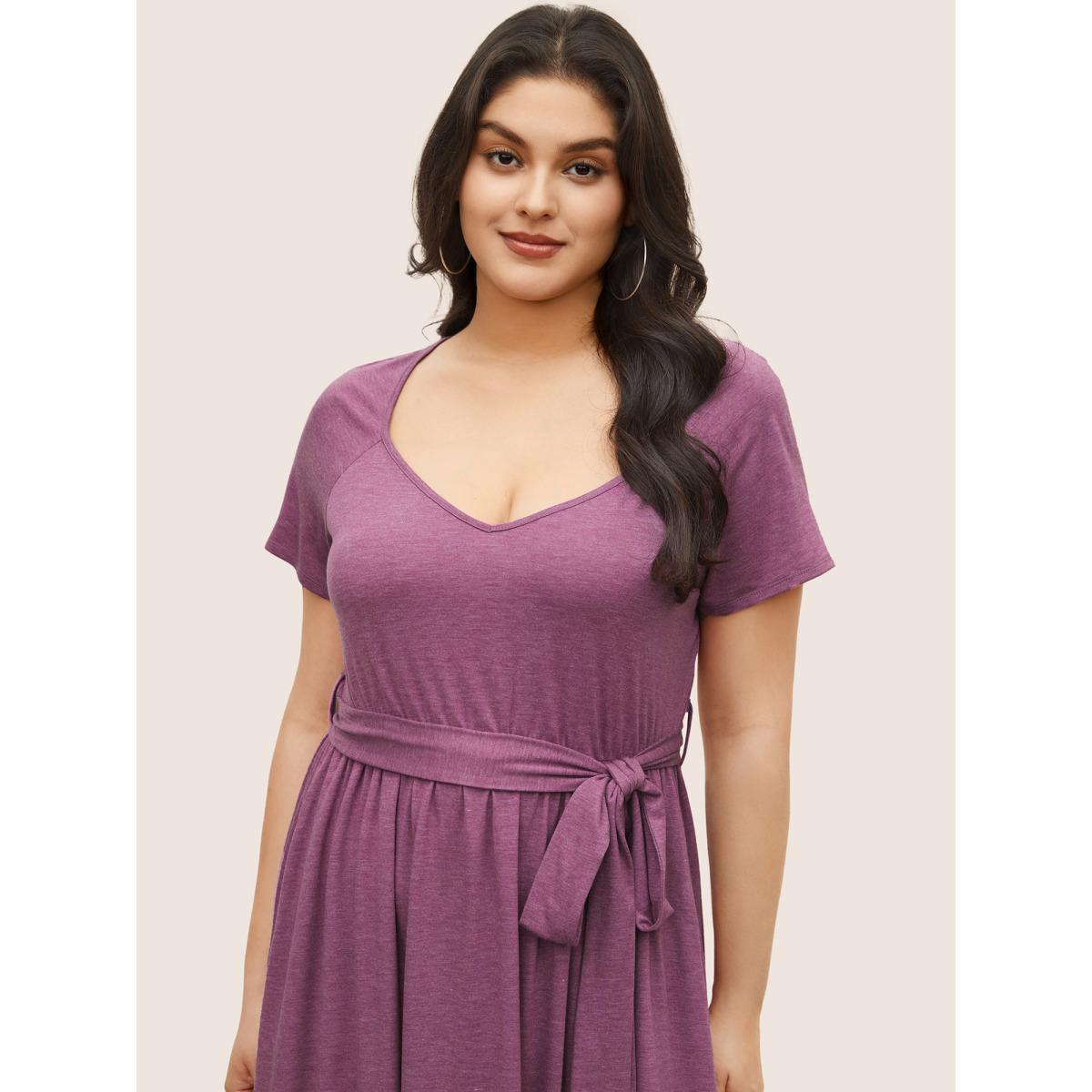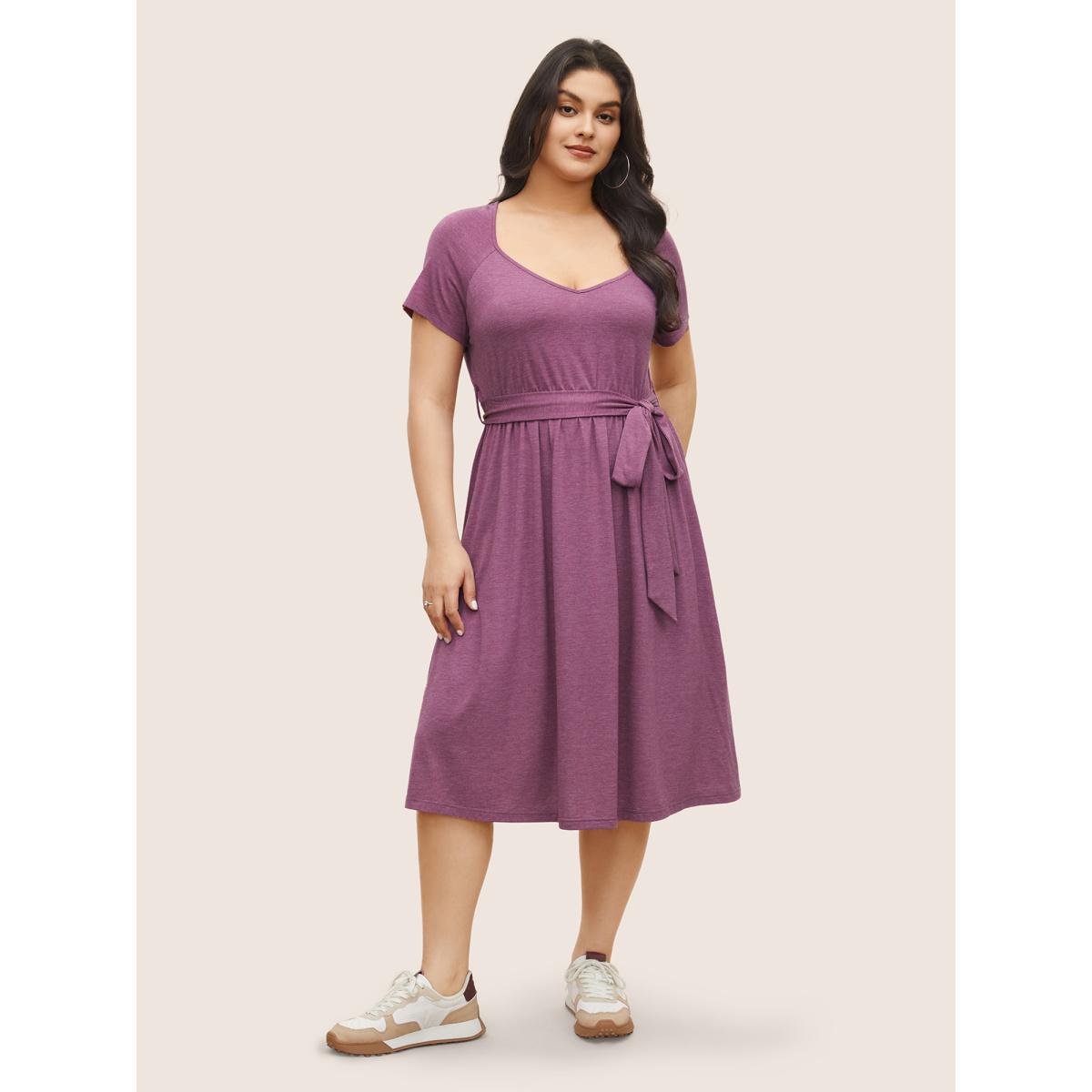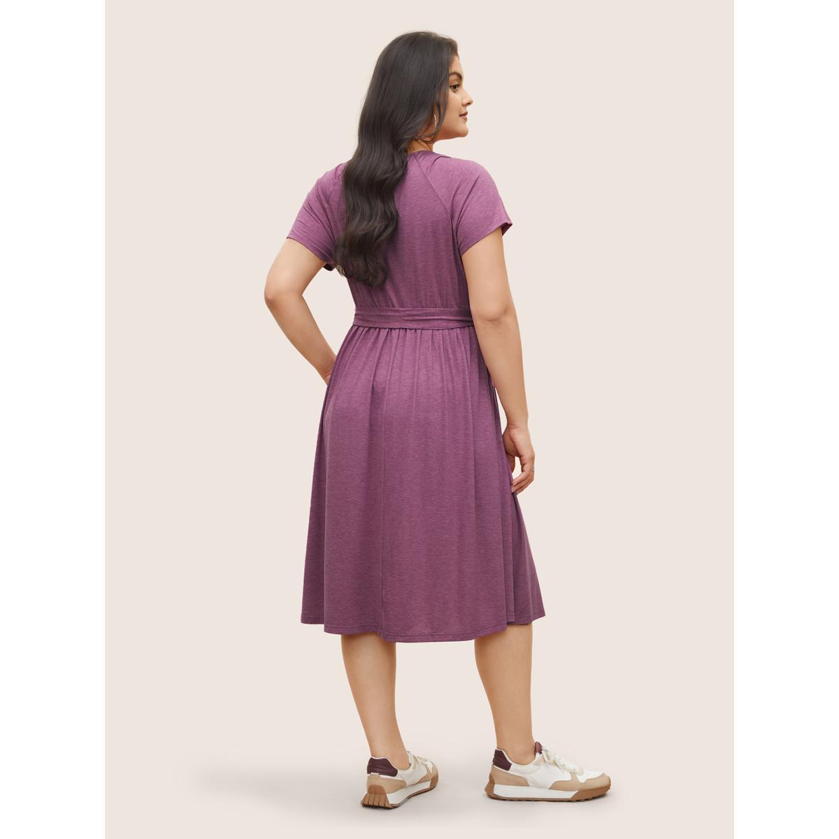 Plus Size Supersoft Essentials Plain Raglan Sleeve Belted Dress Lilac Women Basics Non Square Neck Short sleeve Curvy Midi Dress BloomChic 14-16/1X