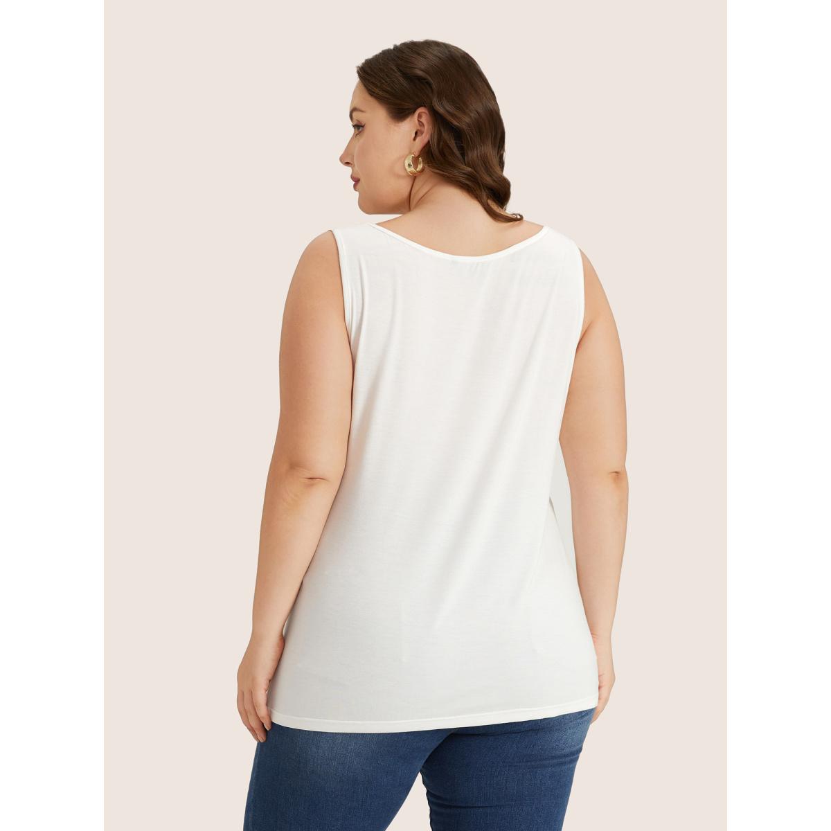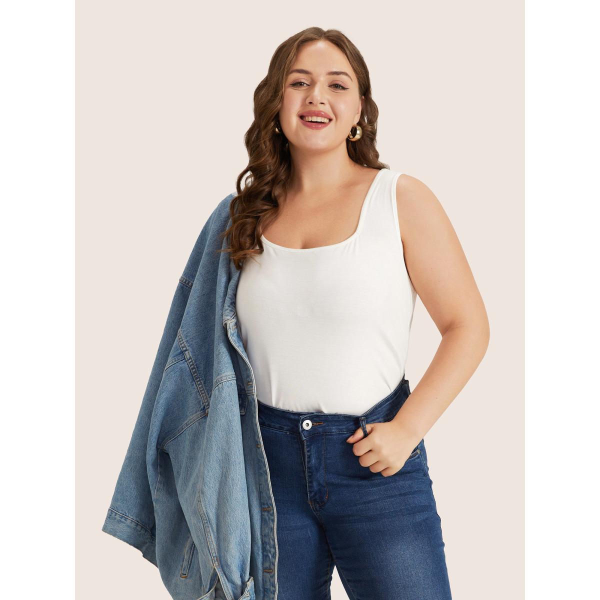 Plus Size Supersoft Essentials Plain Square Neck Skinny Tank Top Women White Basics Non Square Neck Everyday Tank Tops Camis BloomChic 10/M