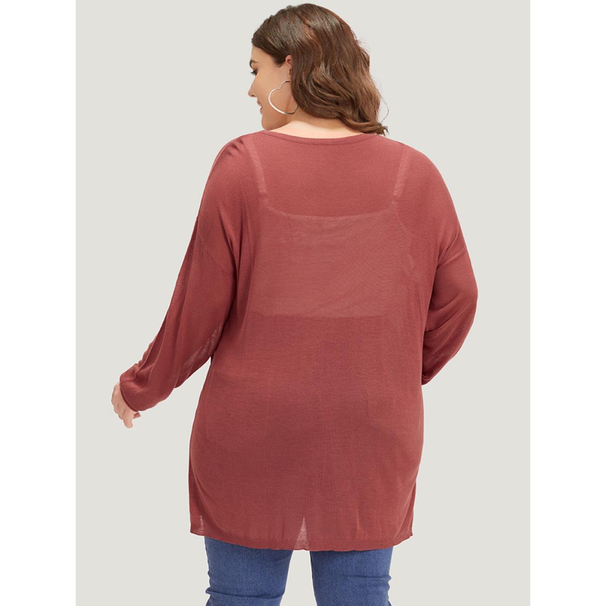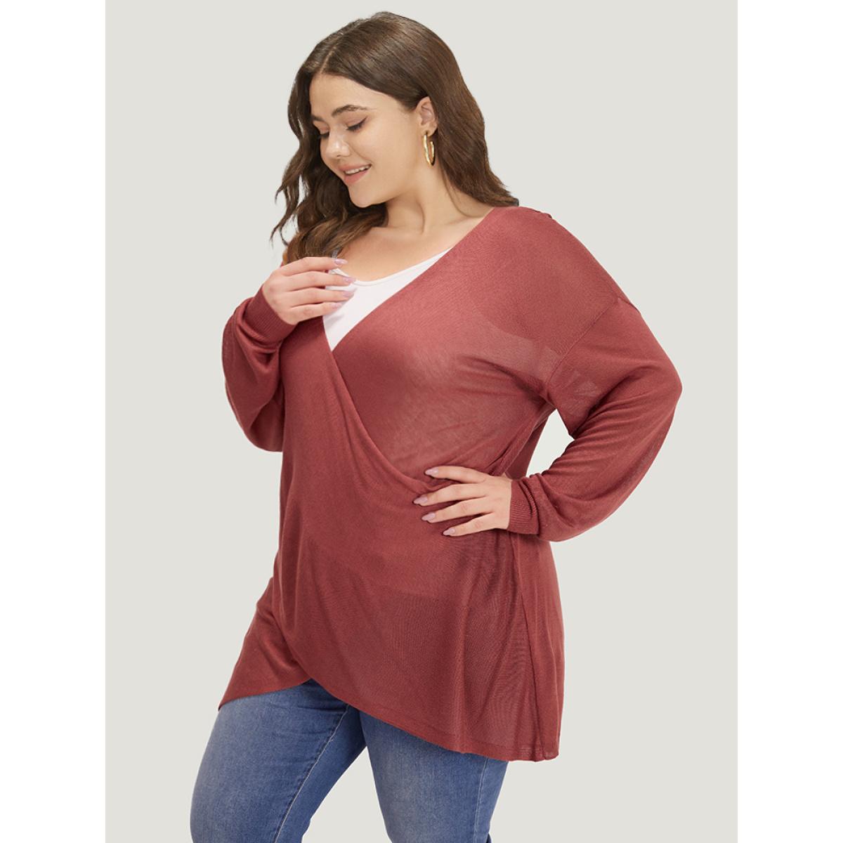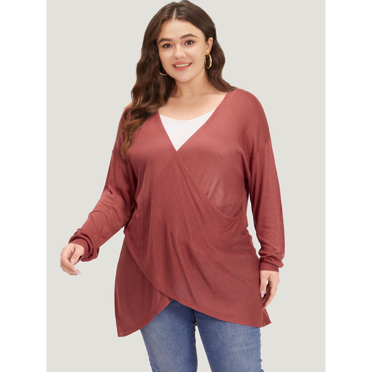 Plus Size Supersoft Essentials Solid Crossover Elastic Cuffs Pullover Russet Women Casual Loose Long Sleeve V-neck Everyday Pullovers BloomChic 10/M
