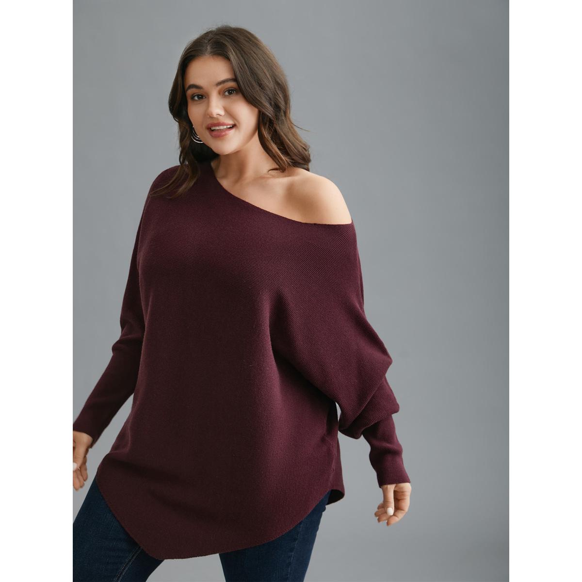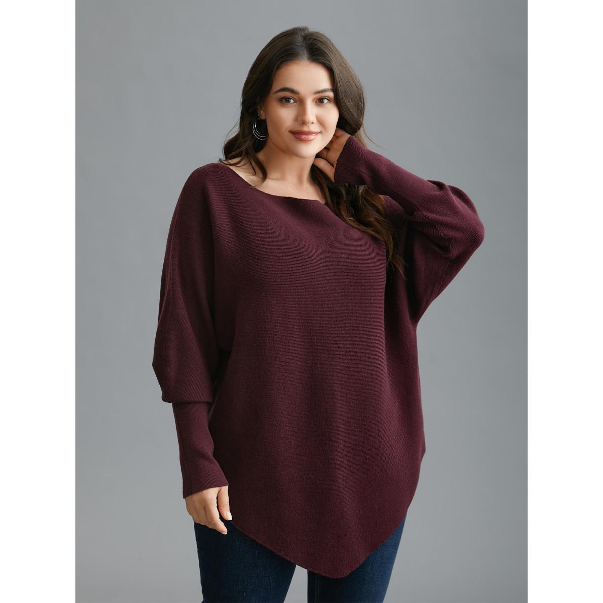 Plus Size Supersoft Essentials Solid Dolman Sleeve Pullover Deepred Women Casual Loose Long Sleeve Boat Neck Everyday Pullovers BloomChic 14-16/1X