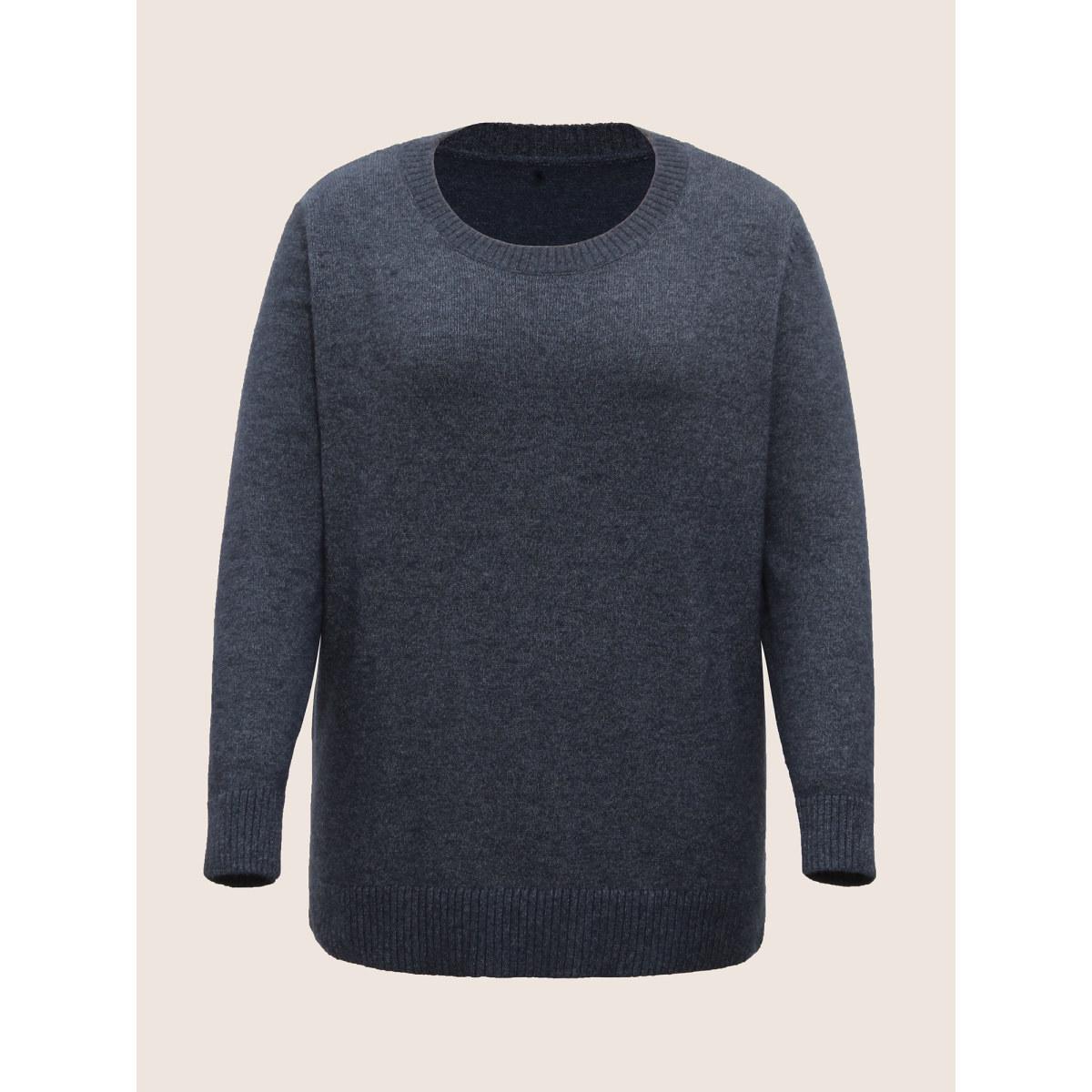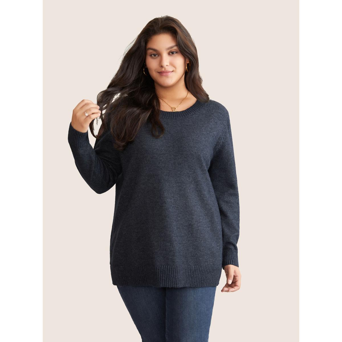Plus Size Supersoft Essentials Solid Heather Twist Back Pullover Midnight Women Casual Long Sleeve Round Neck Everyday Pullovers BloomChic 28/5X