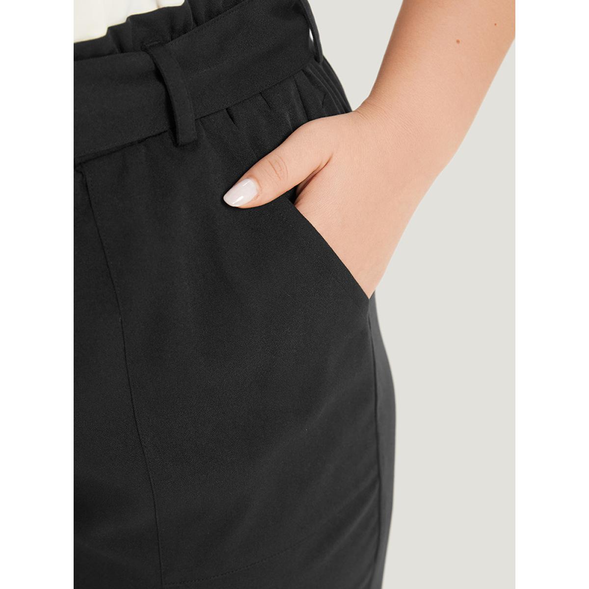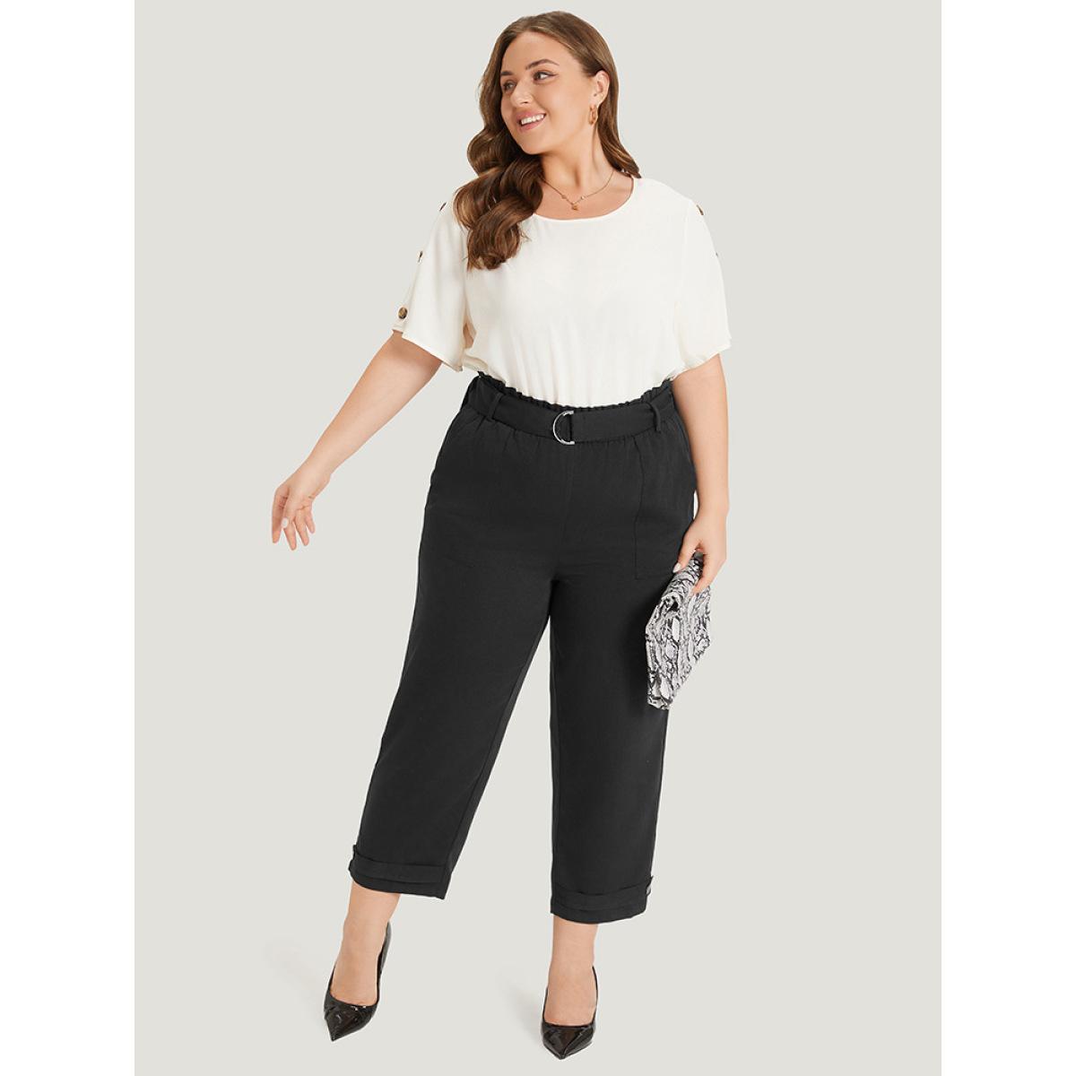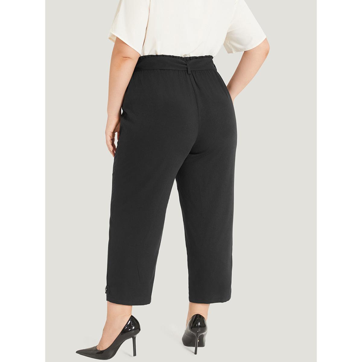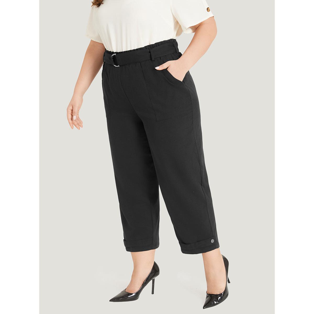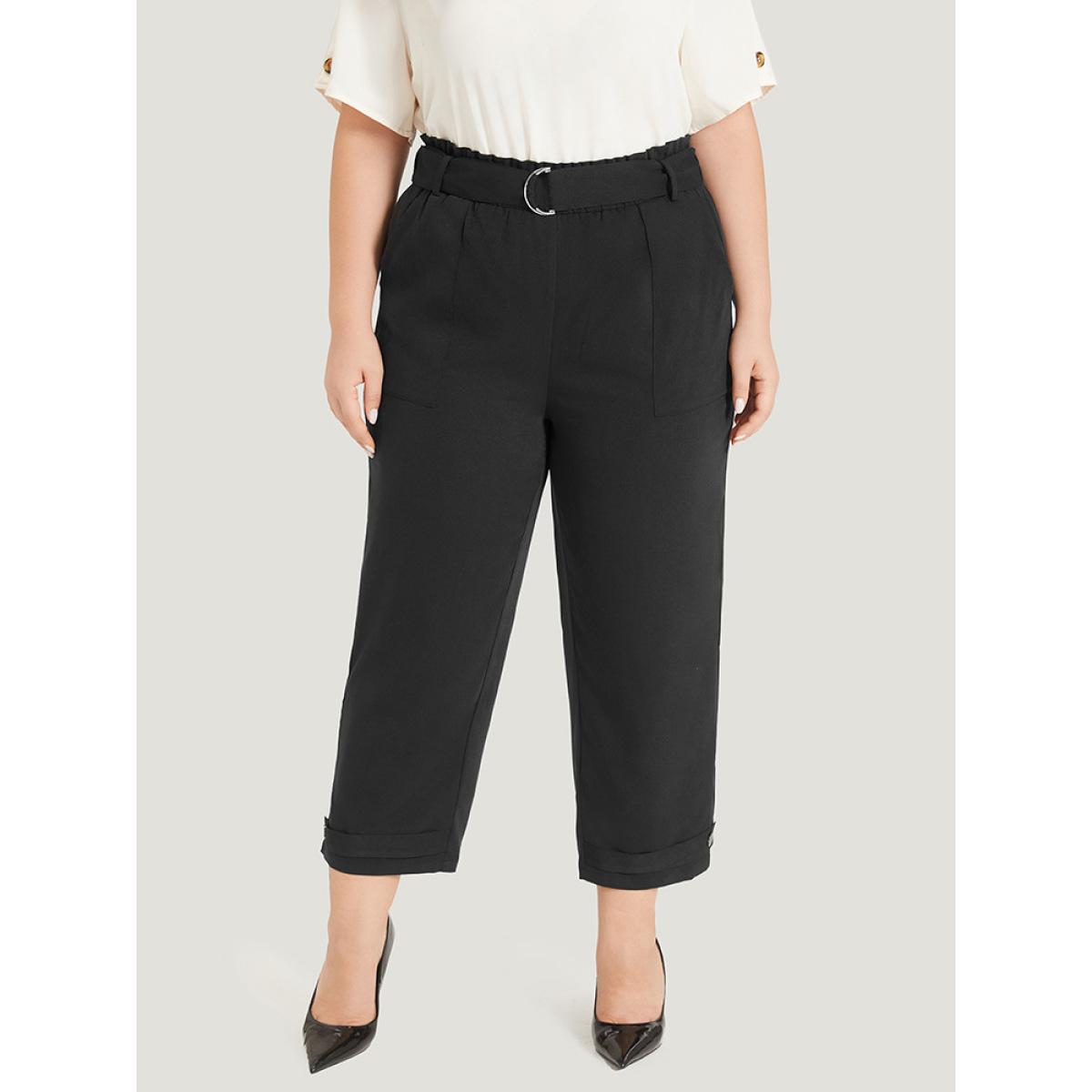 Plus Size Supersoft Essentials Solid Pocket Buckle Detail Pants Women Black Office Straight Leg High Rise Work Pants BloomChic 30/6X
