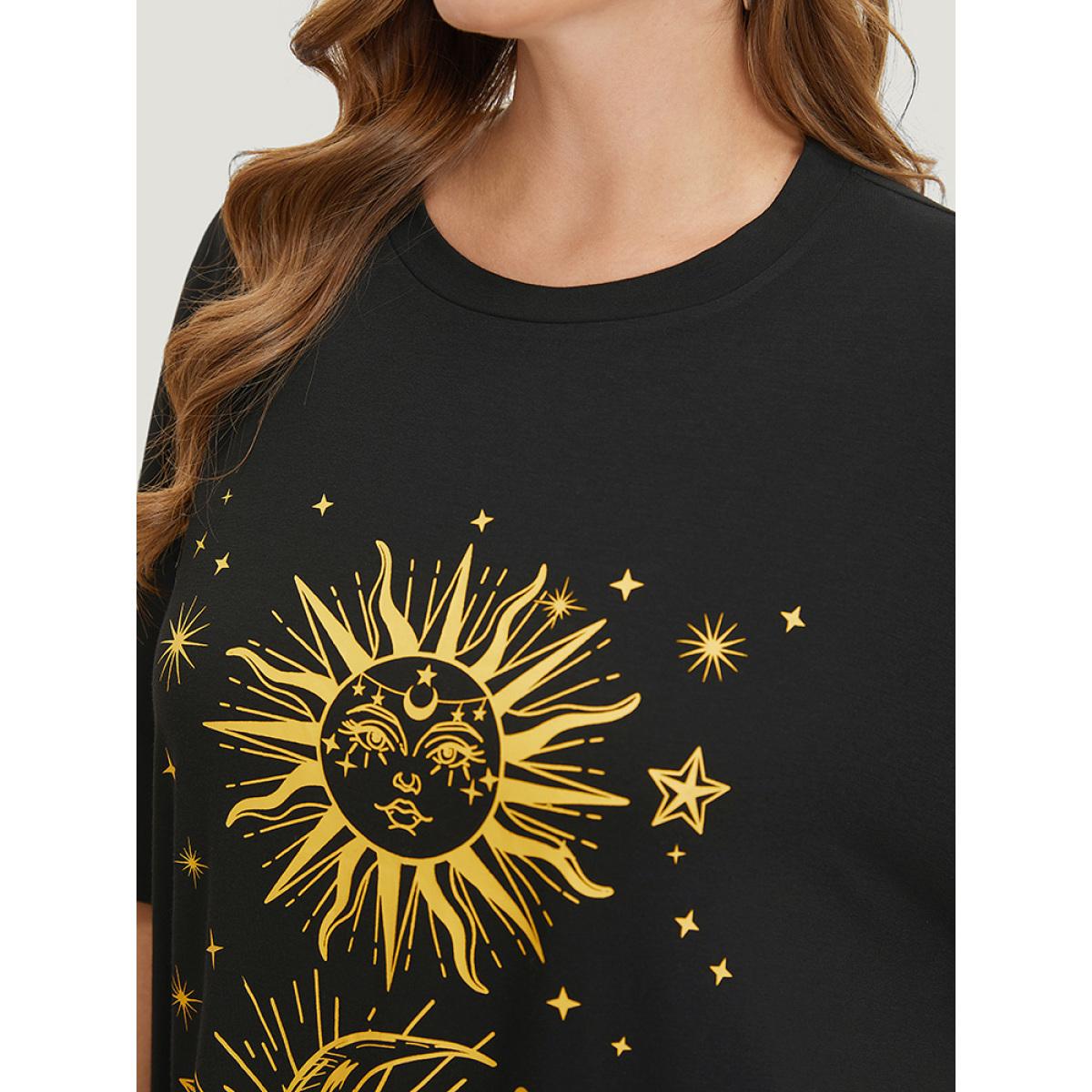 Plus Size Supersoft Essentials Star & Moon Print Pocket Crew Neck Dress Black Women Casual Plain Curvy Knee Dress BloomChic 12/L Product Image