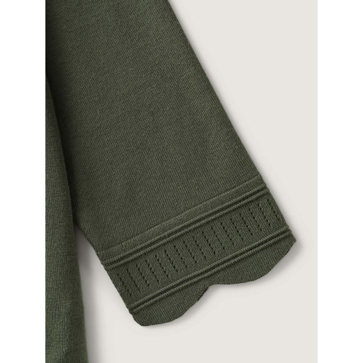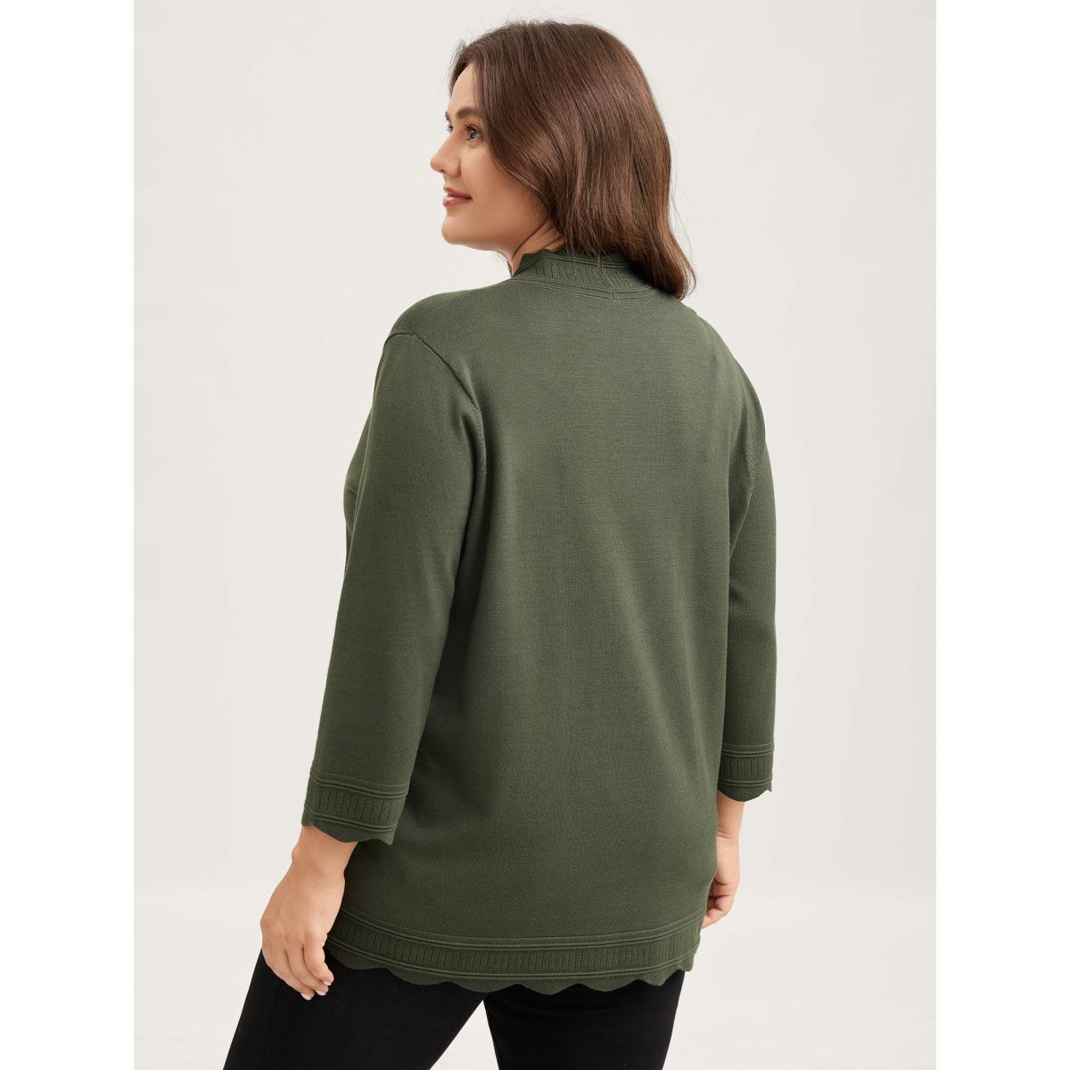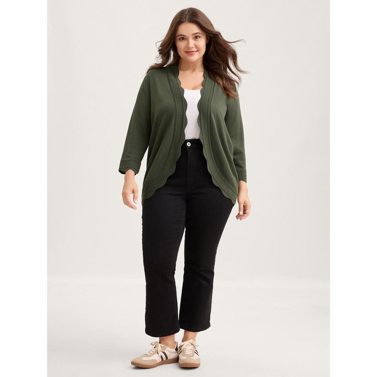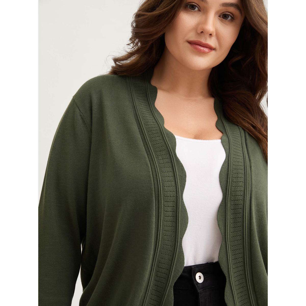 Plus Size Supersoft Scalloped Trim Three-Quarter Sleeve Cardigan Moss Women Leisure Loose Elbow-length sleeve Casual Cardigans BloomChic 12/L
