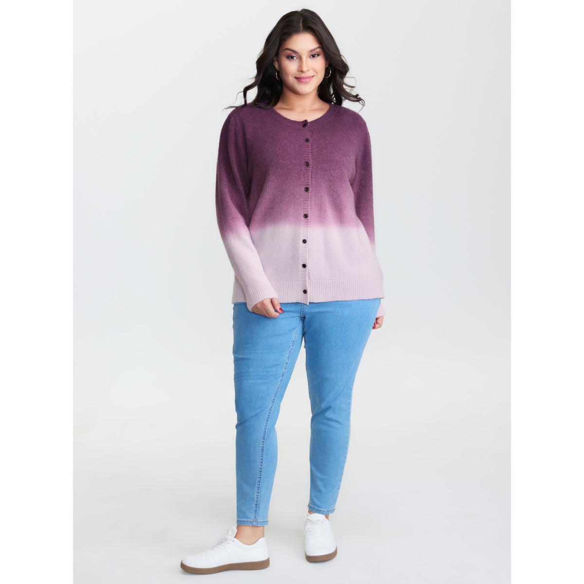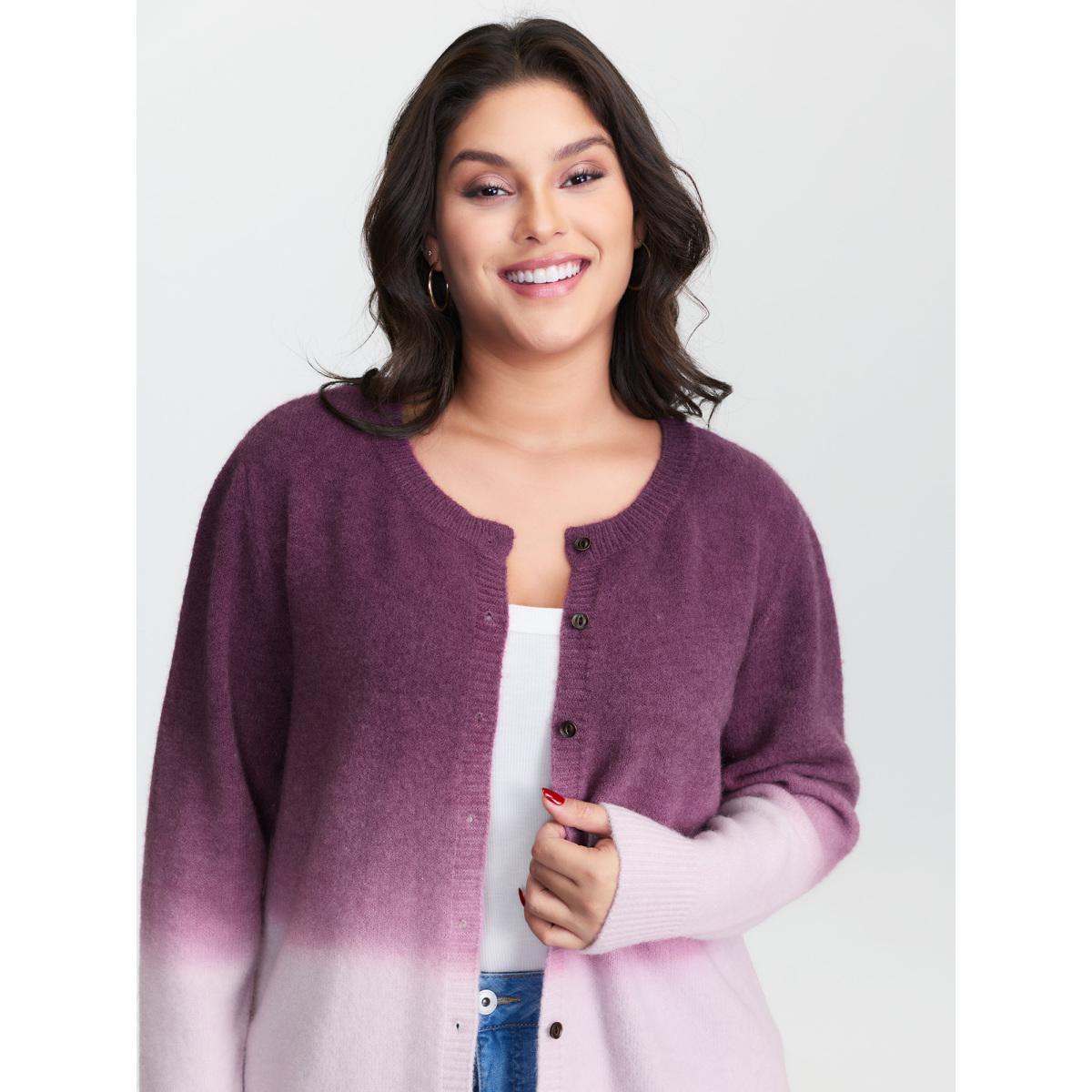 Plus Size Supersoft Stretchy Color Gradient Knit Cardigan RedViolet Women Playful Loose Long Sleeve Casual Cardigans BloomChic 12/L