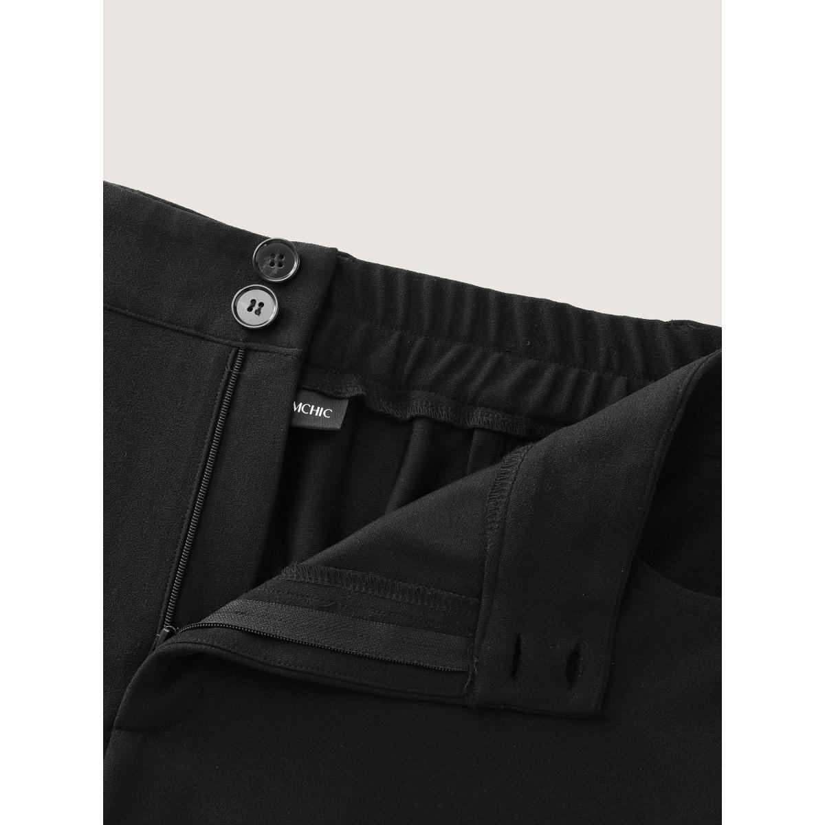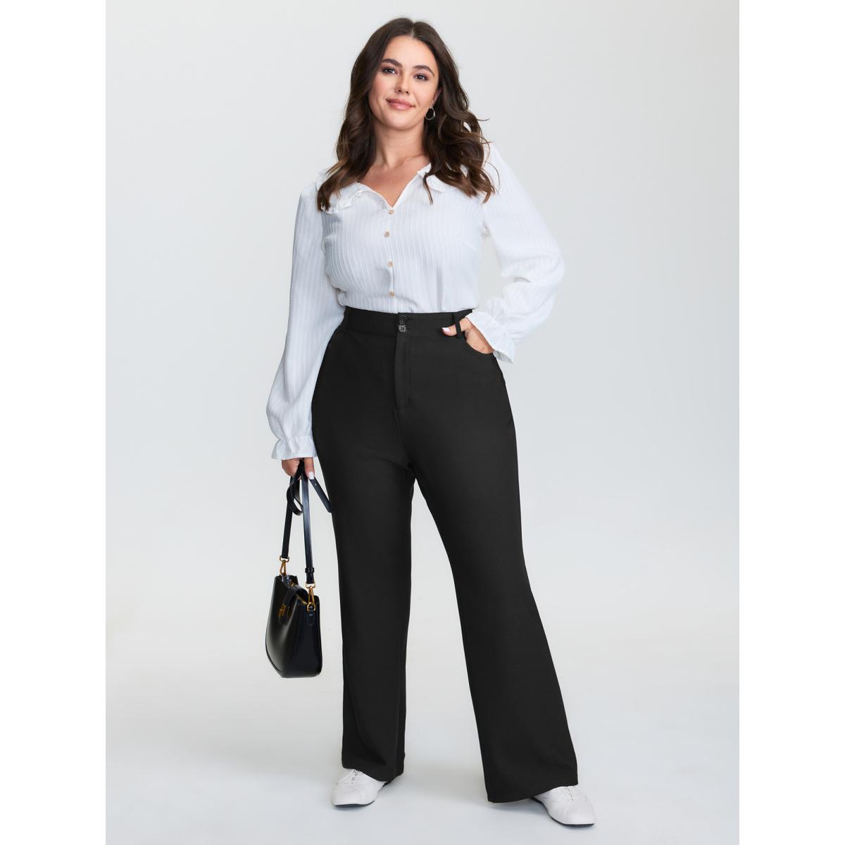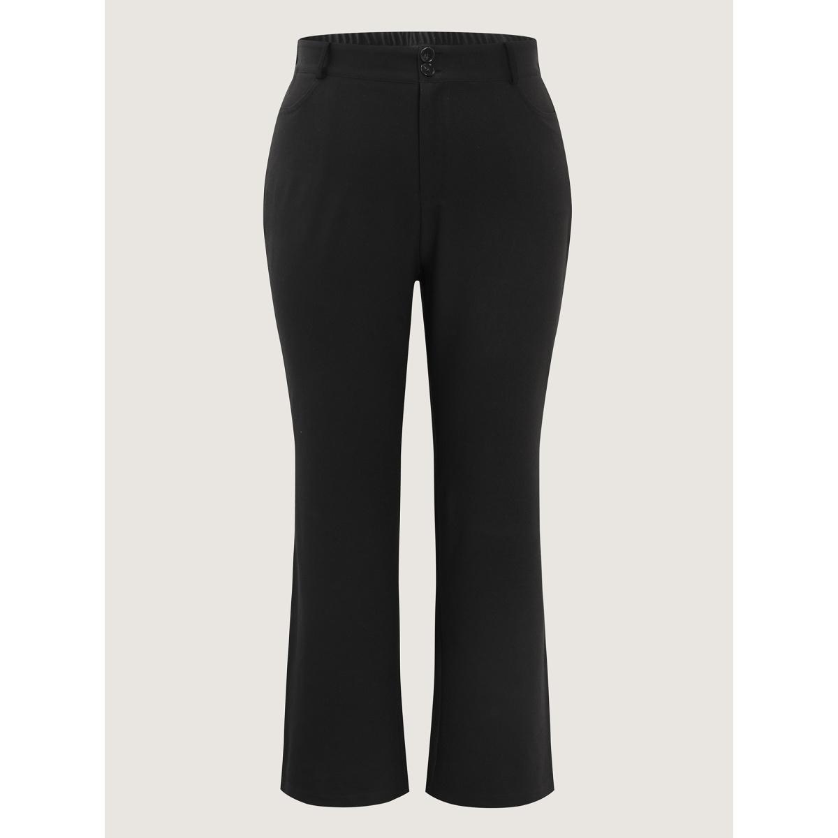 Plus Size Stretchy Woven Button Detail Bootcut Pants Women Black At the Office Bootcut Mid Rise Office Pants BloomChic 26/4X