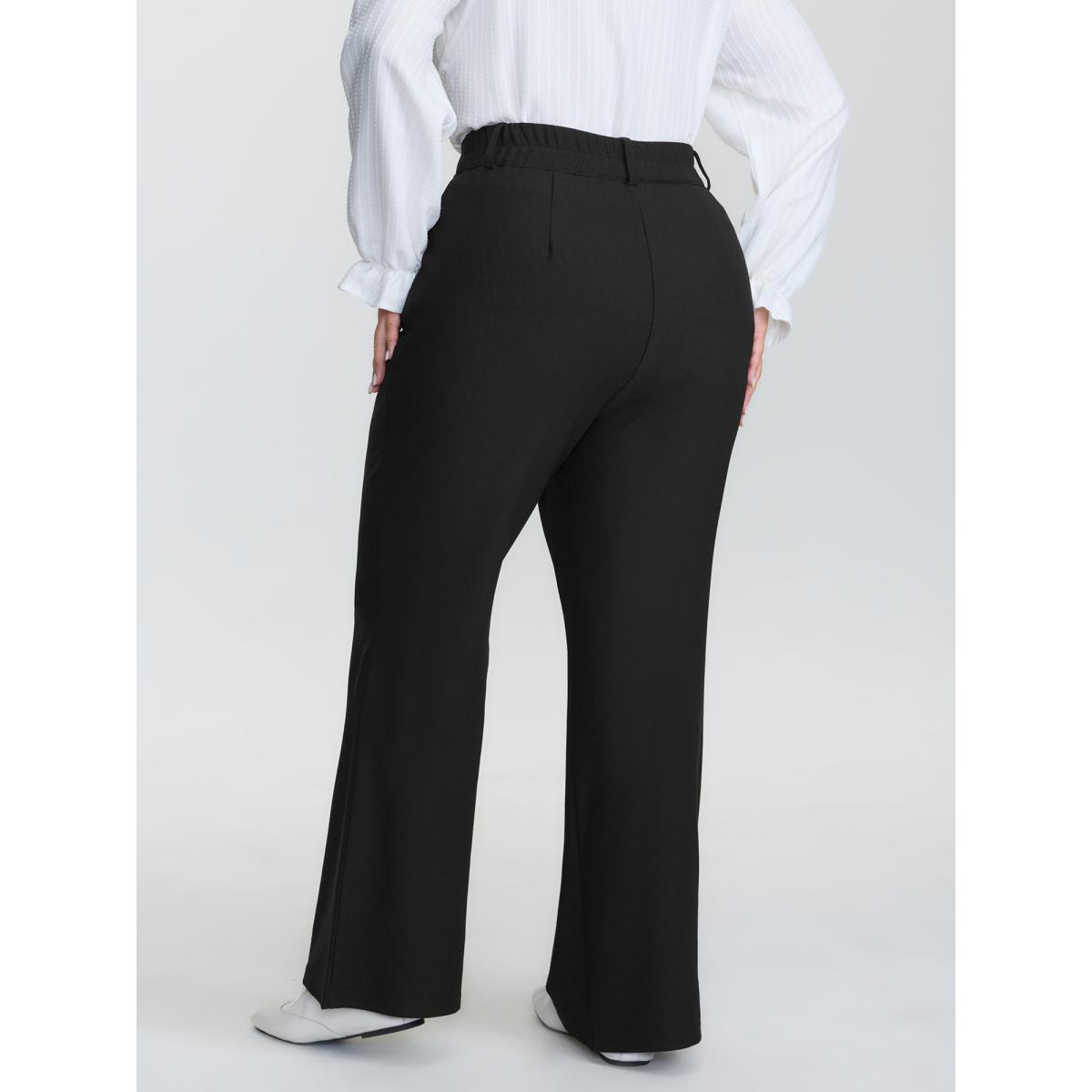 Plus Size High Rise Solid Pleated Bootcut Pants Women Black Work From Home Bootcut High Rise Work Pants BloomChic 28/5X