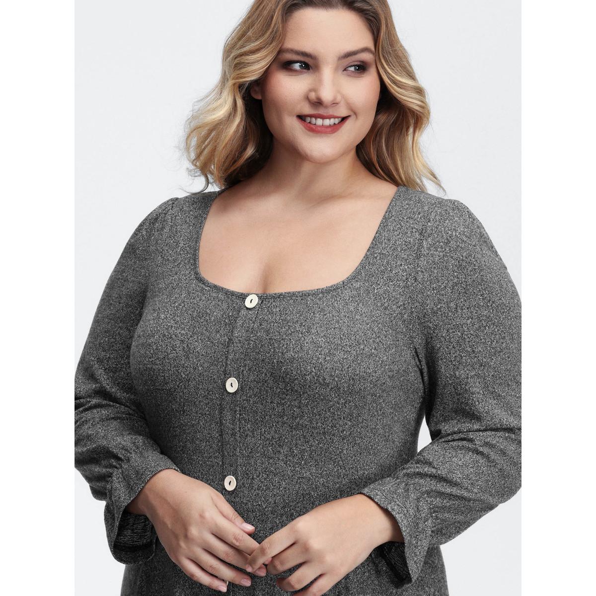 Plus Size Supersoft Stretchy Waist-Defining Knit Midi Dress DimGray Women Leisure Knit Dresses Bloomchic 22-24/3X