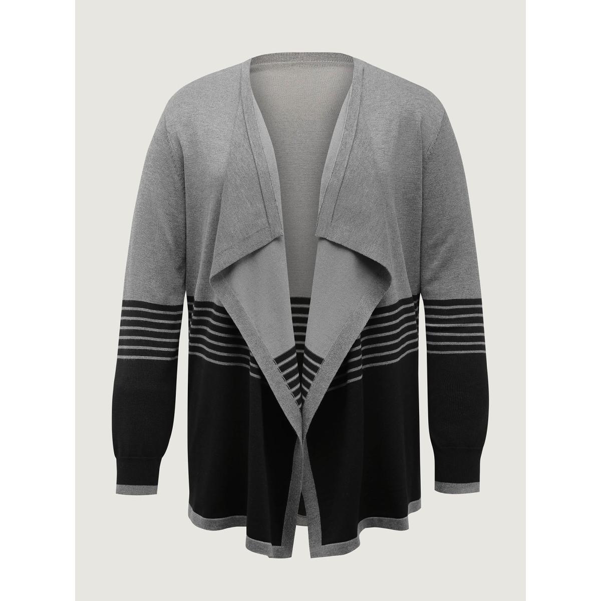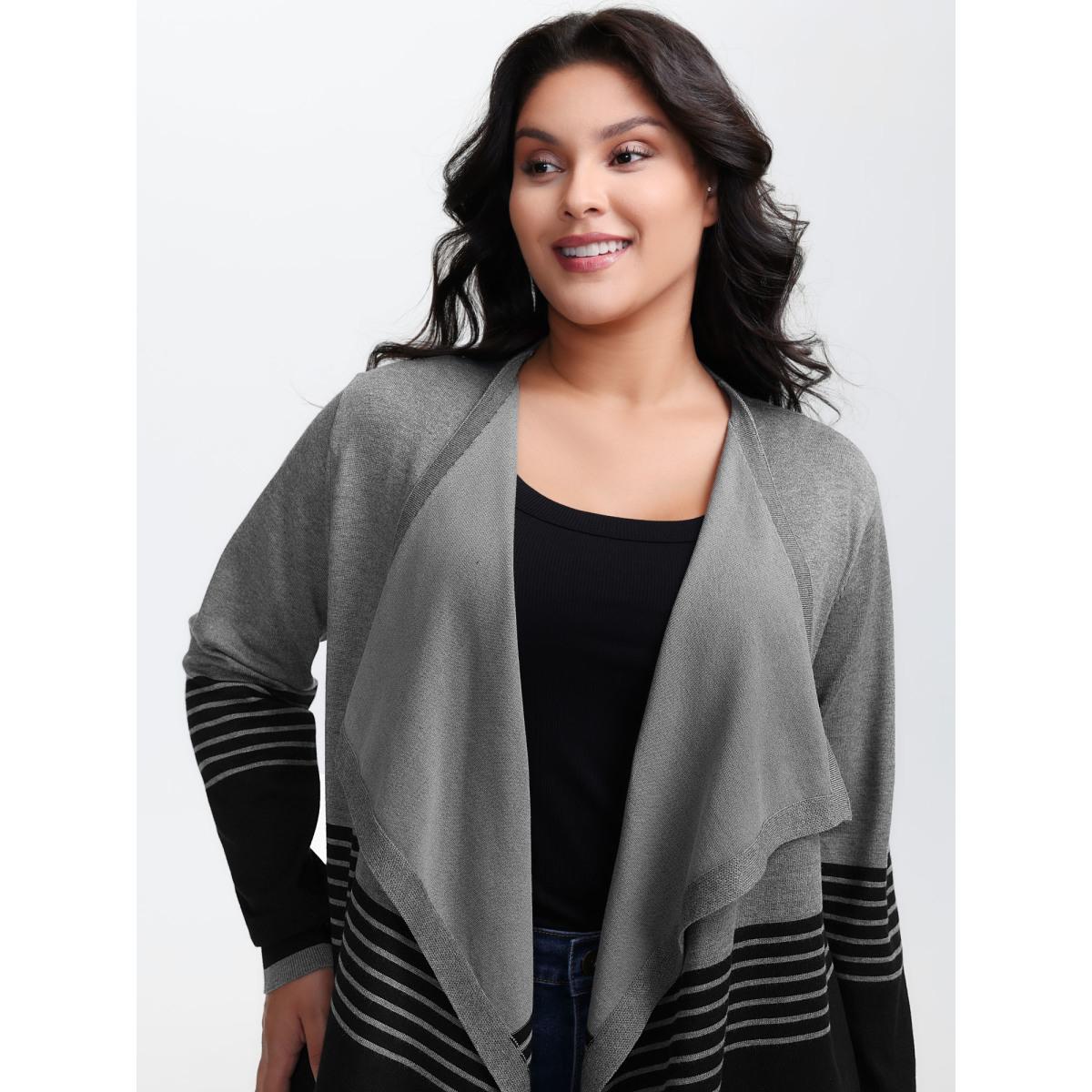Plus Size Supersoft Stripes Asymmetrical Collar Knit Cardigan DarkGray Women Leisure Loose Long Sleeve Casual Cardigans BloomChic 18-20/2X