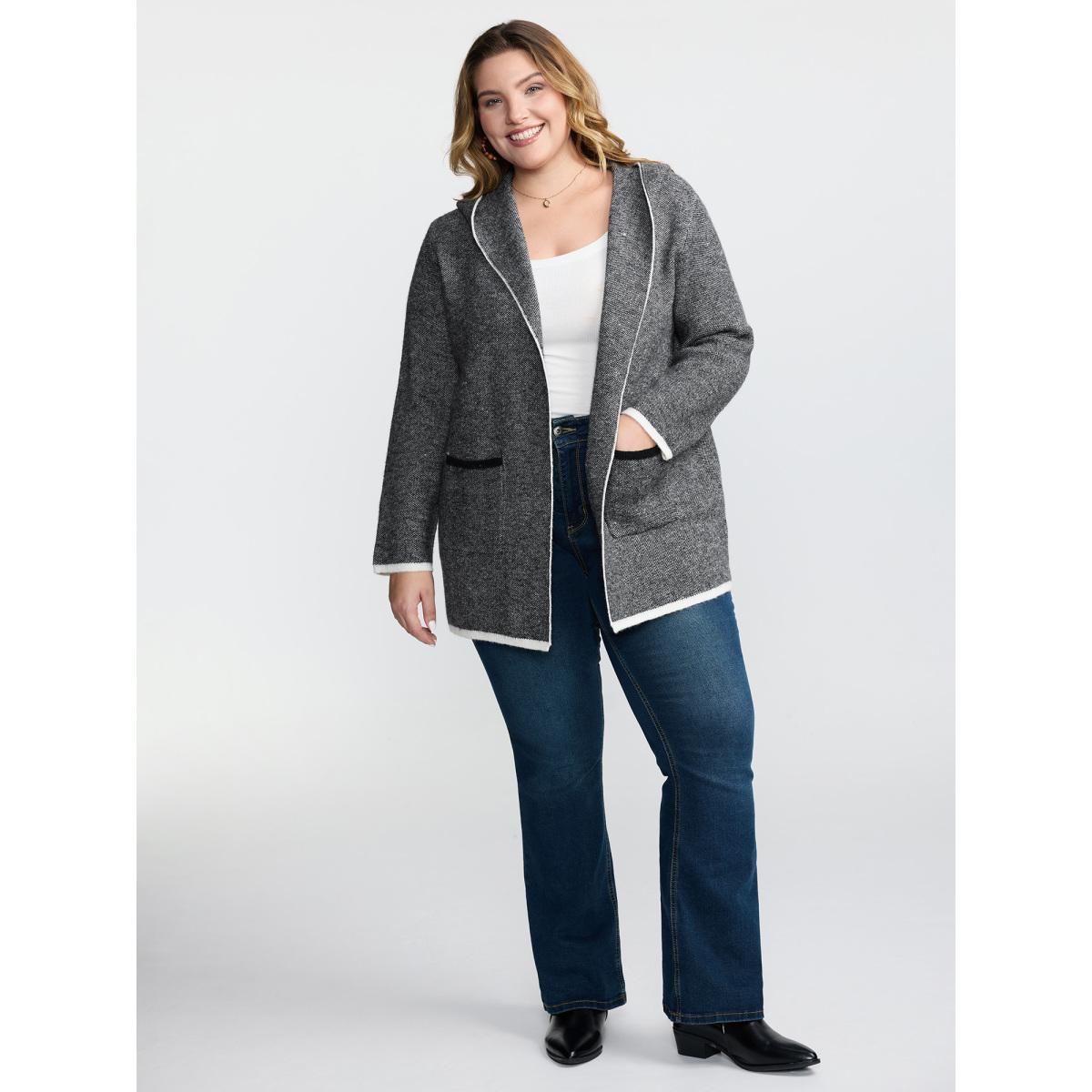 Plus Size Supersoft Essentials Striped Contrast Pocket Hooded Cardigan DimGray Women Casual Loose Long Sleeve Dailywear Cardigans BloomChic 22-24/3X