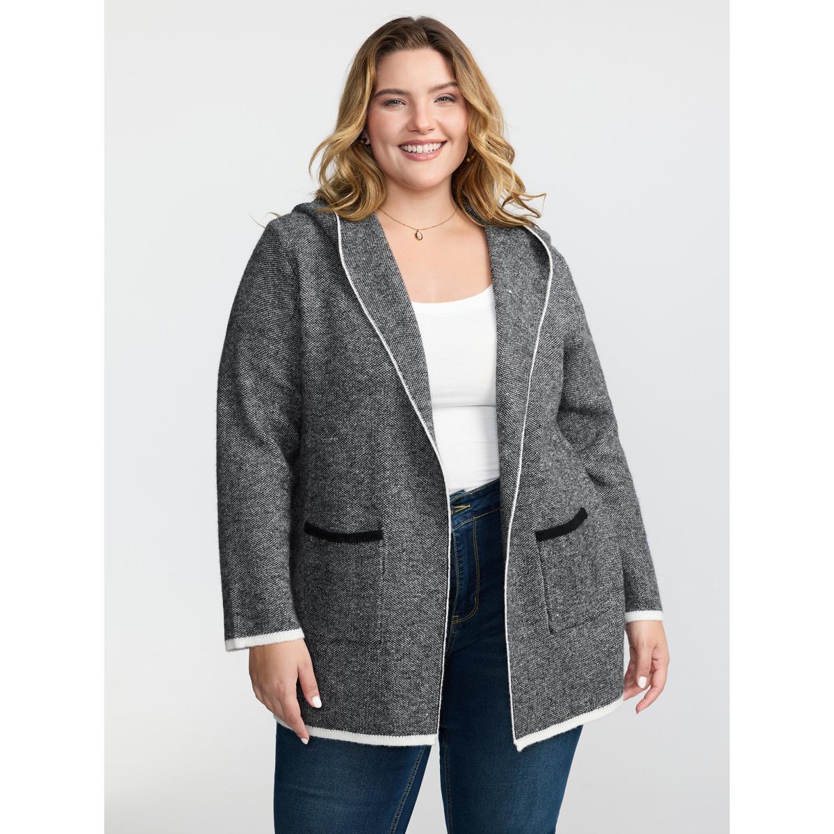 Plus Size Colorblock Contrast Patched Pocket Hooded Cardigan Mediumgray Women Casual Loose Long Sleeve Everyday Cardigans BloomChic 28/5X