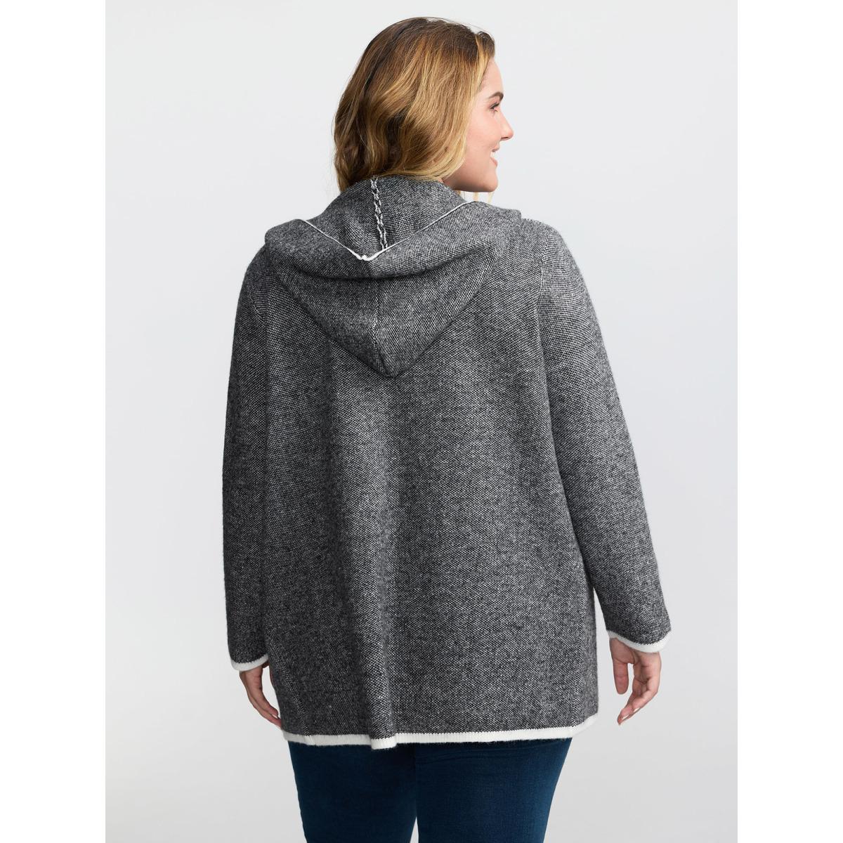 Plus Size Supersoft Super Stretchy Hooded Knit Cardigan DarkGray Women Loose Long Sleeve Casual Cardigans BloomChic 22-24/3X Product Image