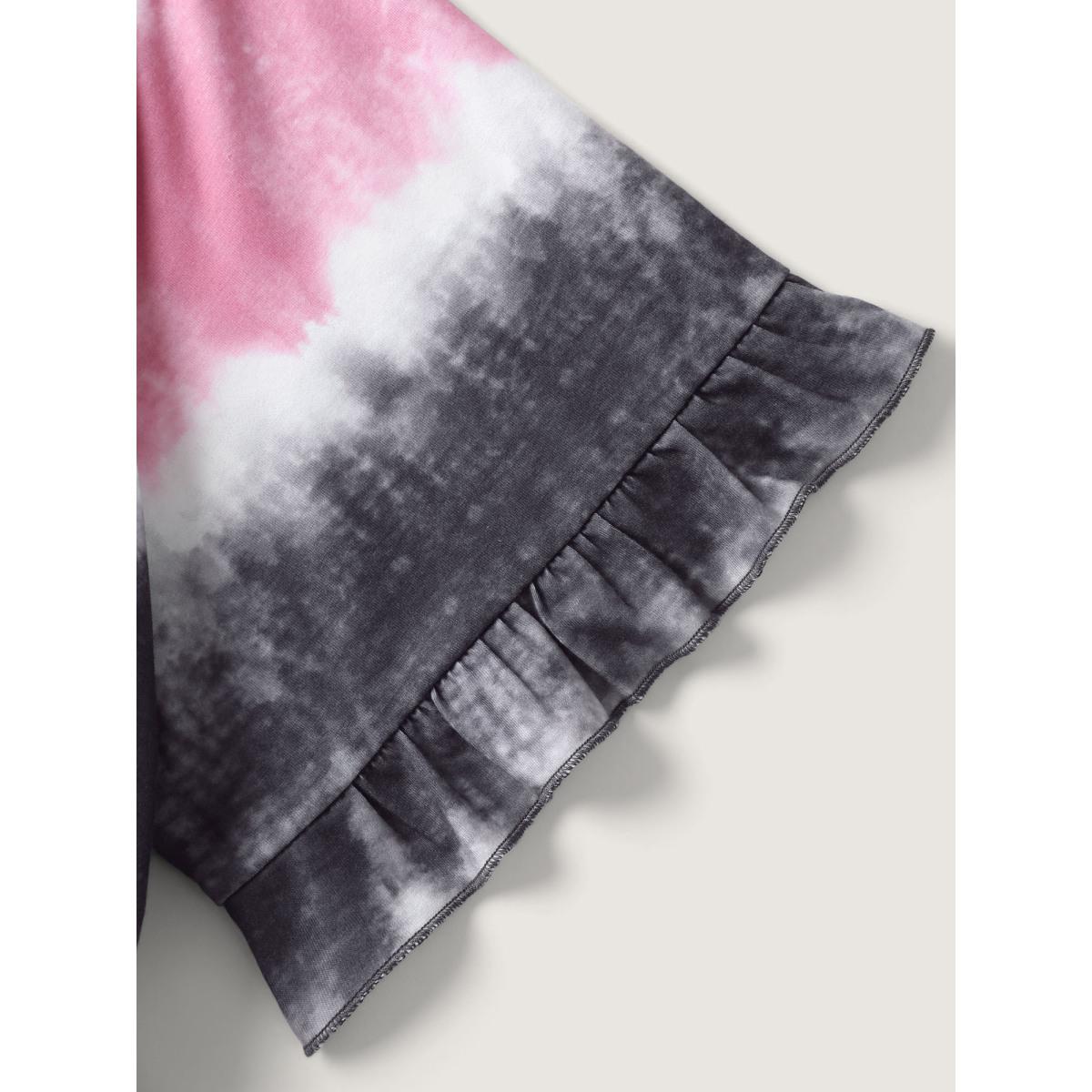 Plus Size Tie-Dye Curvy Hem V-Neck Midi Dress Multicolor Women Playful V-neck Short sleeve Curvy BloomChic 28/5X