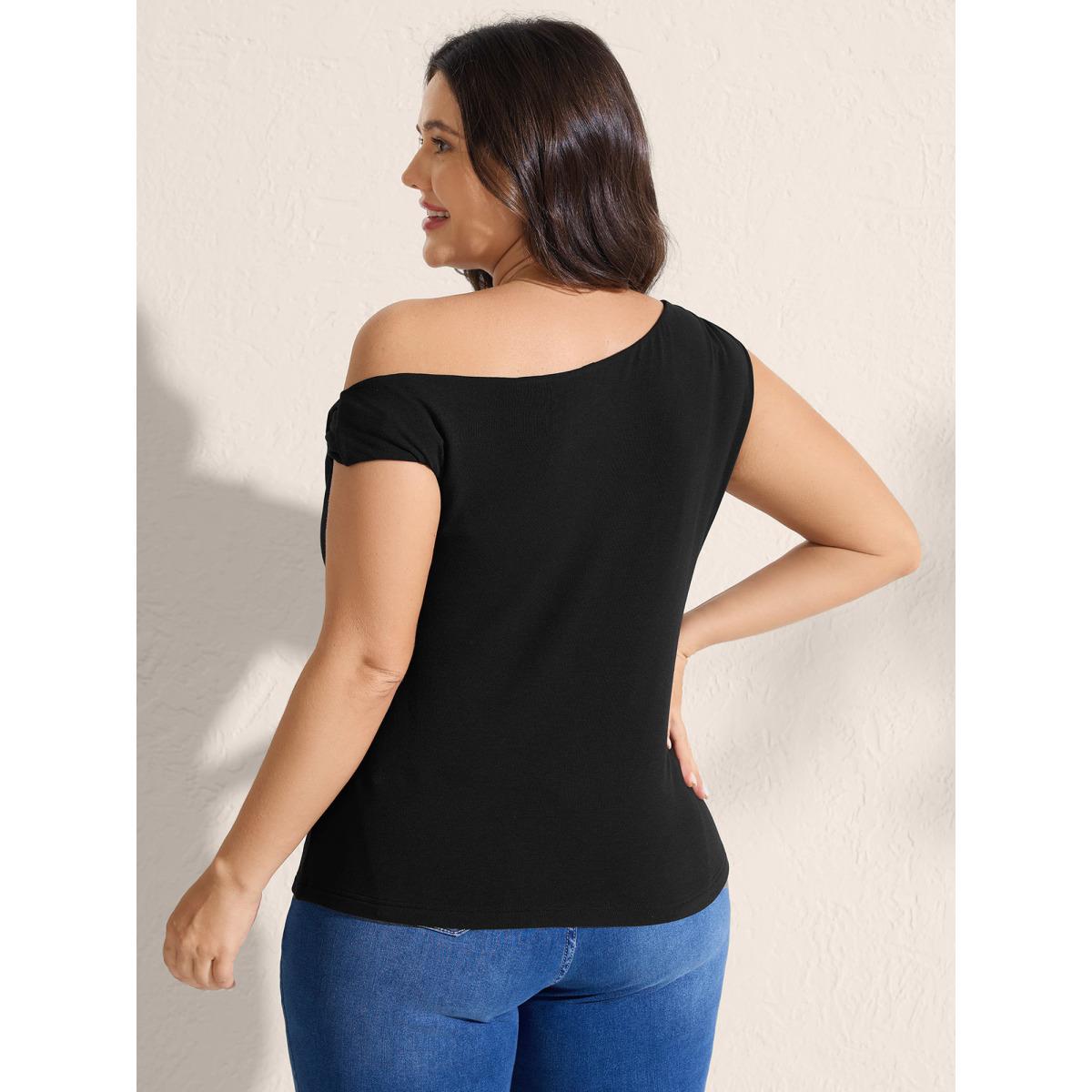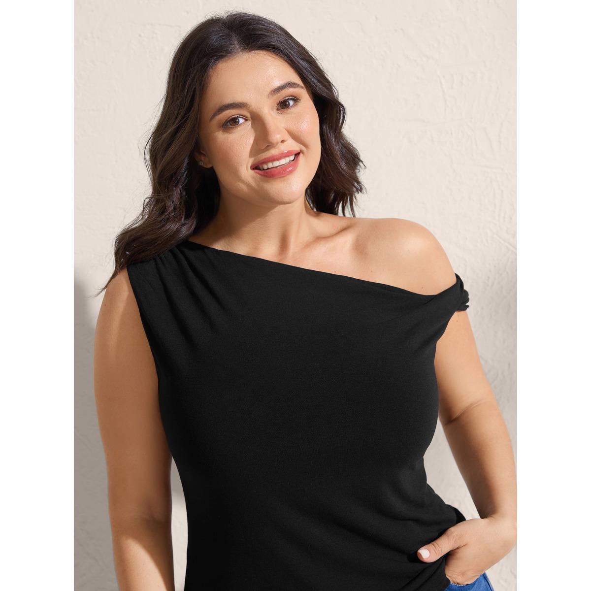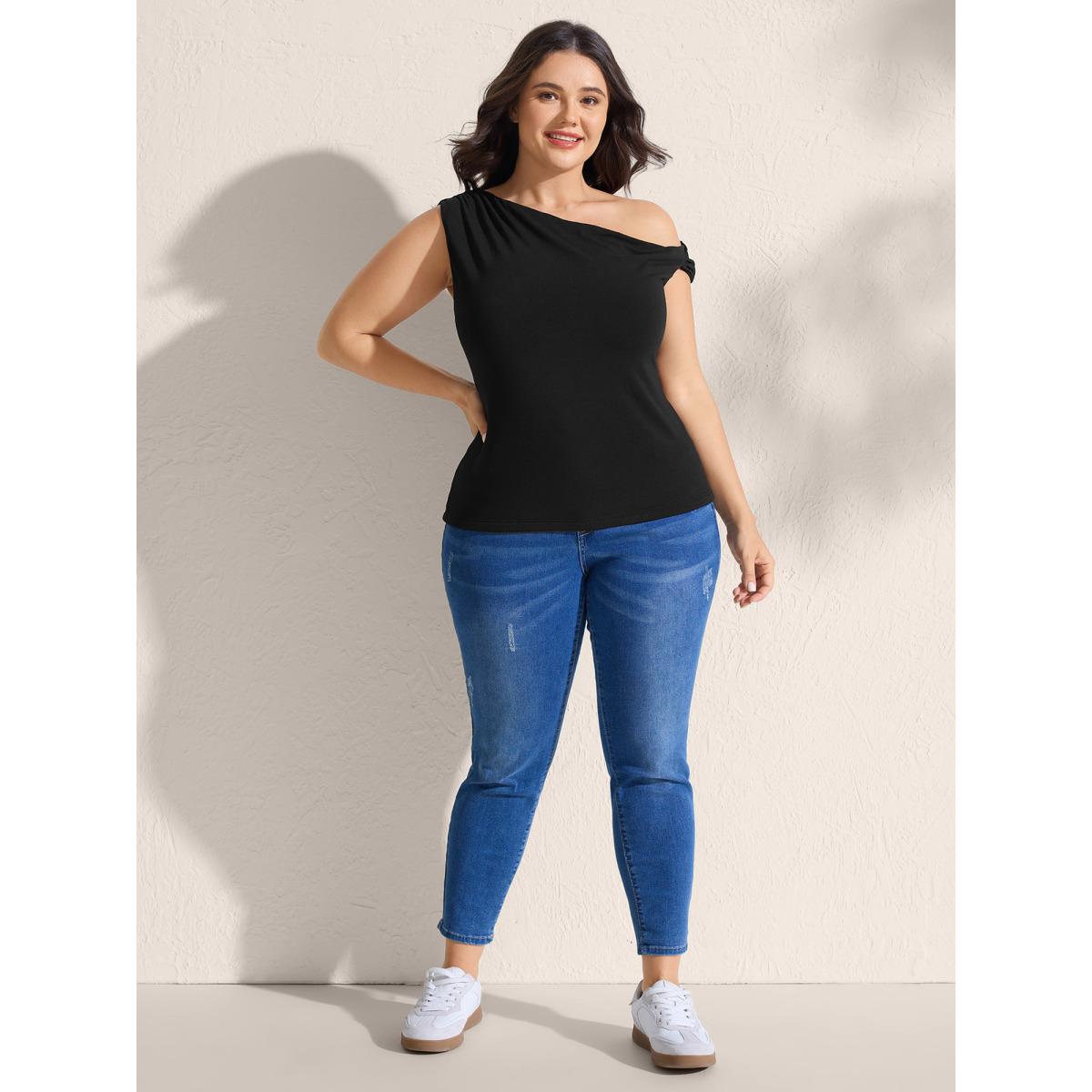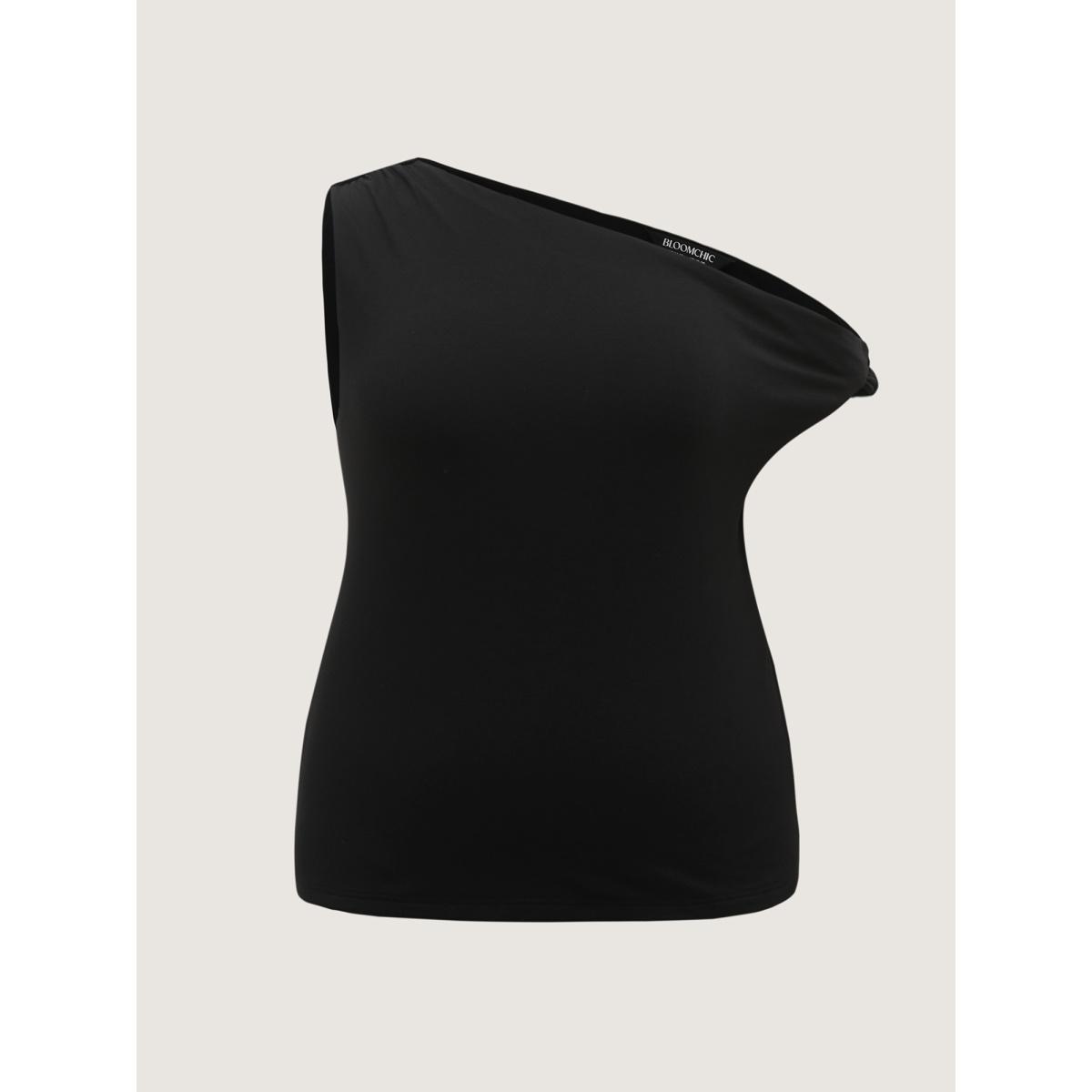 Plus Size Supersoft Twisted One-Shoulder Stretchy Tank Women Pureblack Leisure One-shoulder Asymmetrical Neck Casual Tank Tops Camis BloomChic 22-24/3X