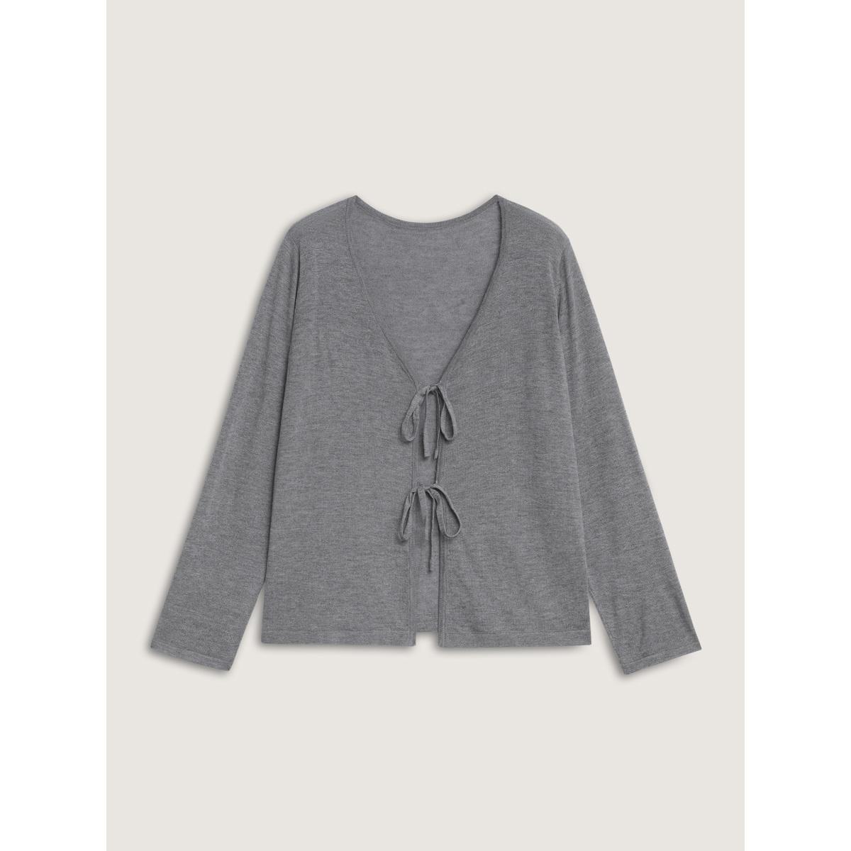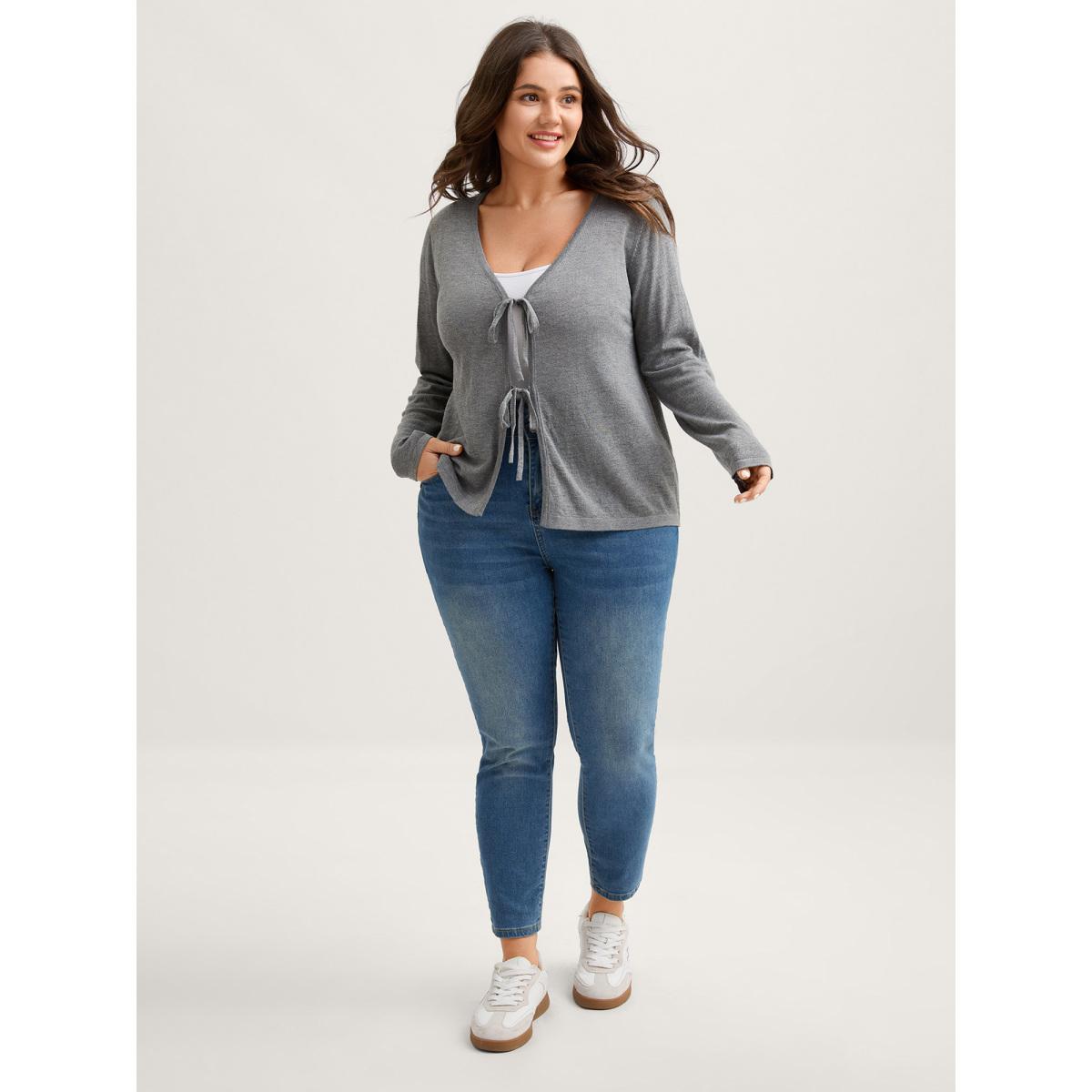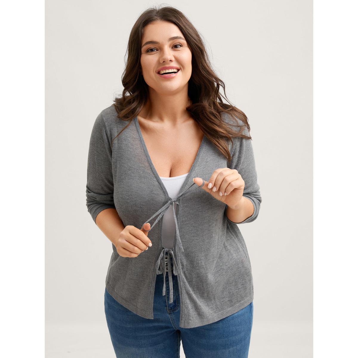 Plus Size Supersoft Wool Front Tie V-Neck Knit Cardigan Mediumgray Women Leisure Loose Long Sleeve Casual Cardigans BloomChic 14-16/1X